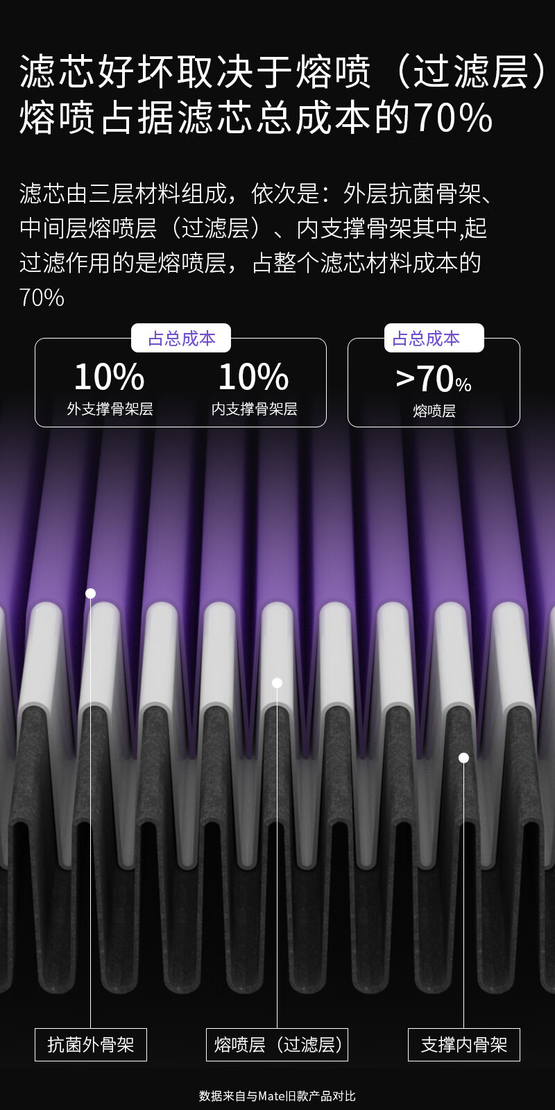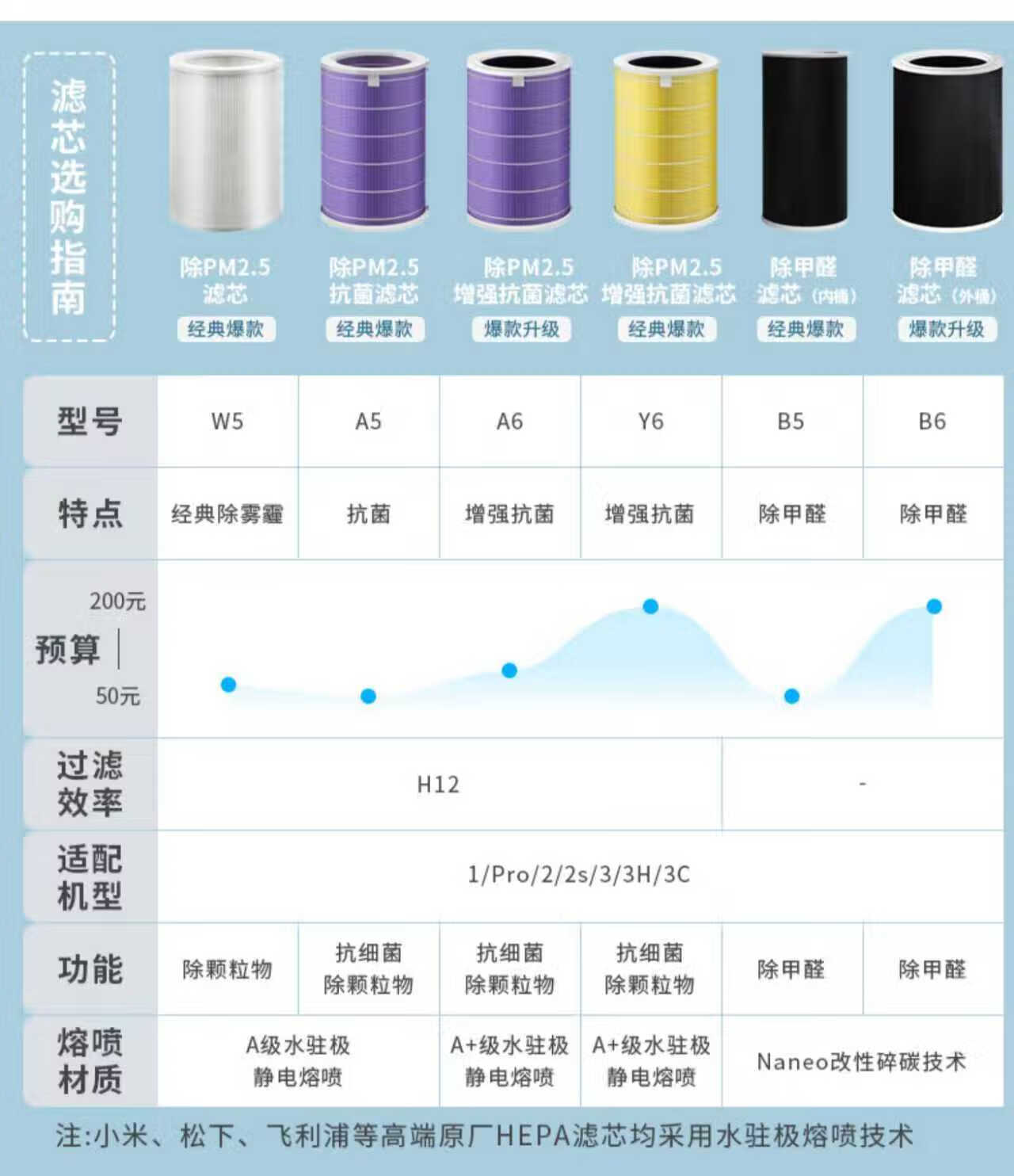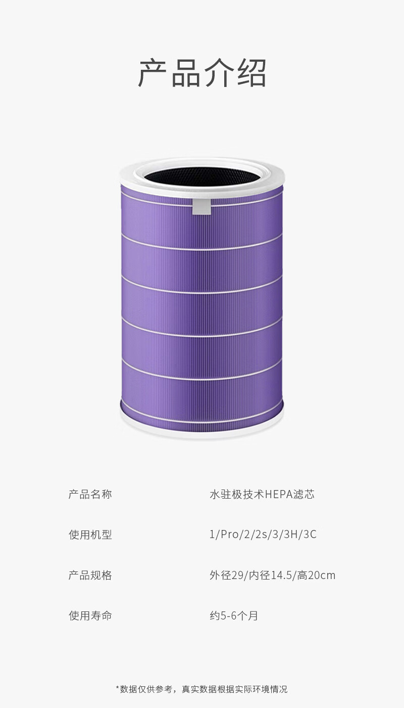 Mate 适配小米空气净化器滤芯2代ProHF1滤网除菌雾霾除颗粒除甲醛通用增强版 A5(水柱驻极静电熔喷材质)