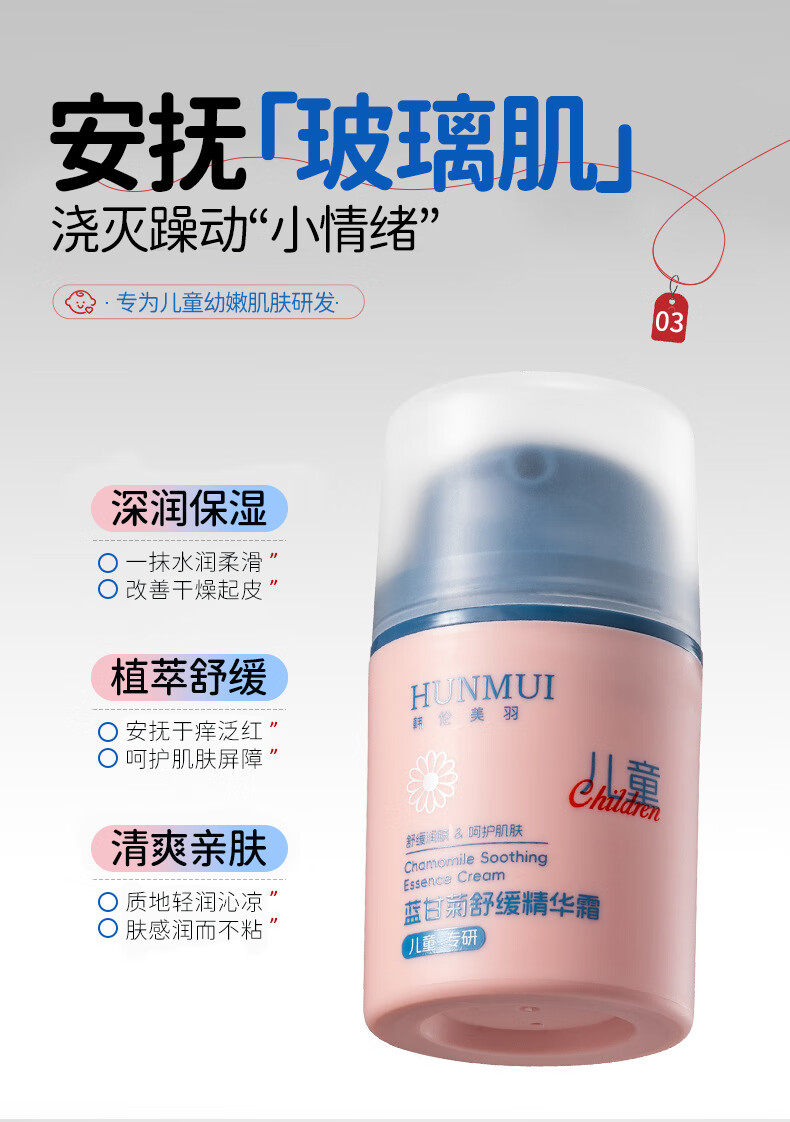 韩伦美羽 HUNMUI蓝甘菊儿童面霜滋润防干裂舒缓精华霜补水保湿霜宝宝婴儿润肤乳 蓝甘菊儿童面霜50g#2瓶
