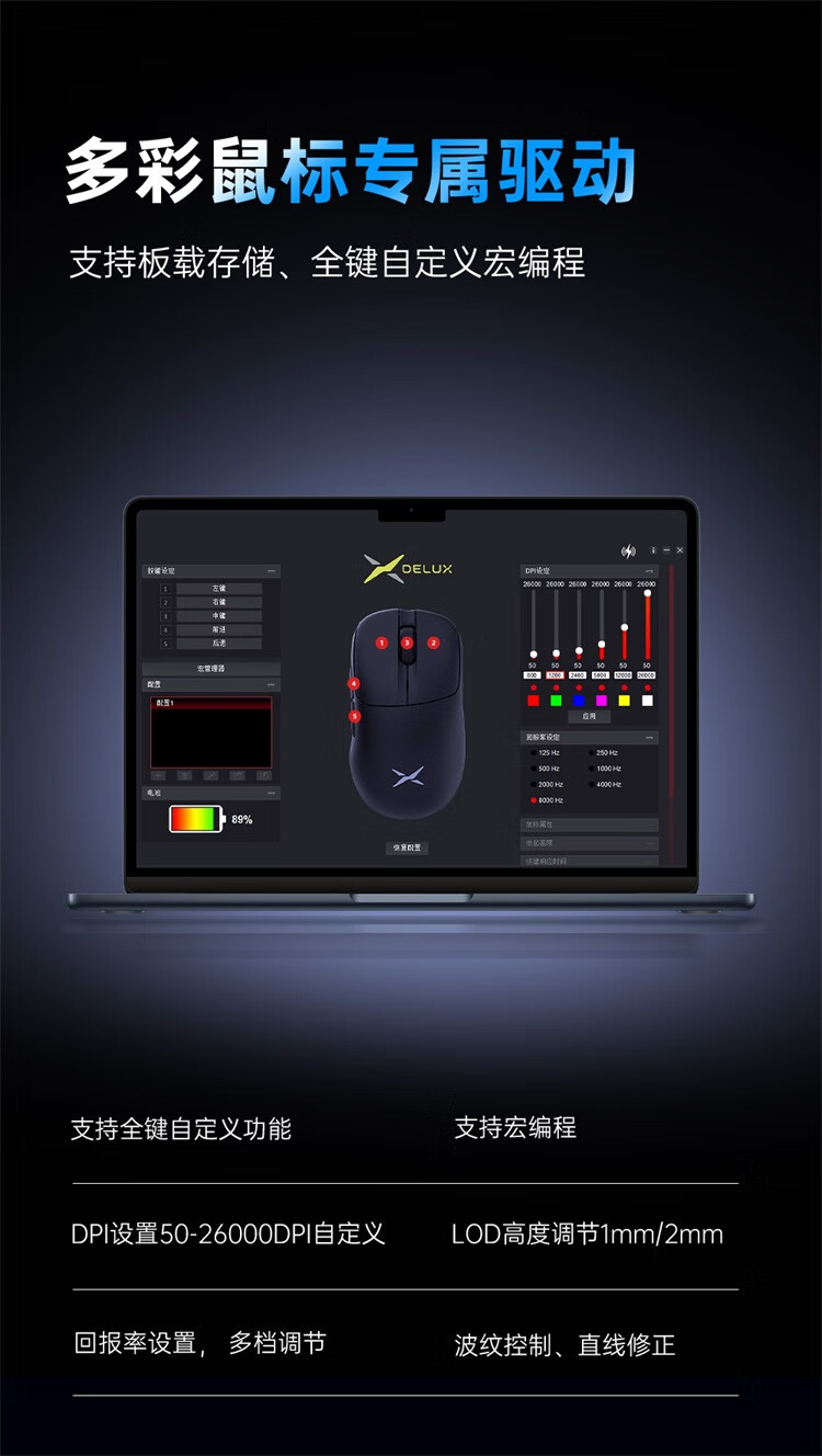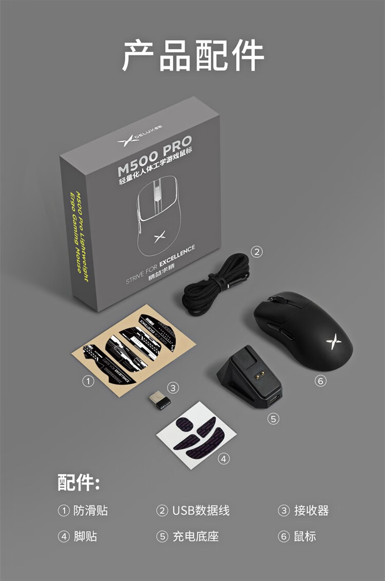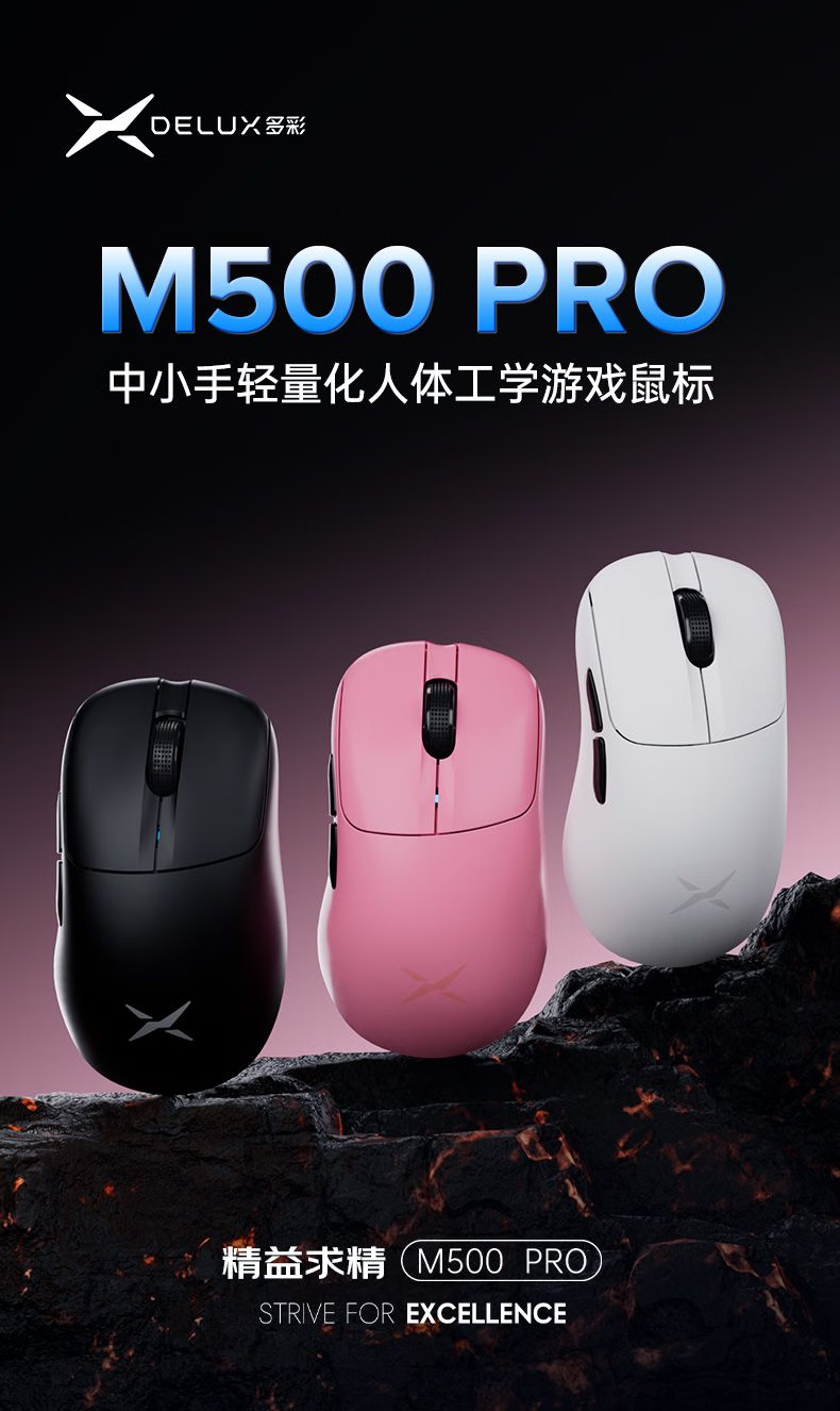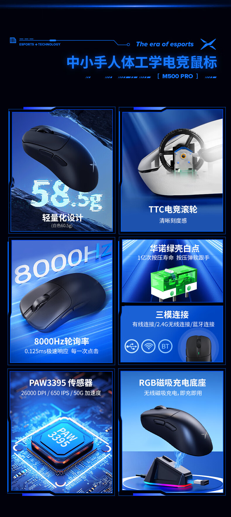 多彩(Delux)M500Pro游戏电竞鼠标无线有线蓝牙三模长续航8k回报率PAW3395轻量化设计人体工学支持磁吸充电底座 M500Pro【3395+8K+磁吸充电】黑色