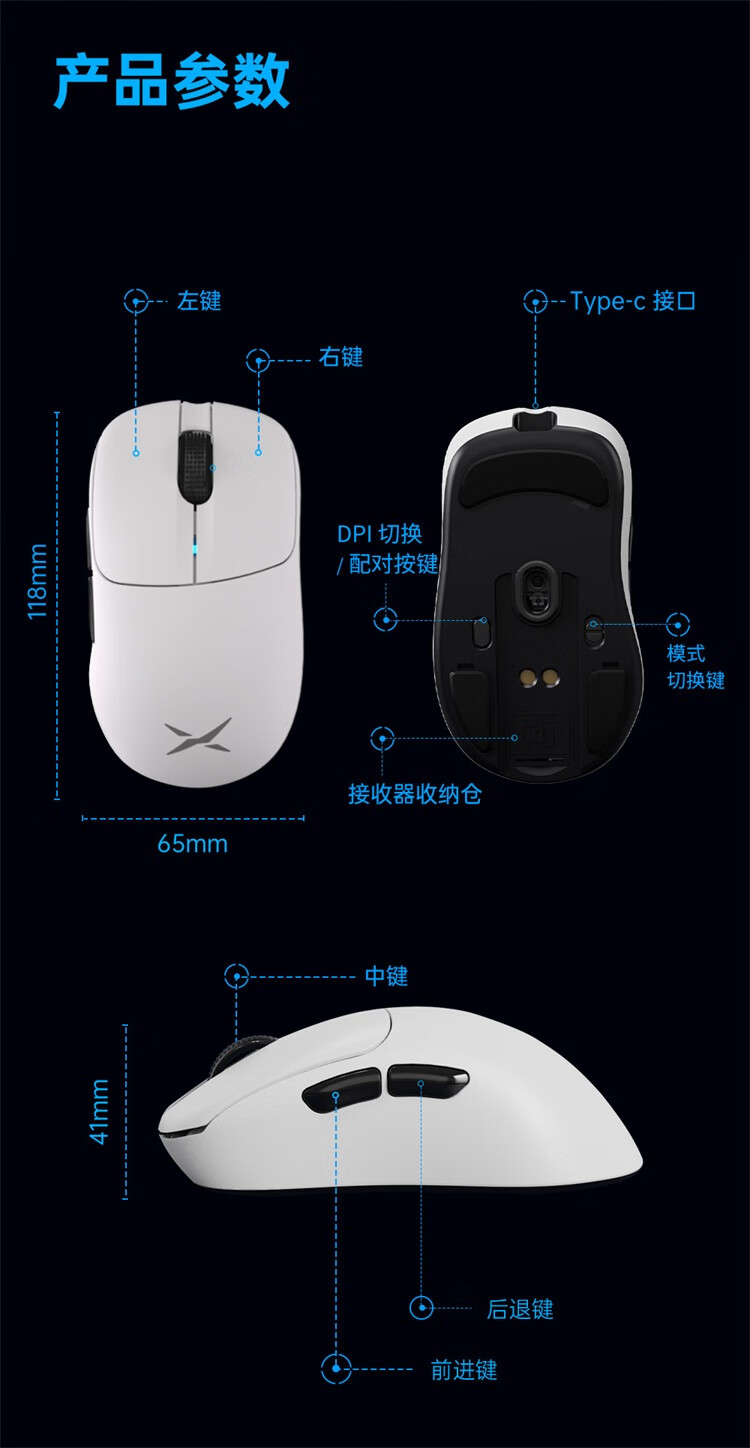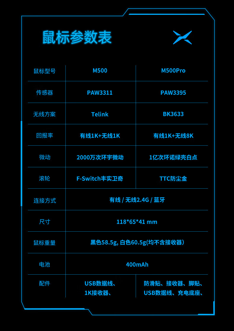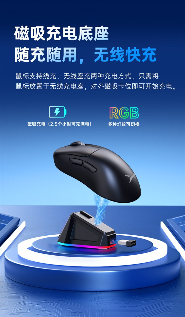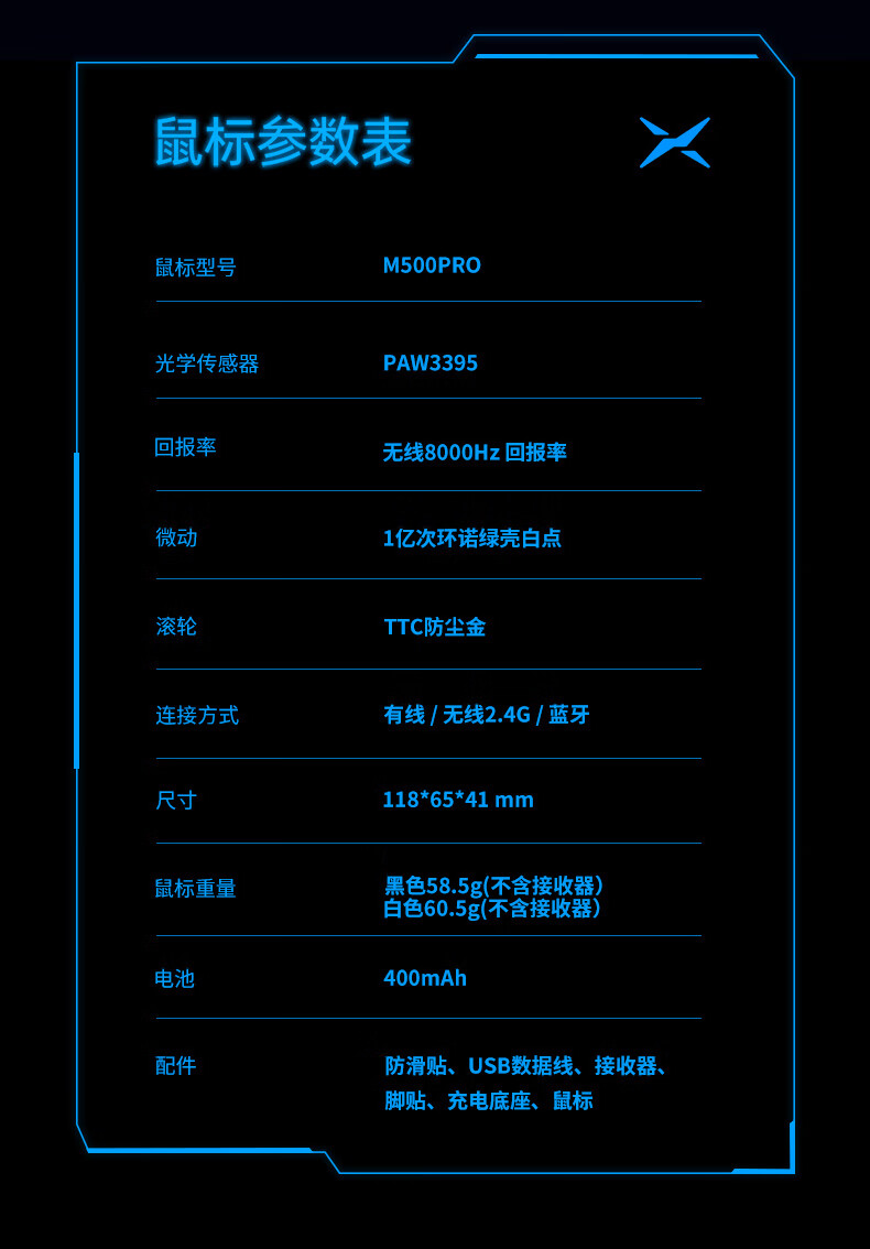 多彩(Delux)M500Pro游戏电竞鼠标无线有线蓝牙三模长续航8k回报率PAW3395轻量化设计人体工学支持磁吸充电底座 M500Pro【3395+8K+磁吸充电】黑色