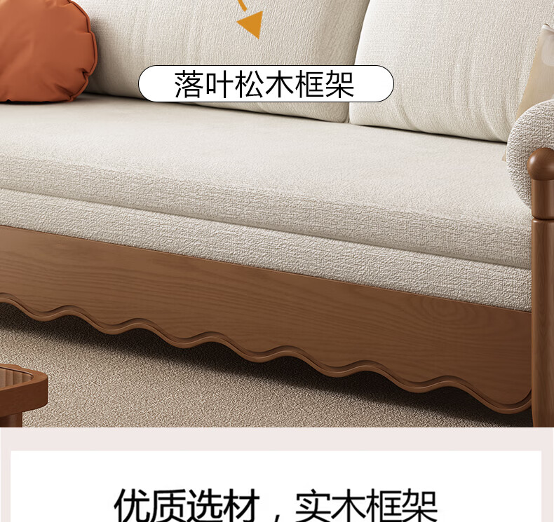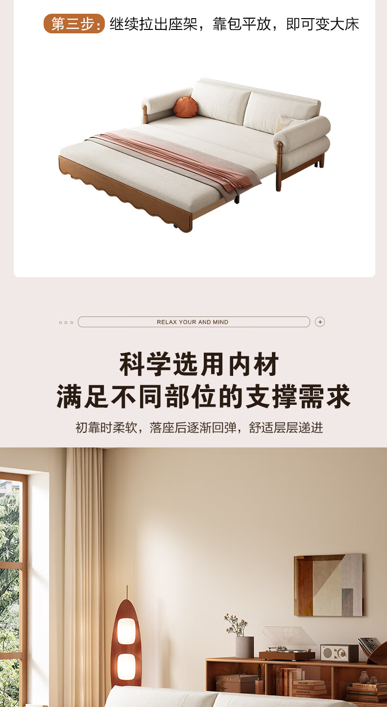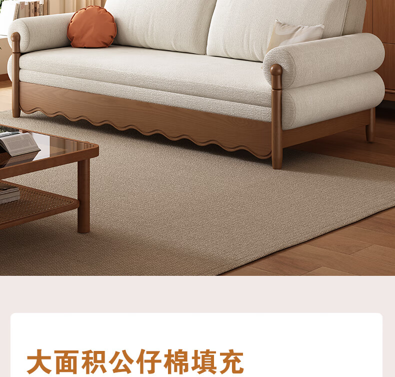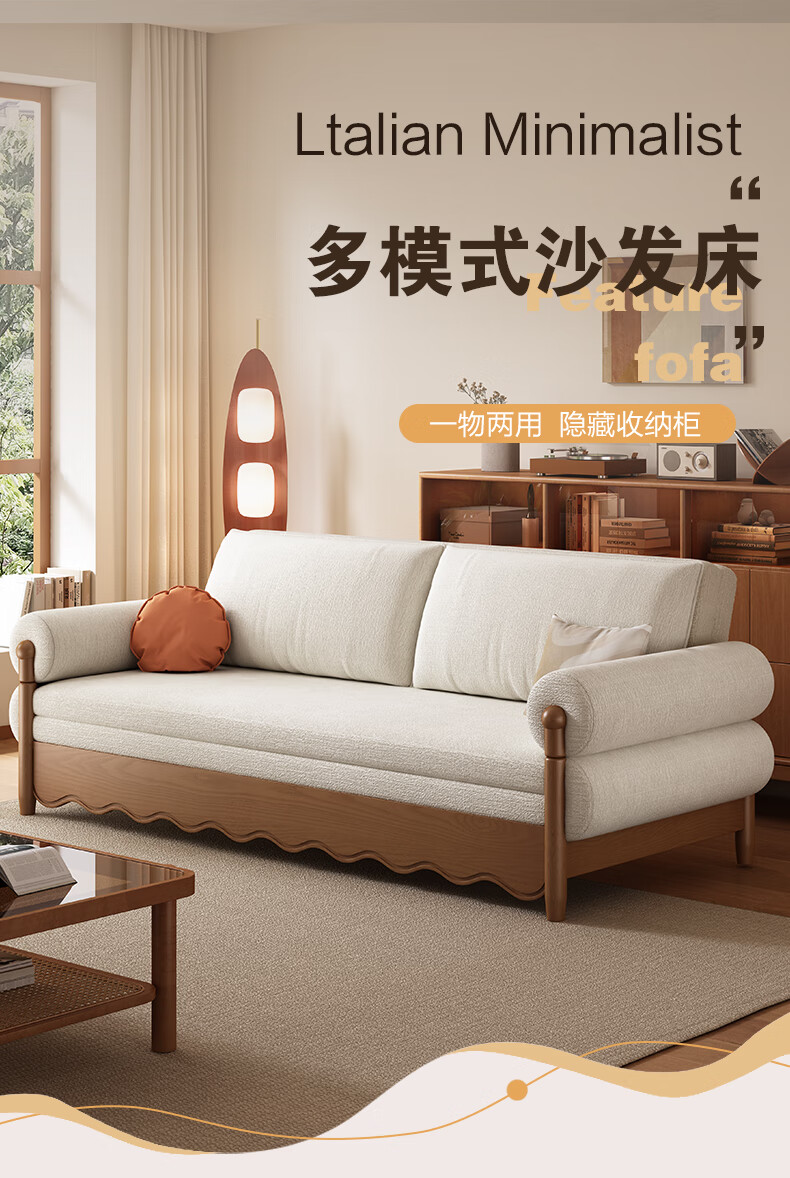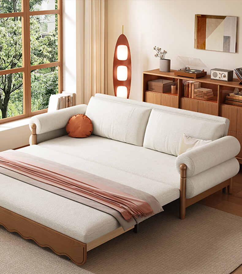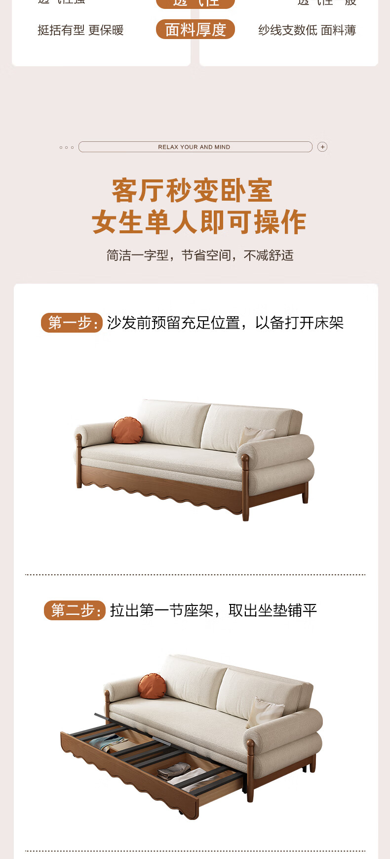 莘联多功能新款中古风实木沙发床两用小户型客厅高端可折叠雪尼尔沙发 外径:1.28m(无储物)白蜡木沙发床 环保椰棕款(加厚雪尼尔)