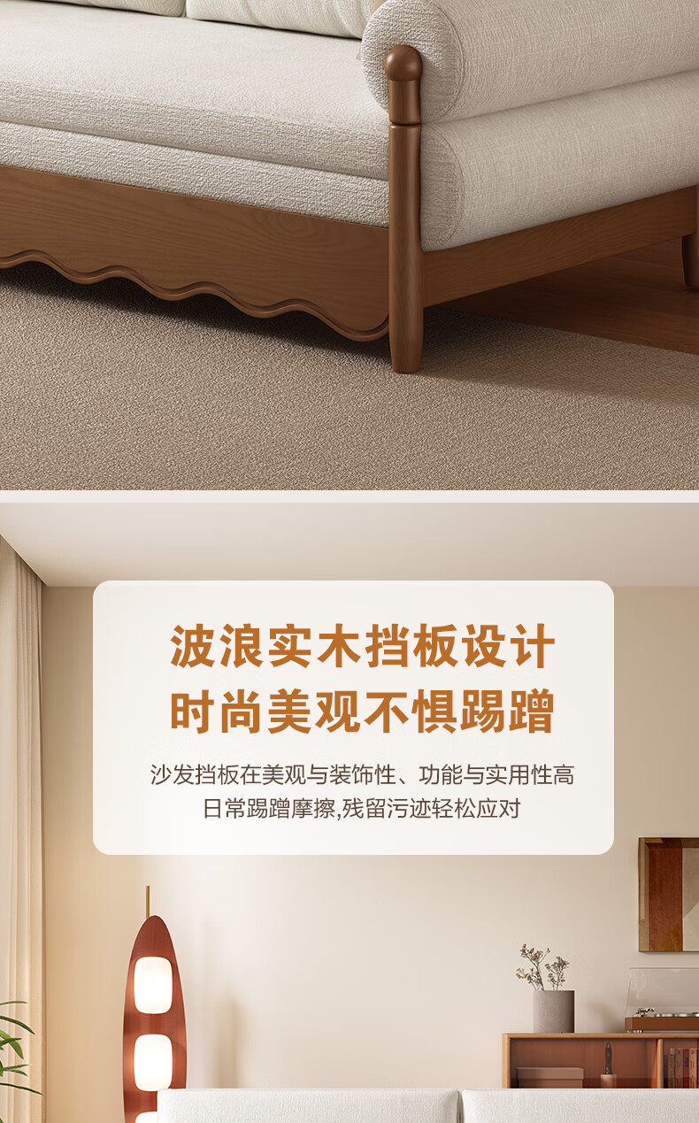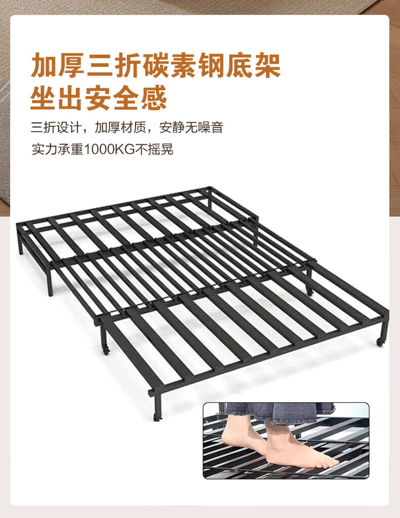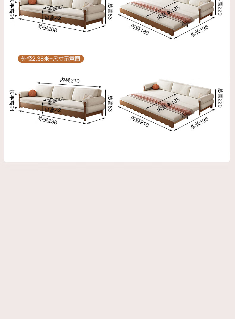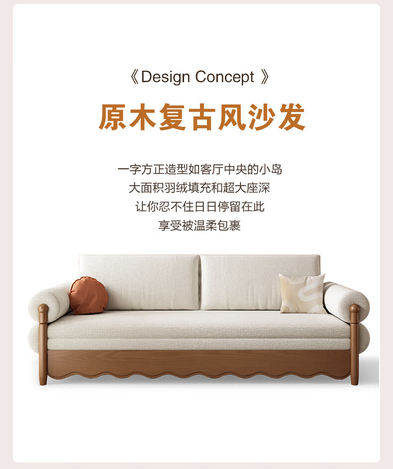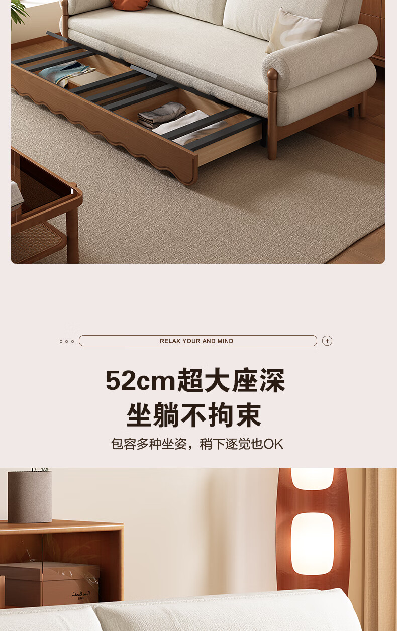 莘联多功能新款中古风实木沙发床两用小户型客厅高端可折叠雪尼尔沙发 外径:1.28m(无储物)白蜡木沙发床 环保椰棕款(加厚雪尼尔)