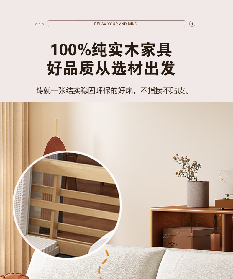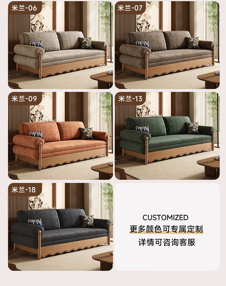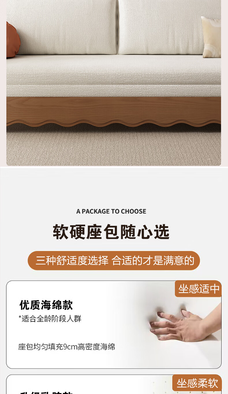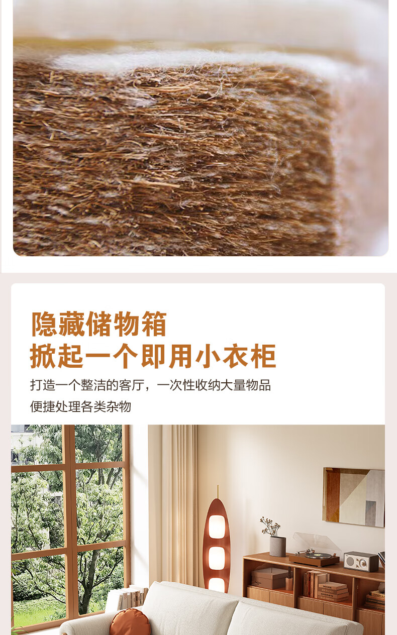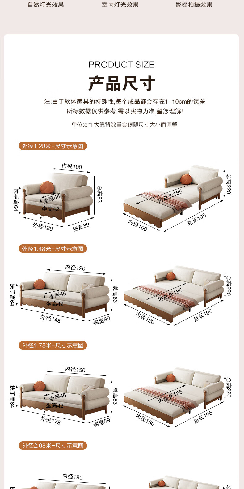 莘联多功能新款中古风实木沙发床两用小户型客厅高端可折叠雪尼尔沙发 外径:1.28m(无储物)白蜡木沙发床 环保椰棕款(加厚雪尼尔)