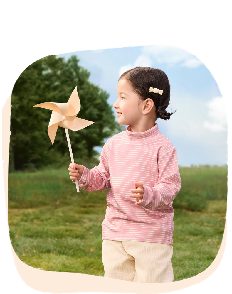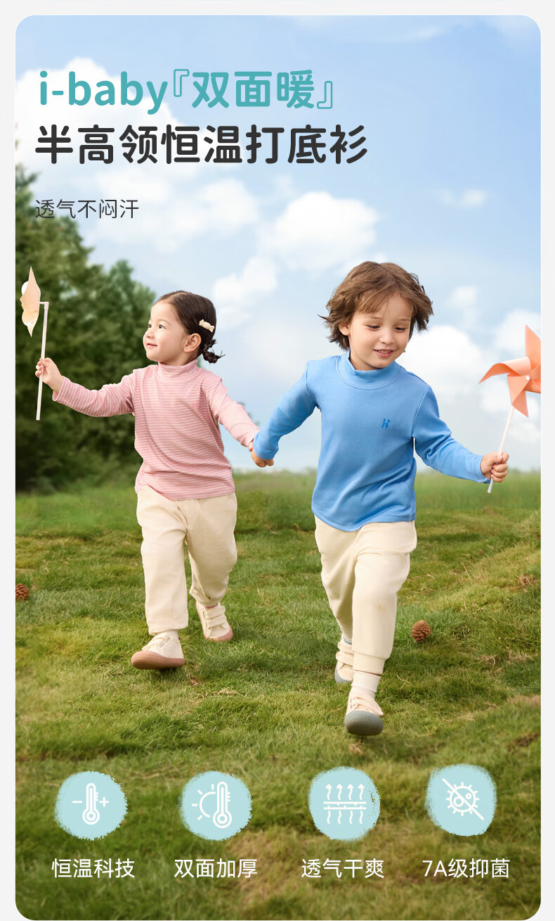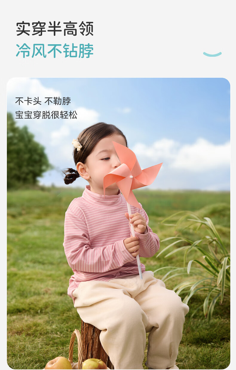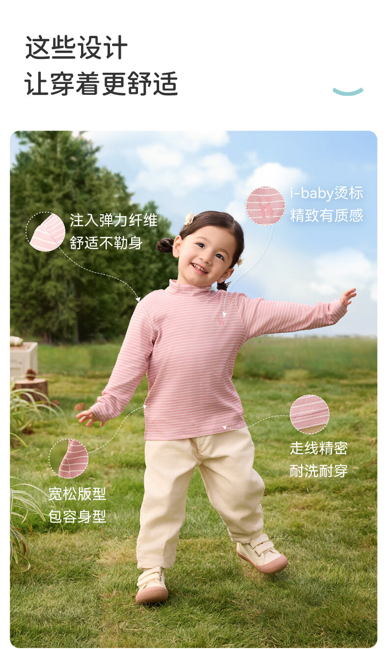 ibaby 儿童长袖t恤女童男童秋打底衣服 芋圆粉 90