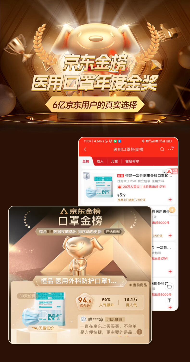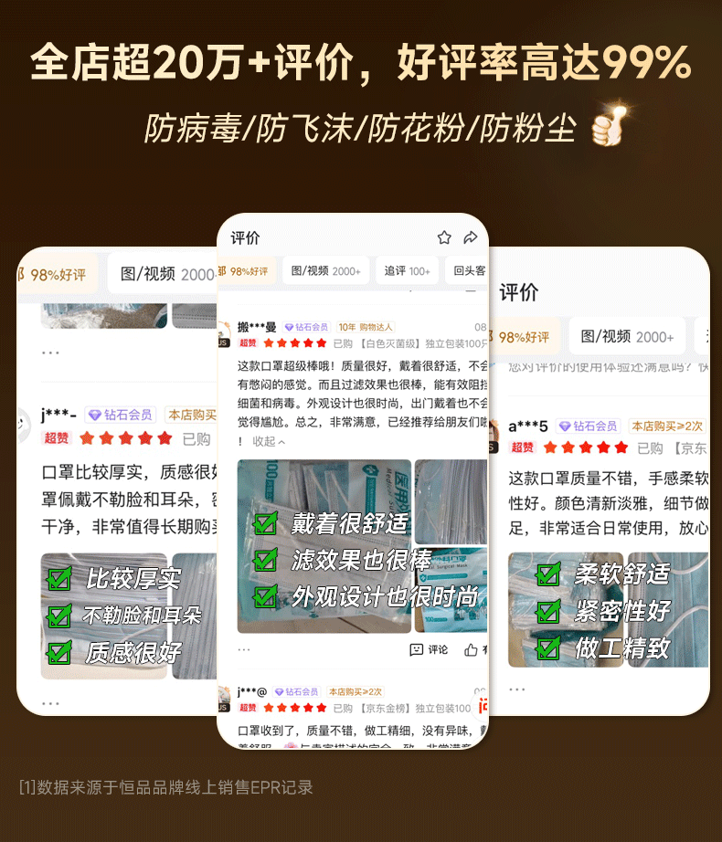 恒品一次性医用外科口罩100只(独立装)防尘亲肤透气防花粉鼻炎保暖
