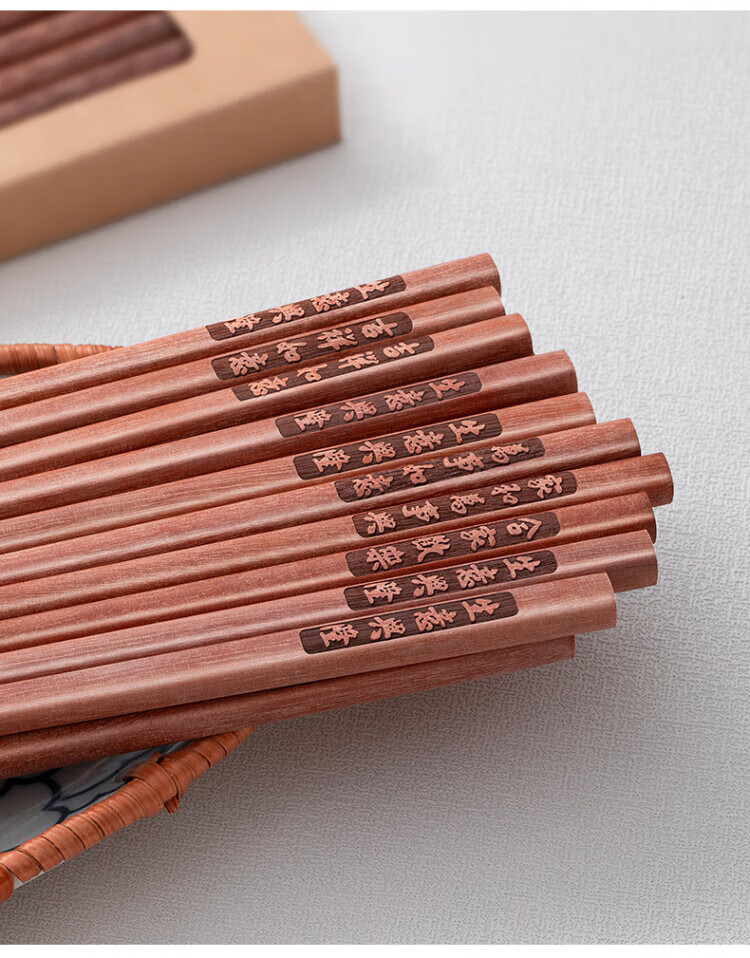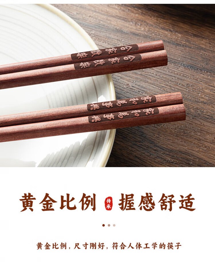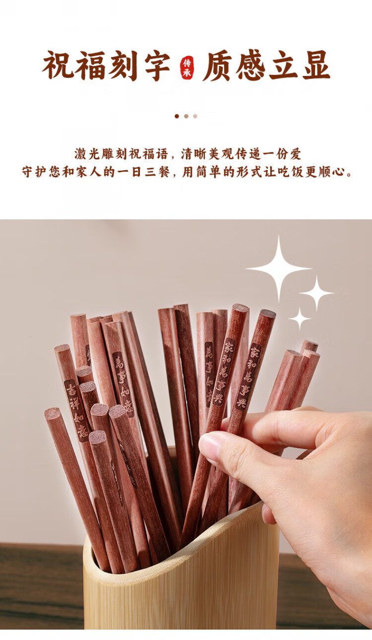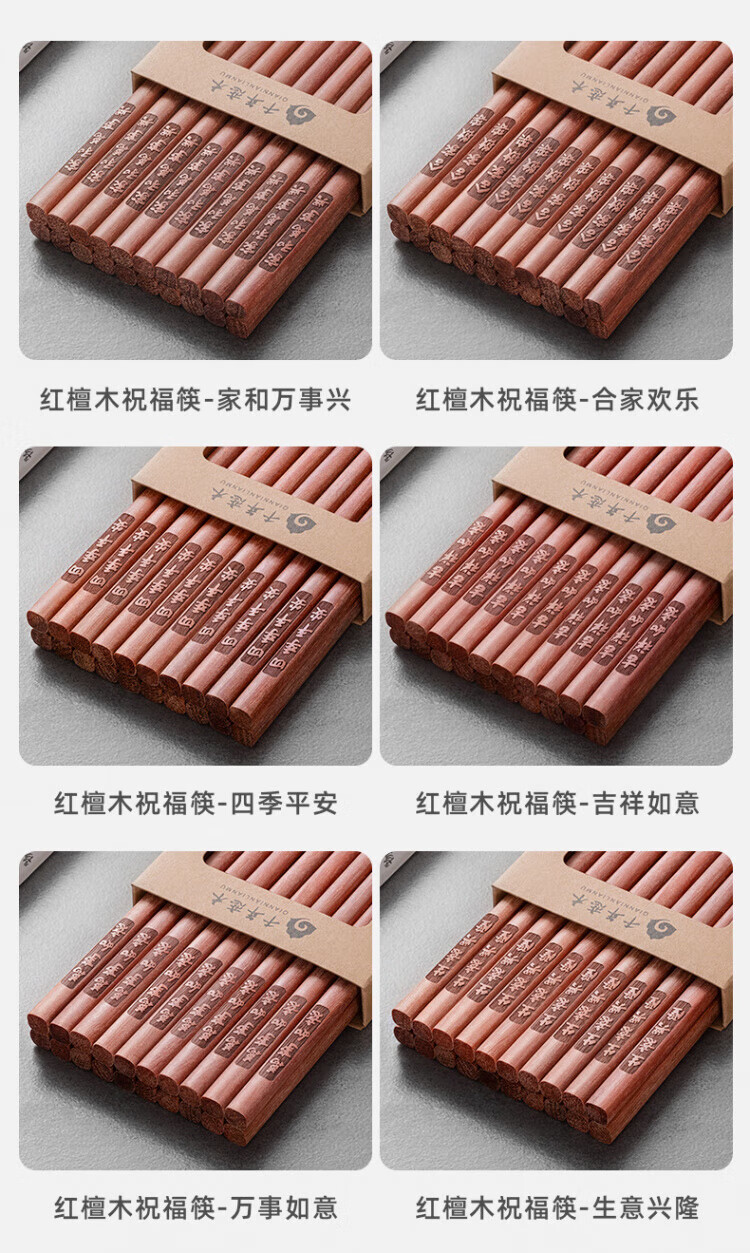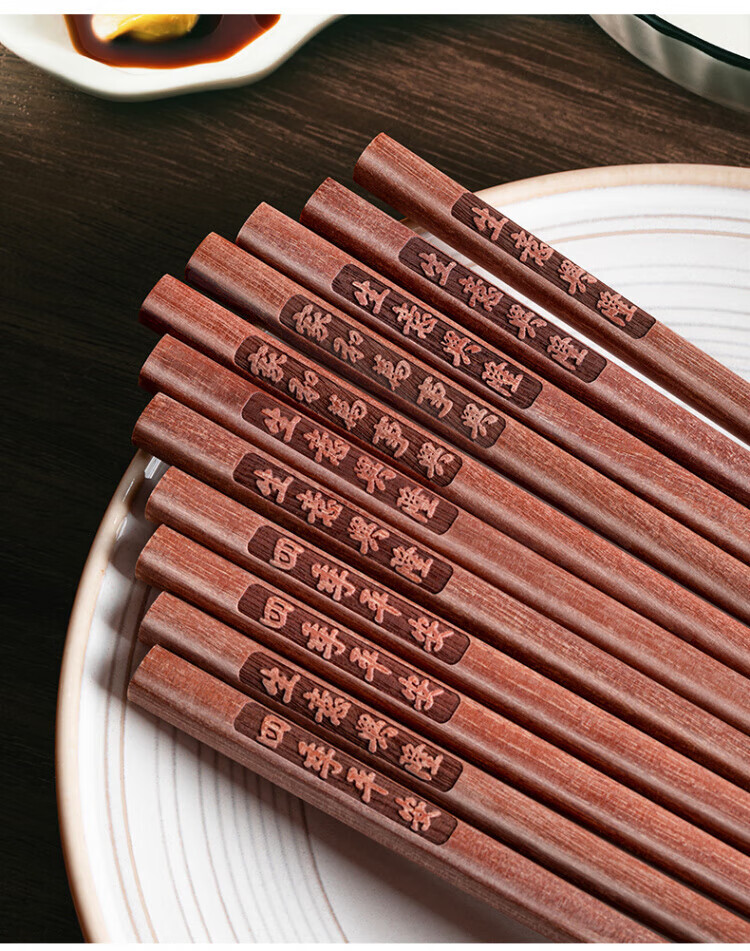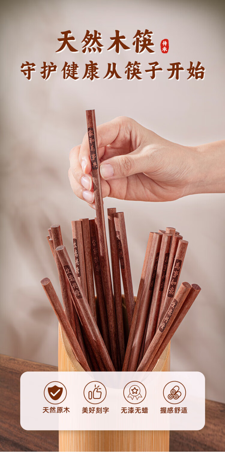 WCZ高端红檀木筷子家用高档新款抗菌防霉木质防滑无漆无蜡耐高温 红檀木【家和万事兴】 10双