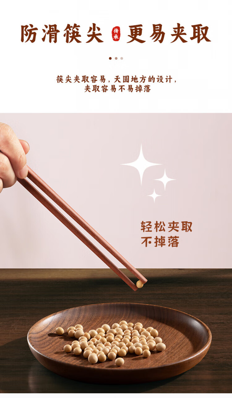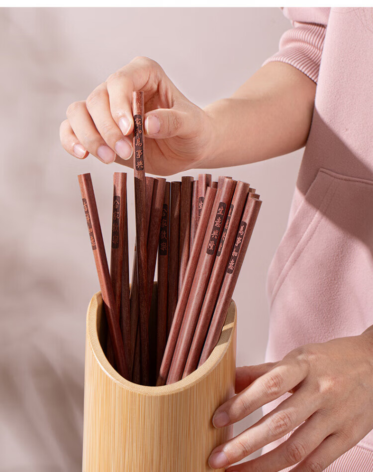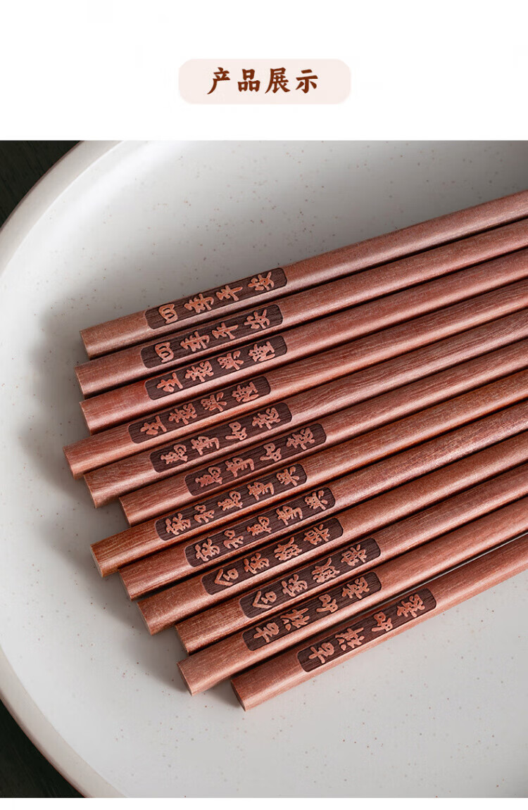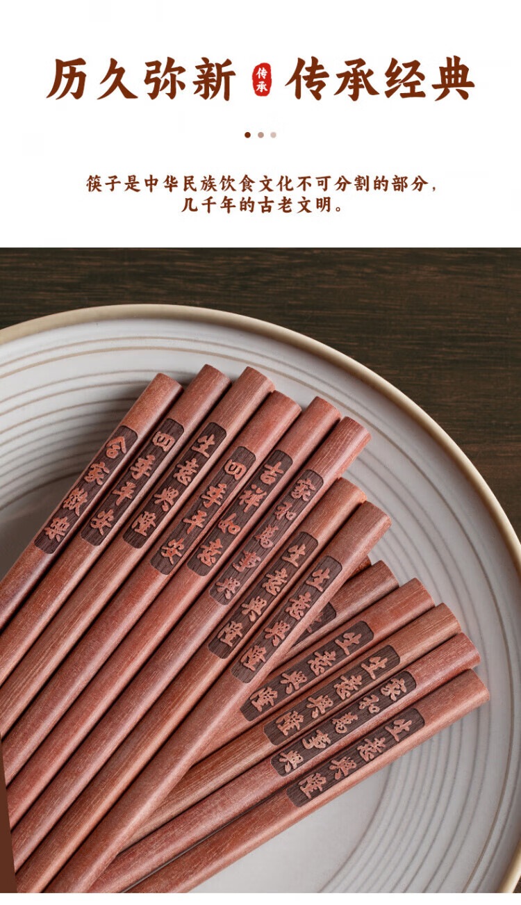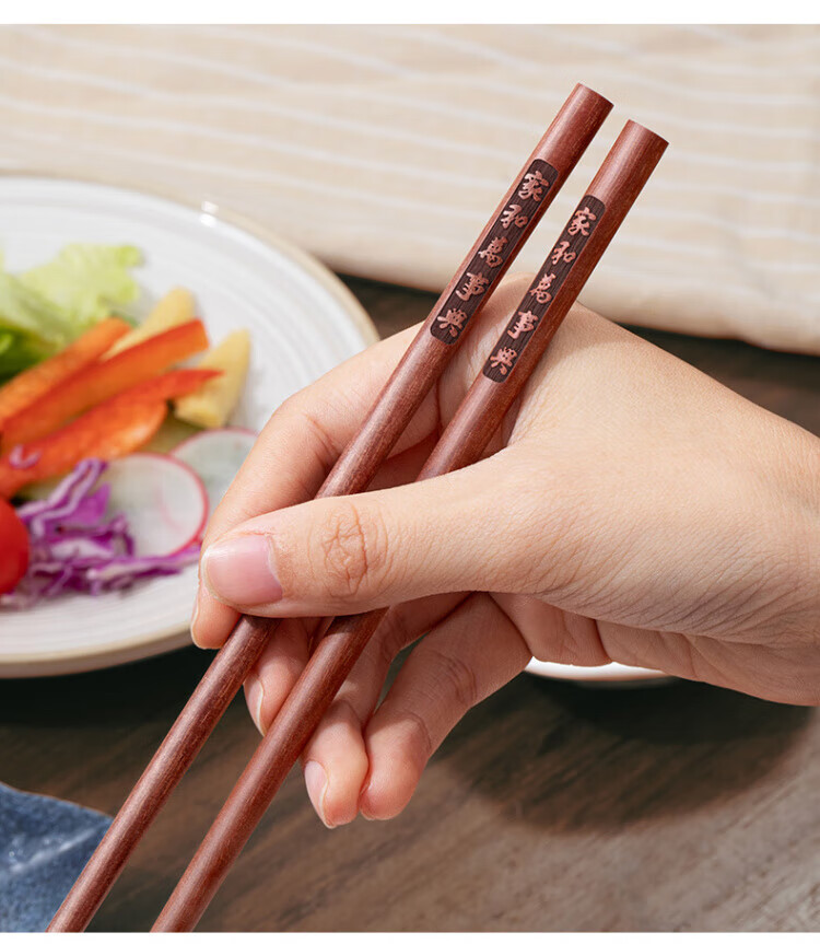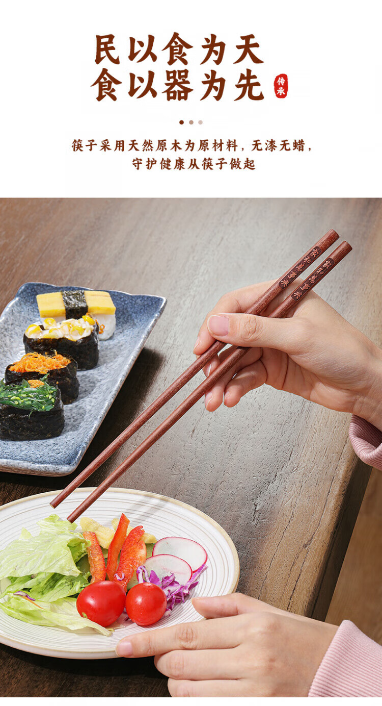 WCZ高端红檀木筷子家用高档新款抗菌防霉木质防滑无漆无蜡耐高温 红檀木【家和万事兴】 10双