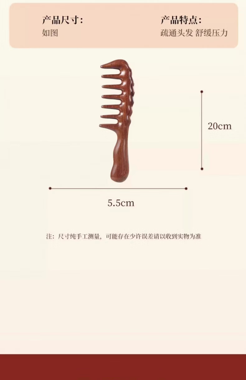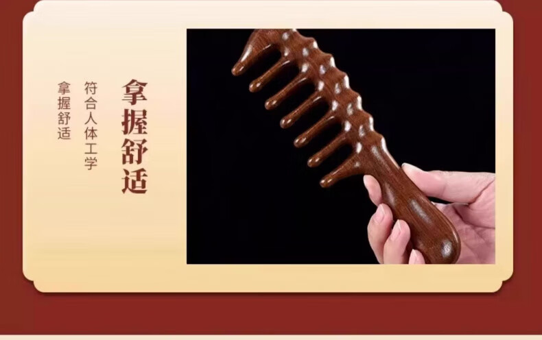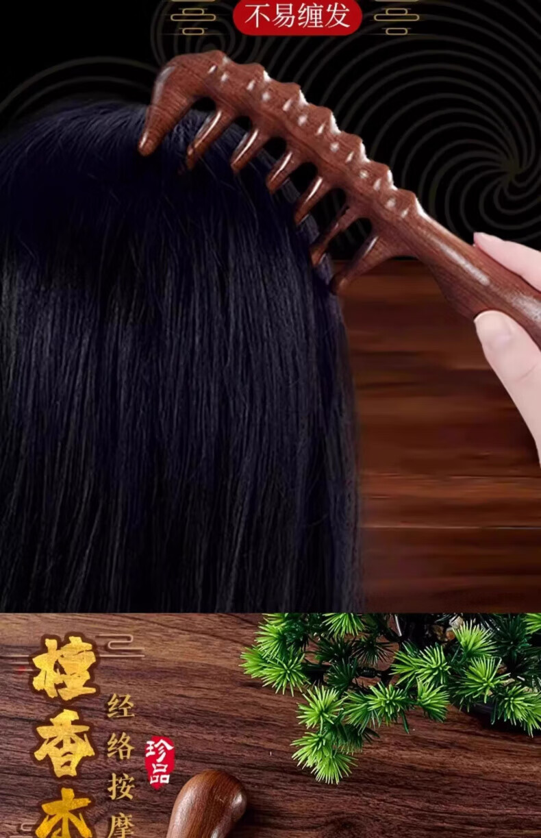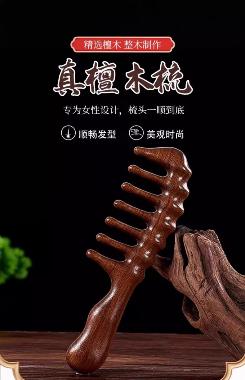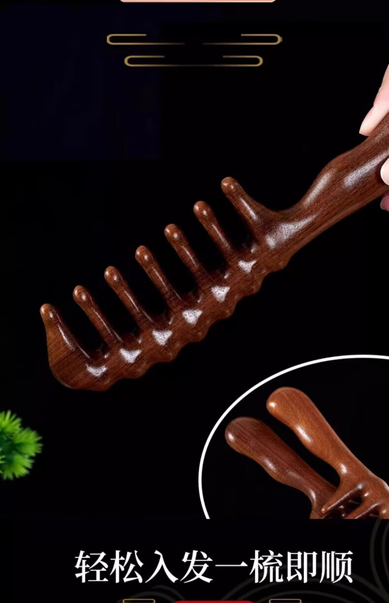 AILUKI日本檀木大齿卷发梳子宽卷发梳女士烫发后专用防静电按摩头皮经络 金丝檀木水滴头大齿梳
