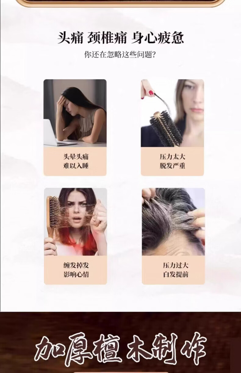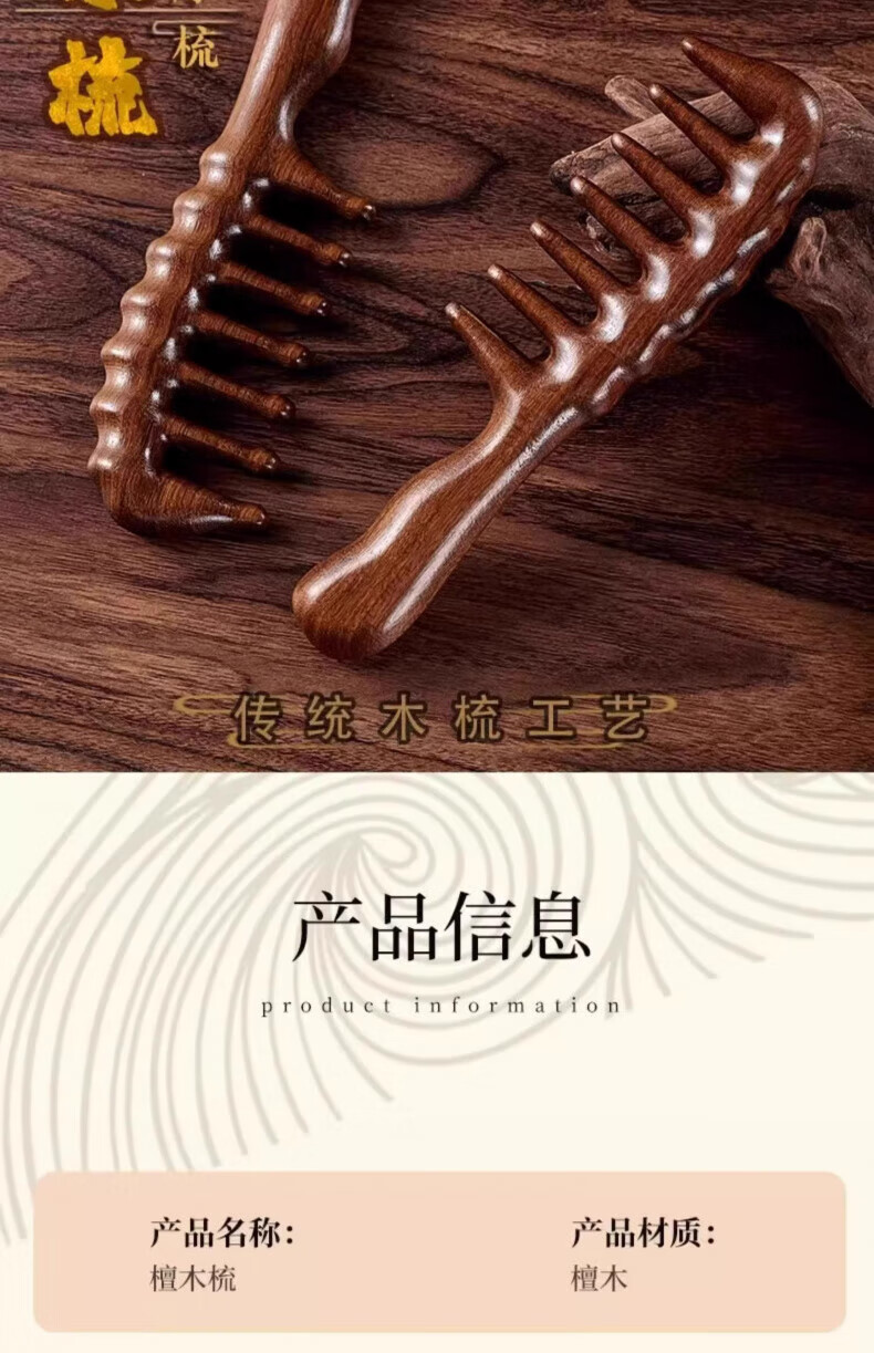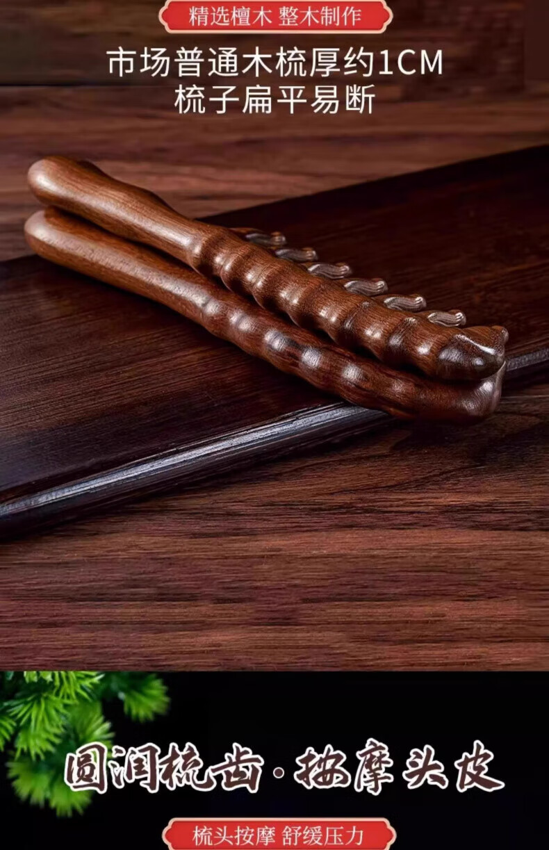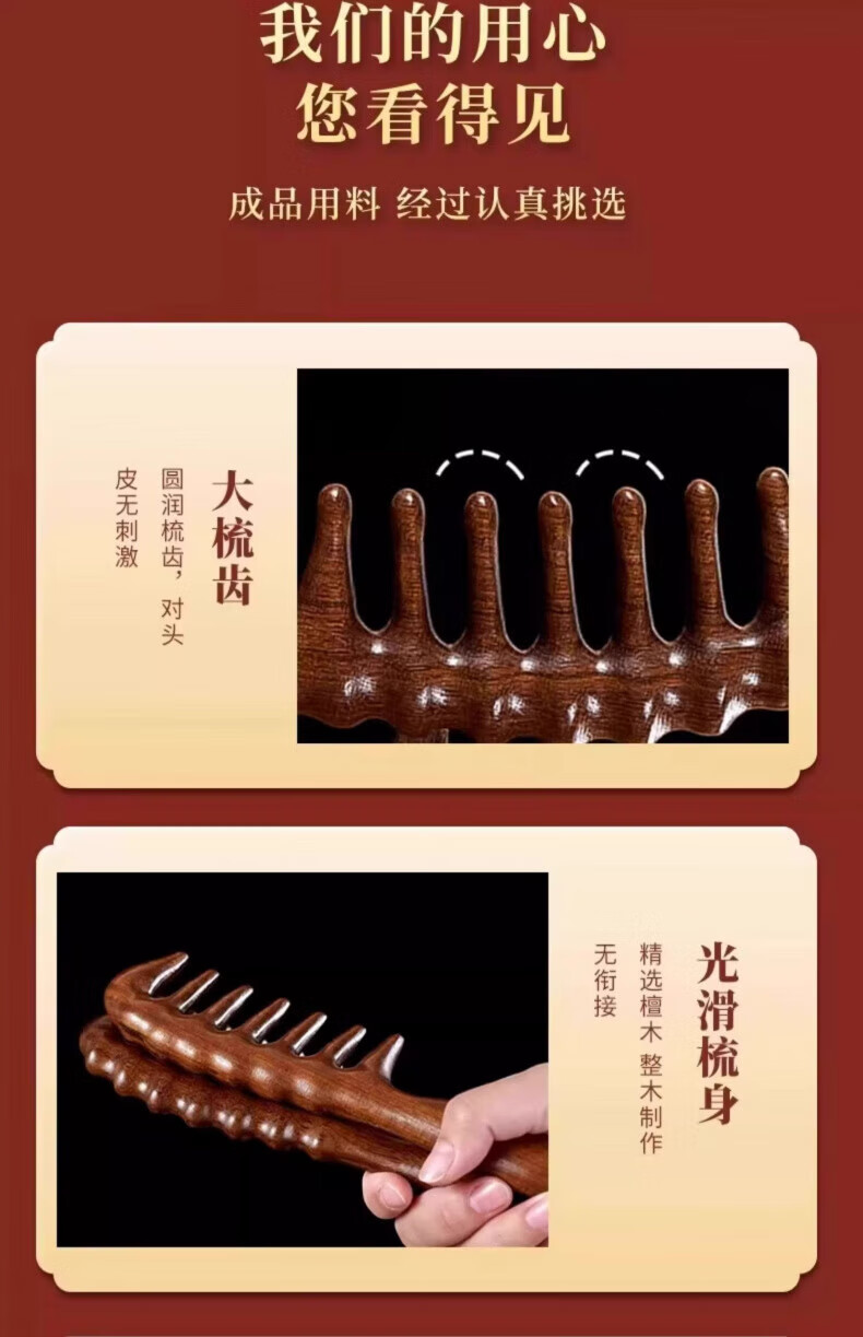 AILUKI日本檀木大齿卷发梳子宽卷发梳女士烫发后专用防静电按摩头皮经络 金丝檀木水滴头大齿梳