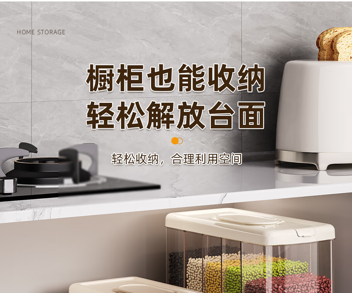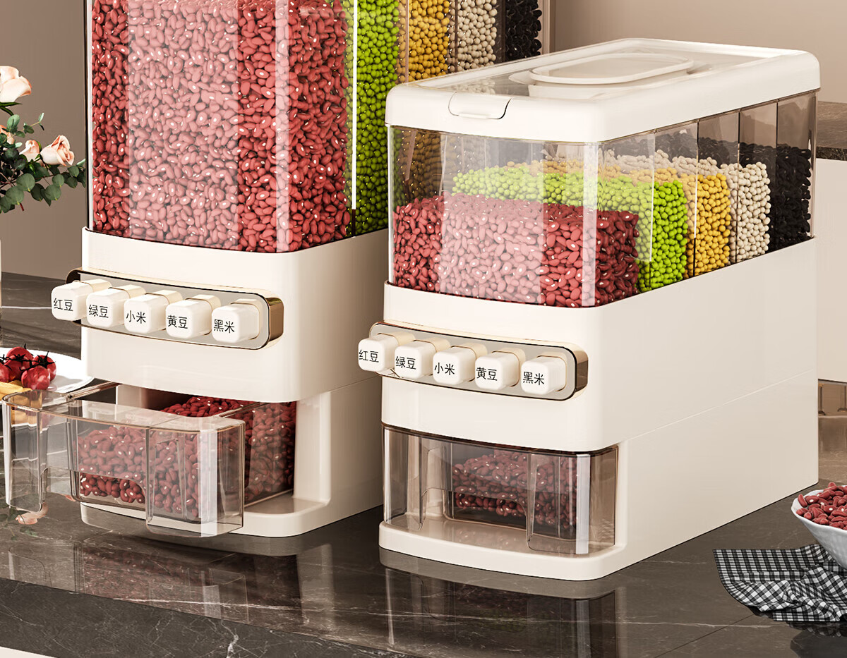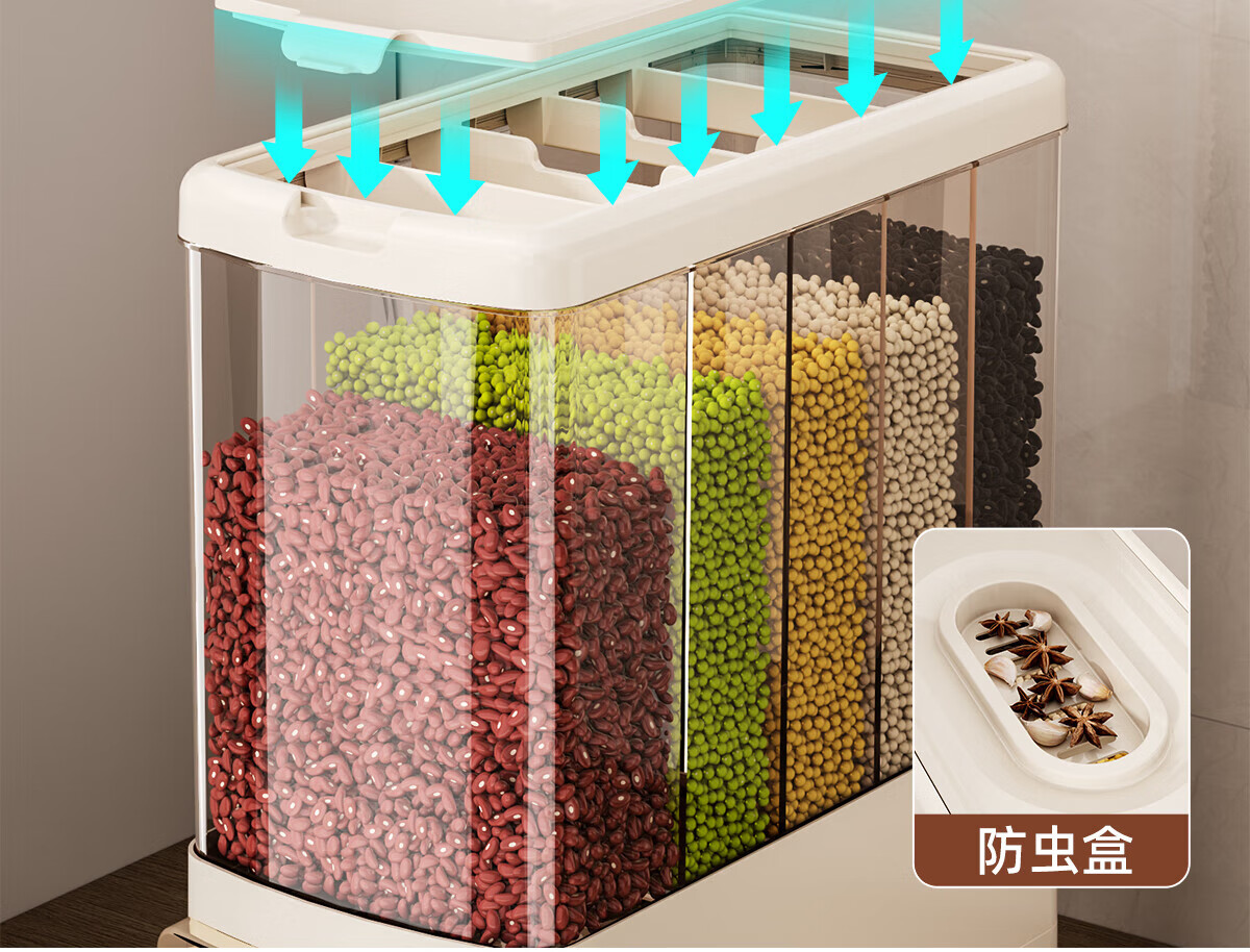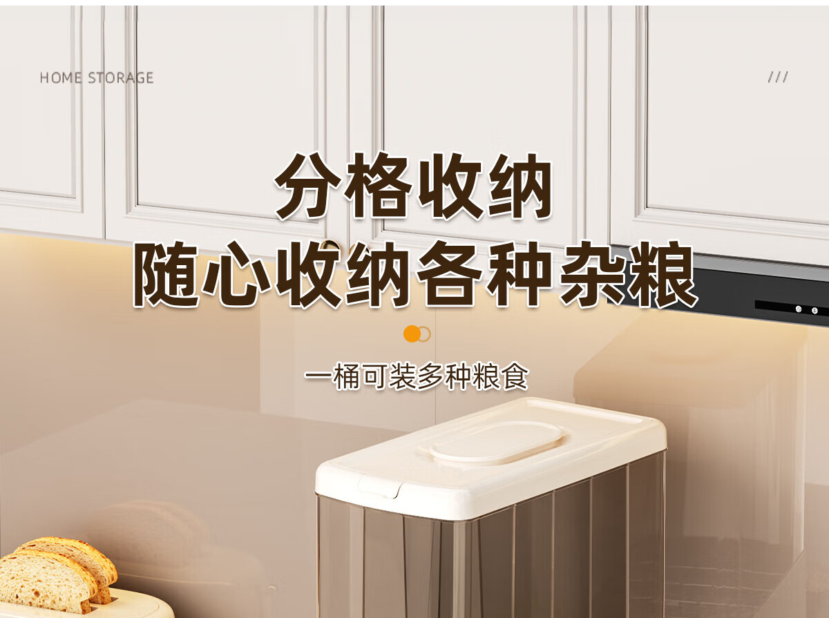 优勤按压式五谷杂粮收纳盒密封防虫防潮家用米桶米缸米箱面粉储存罐子 夹缝分格杂粮桶15斤