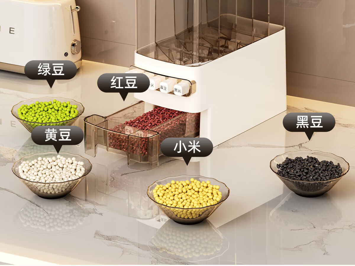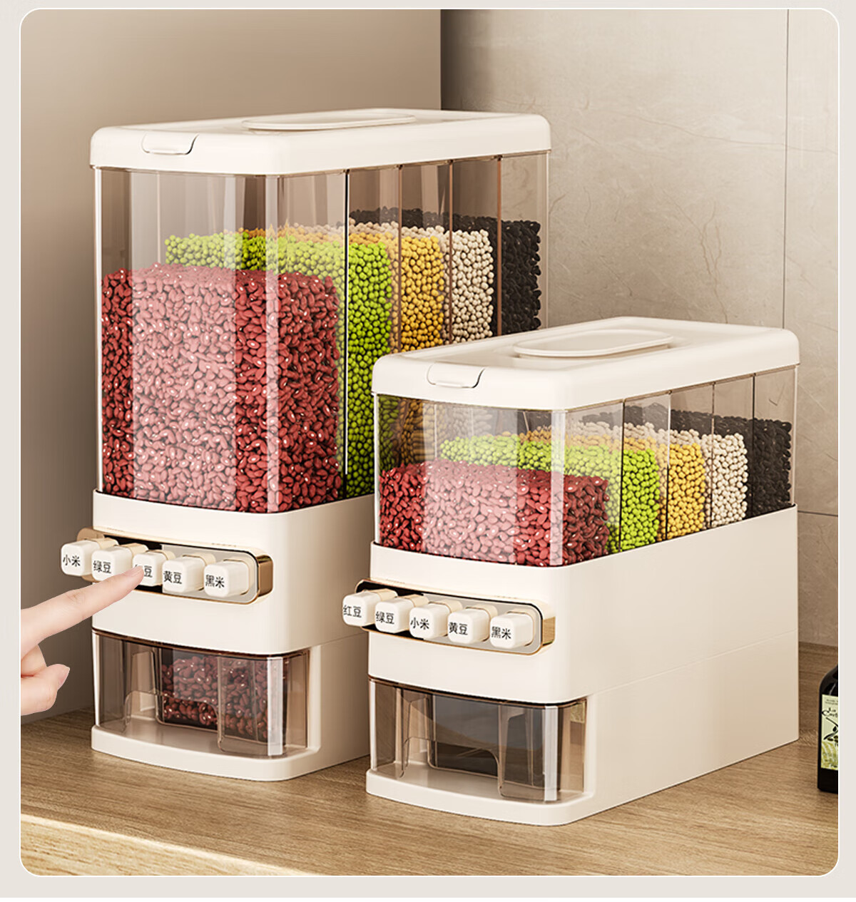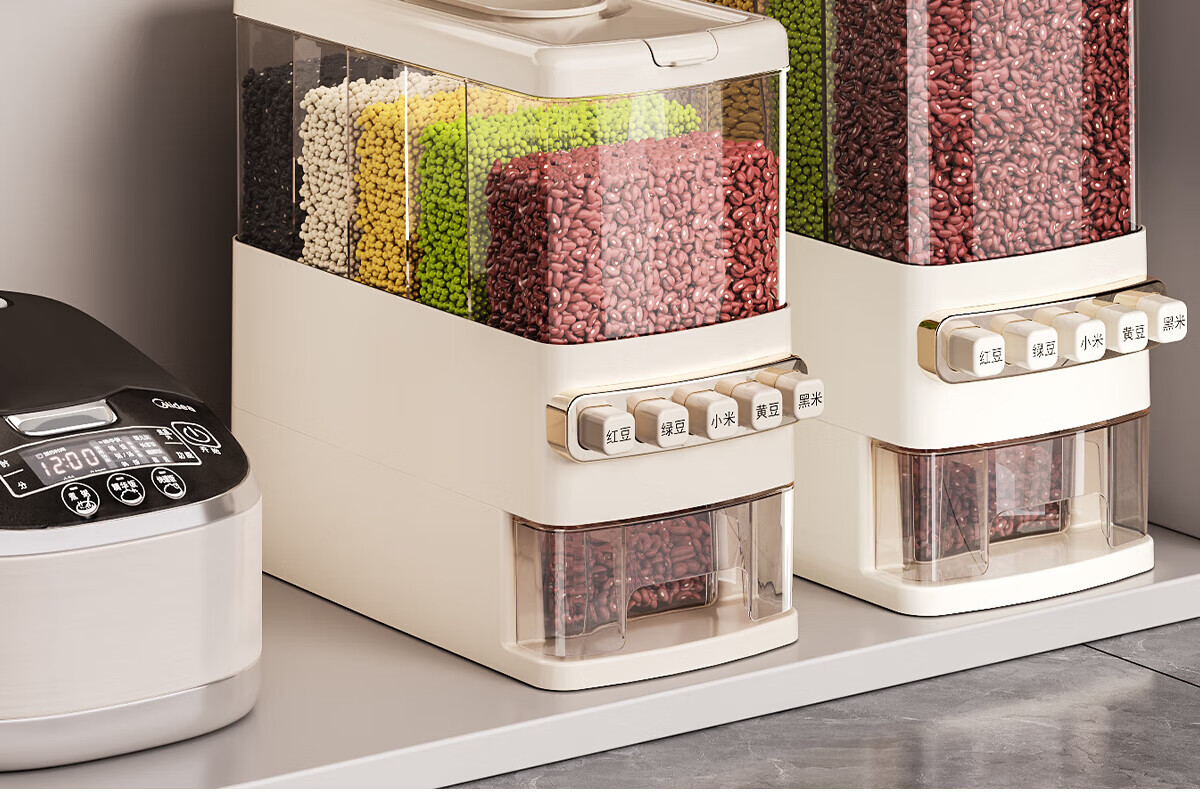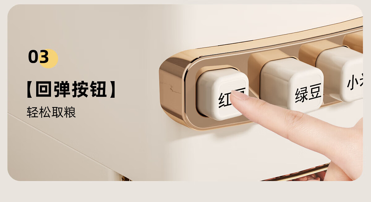 优勤按压式五谷杂粮收纳盒密封防虫防潮家用米桶米缸米箱面粉储存罐子 夹缝分格杂粮桶15斤