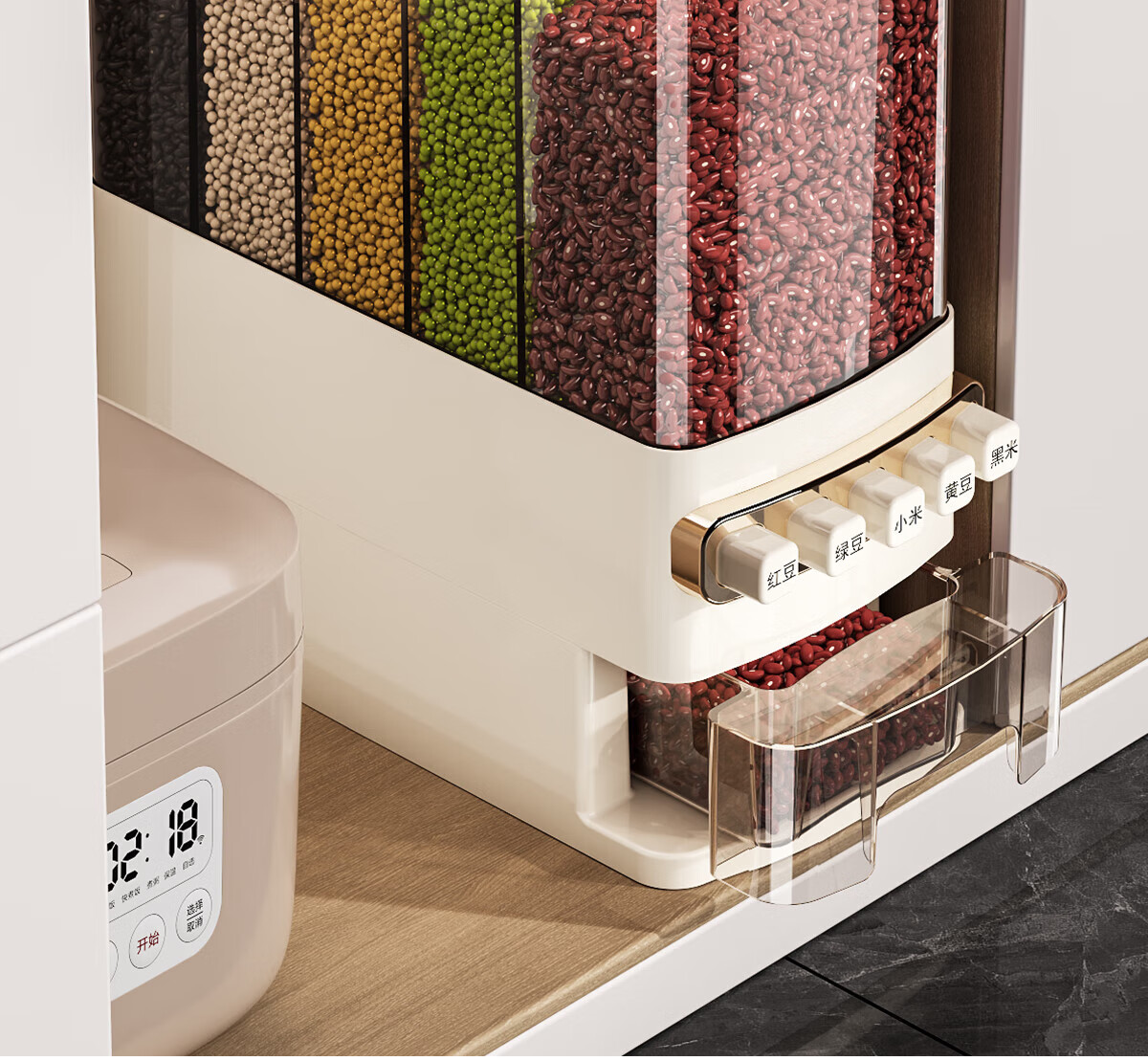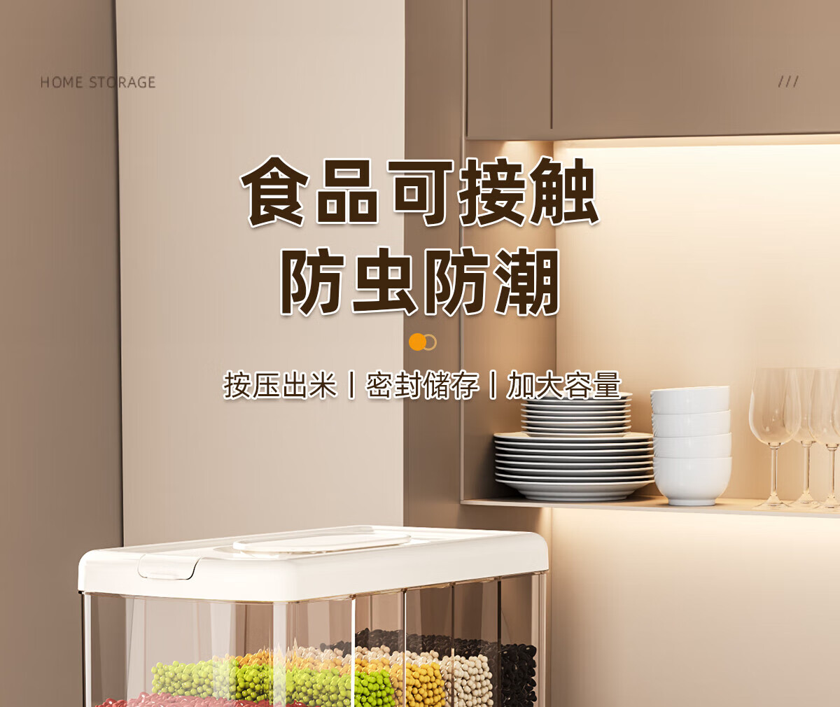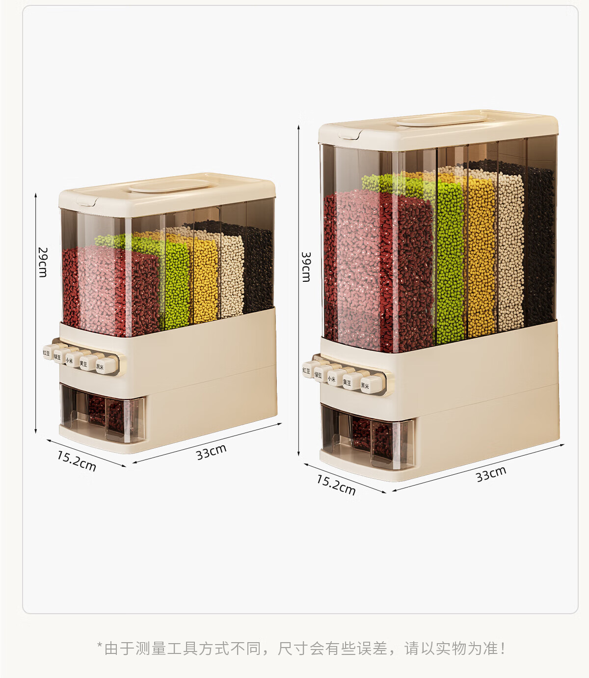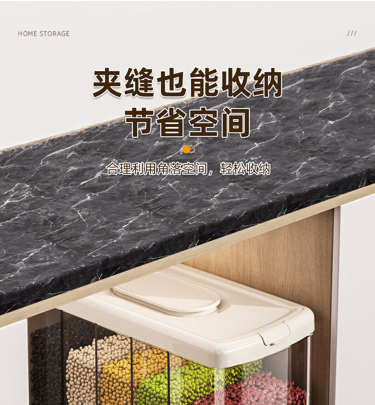优勤按压式五谷杂粮收纳盒密封防虫防潮家用米桶米缸米箱面粉储存罐子 夹缝分格杂粮桶15斤