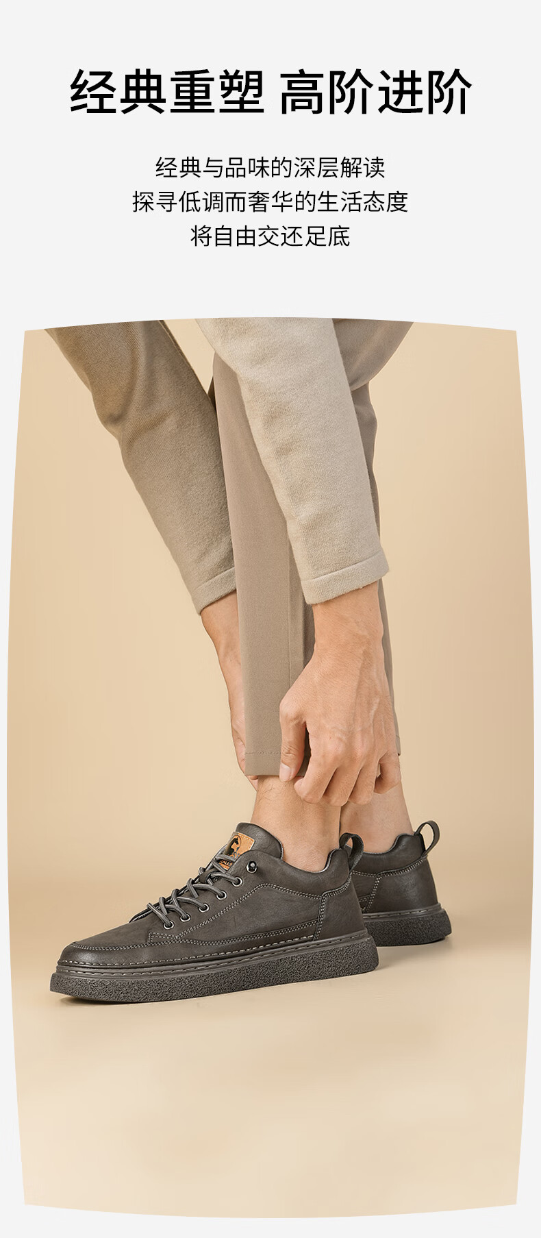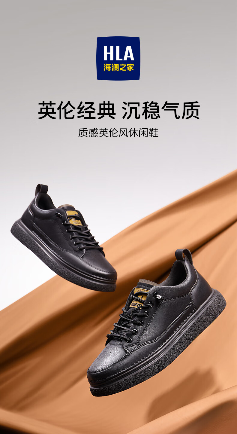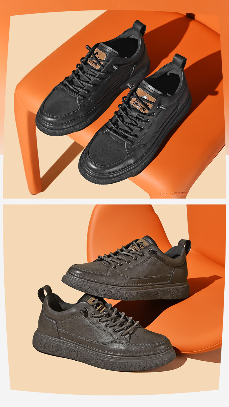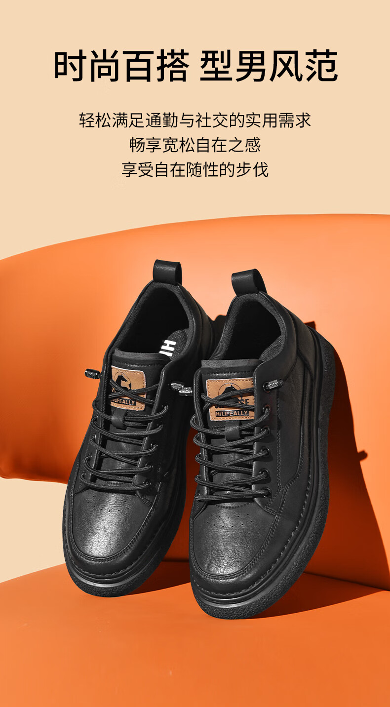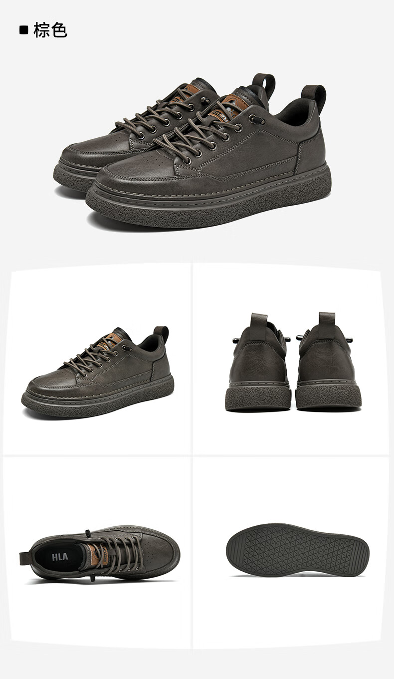 海澜之家HLA男鞋秋冬款休闲皮鞋子男士板鞋HAAXXM4DBF453 棕色短绒款40