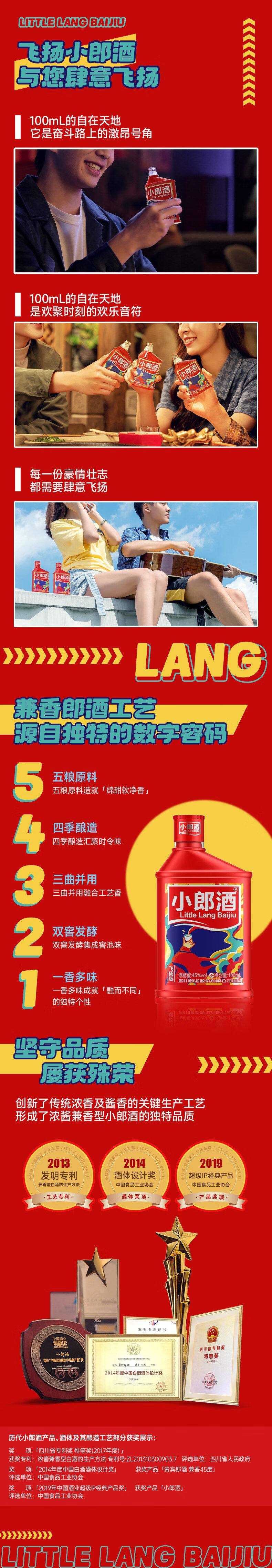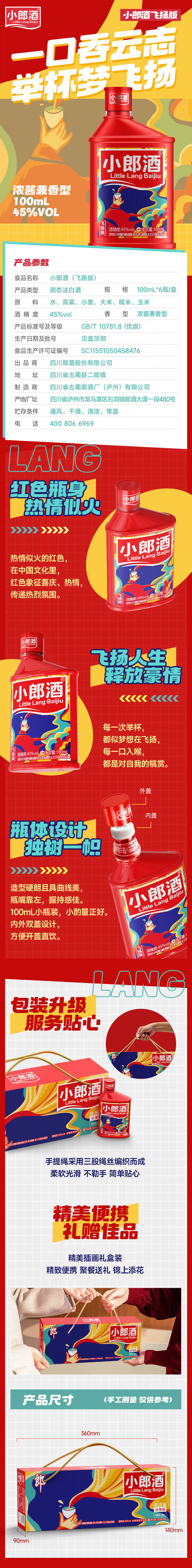 郎酒 小郎酒飞扬版 浓酱兼香型白酒 45度100ml*6瓶整箱 口粮小酒