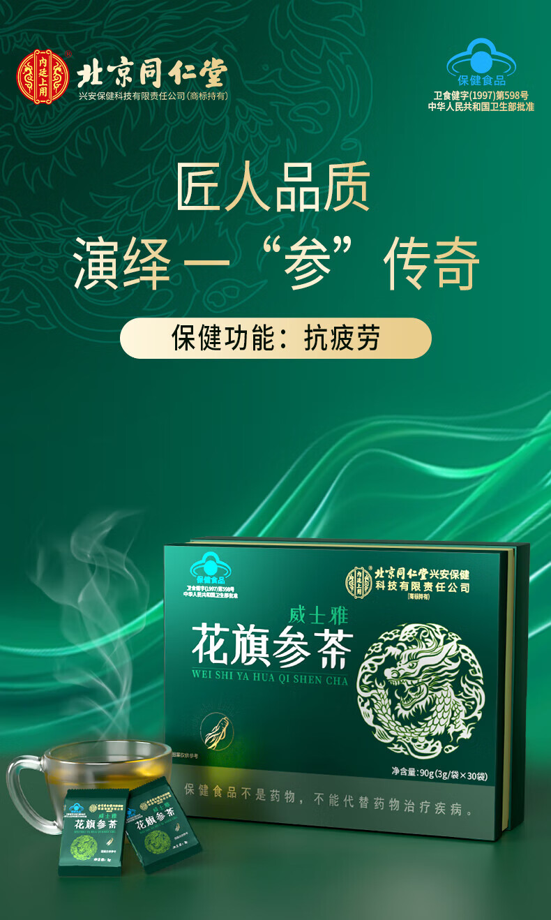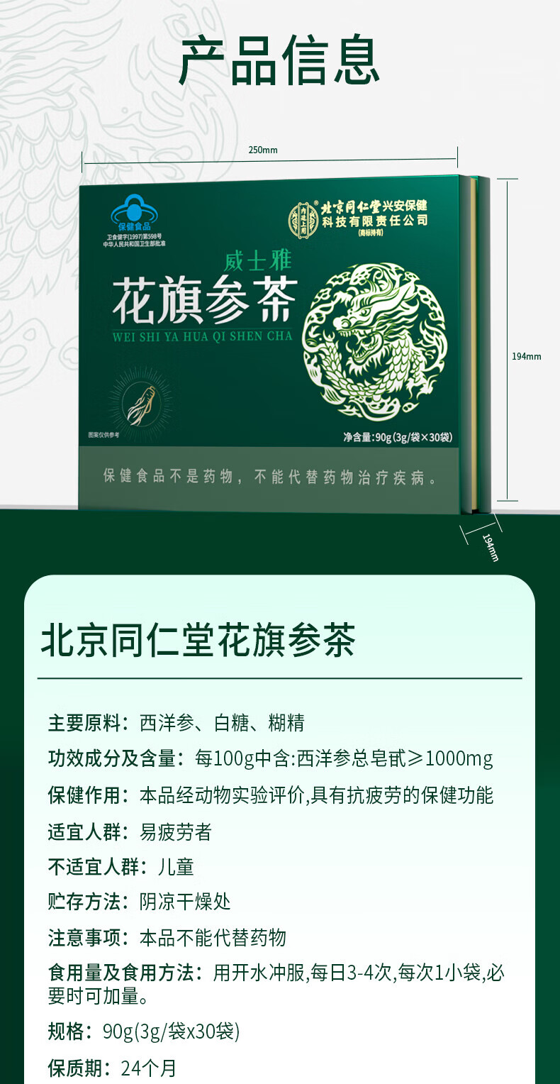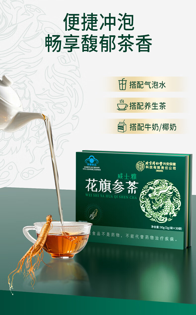 同仁堂(TRT)花旗参茶西洋参茶抗疲劳滋补营养节日送长辈礼品30包/1盒