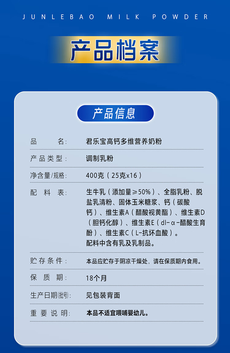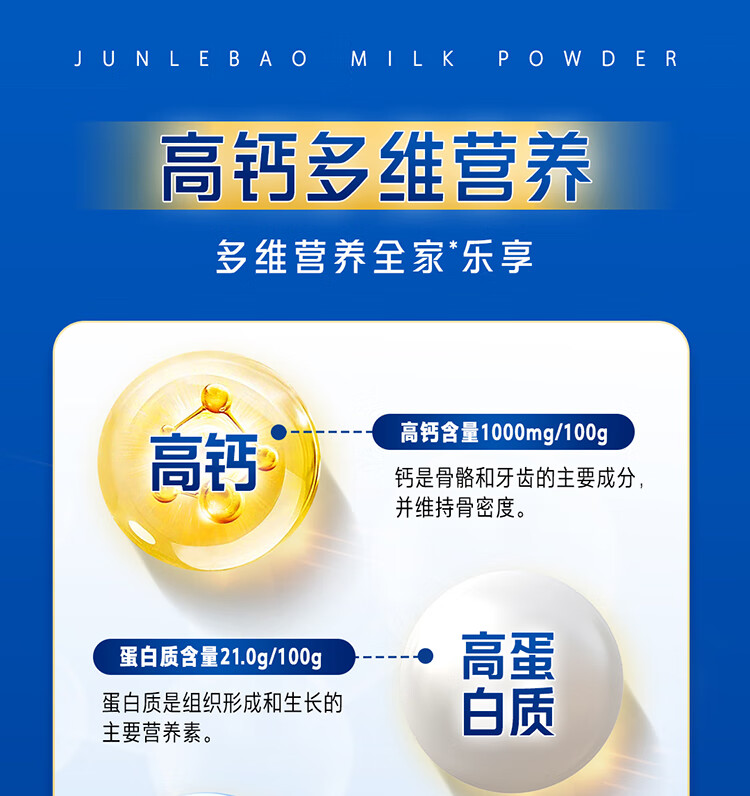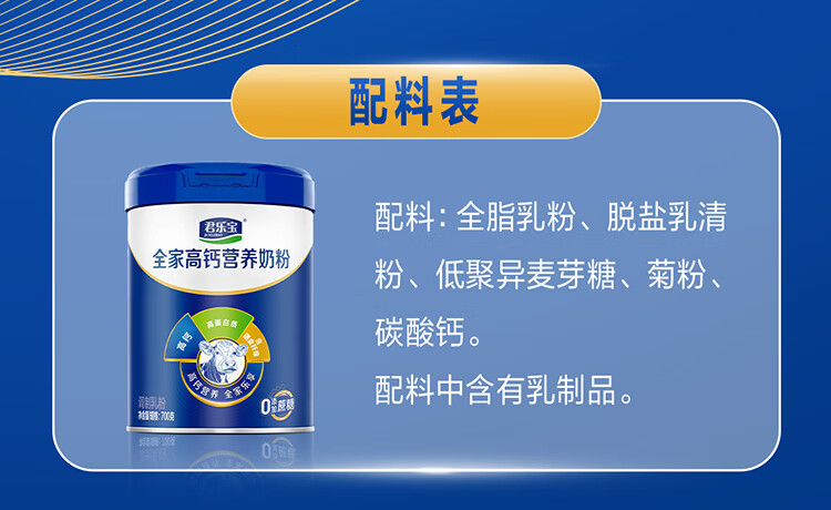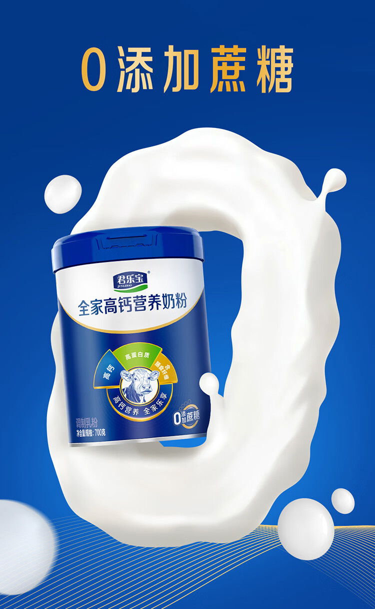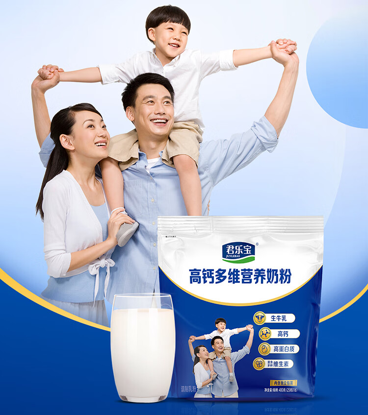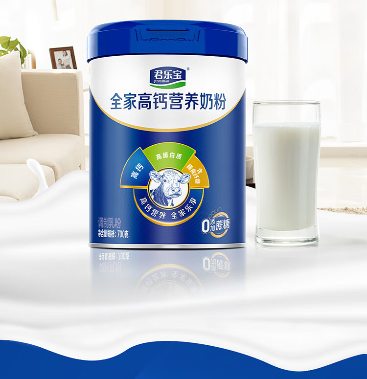 君乐宝成人奶粉全家高钙营养奶粉 全家粉2听(700克*2)赠礼盒