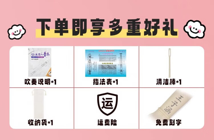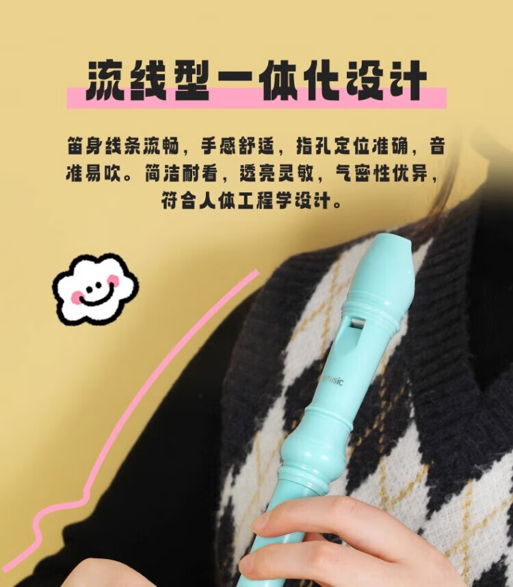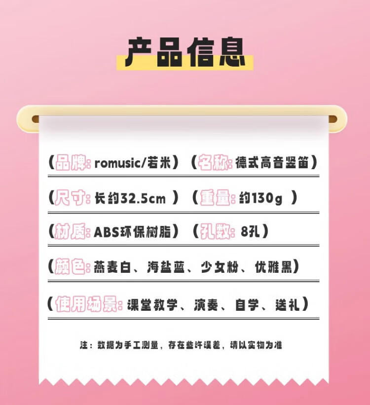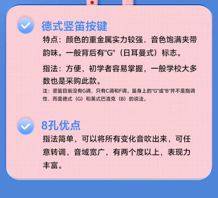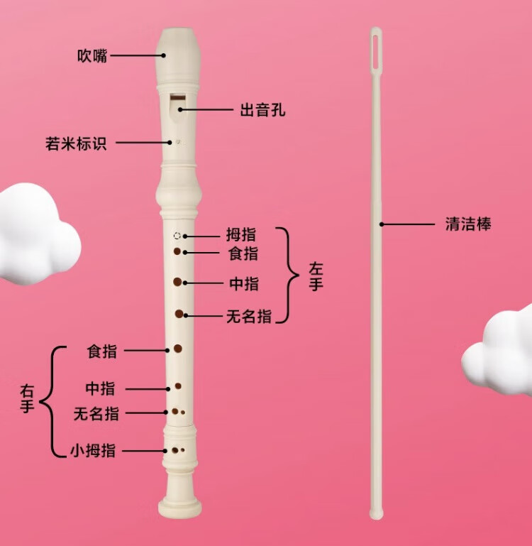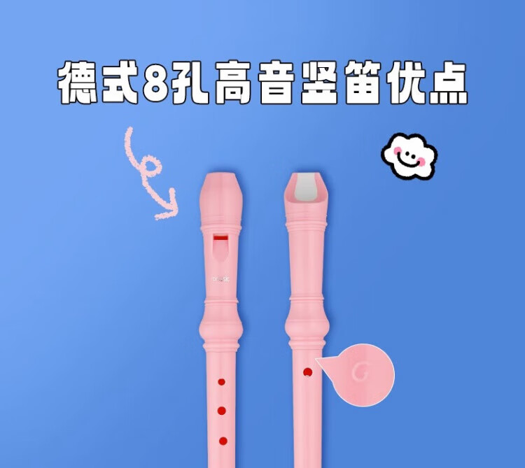 DEATKN德国竖笛德式高音6孔8孔小学生专用初学六孔八孔儿童入门笛子 粉色8孔【收纳袋+标配】