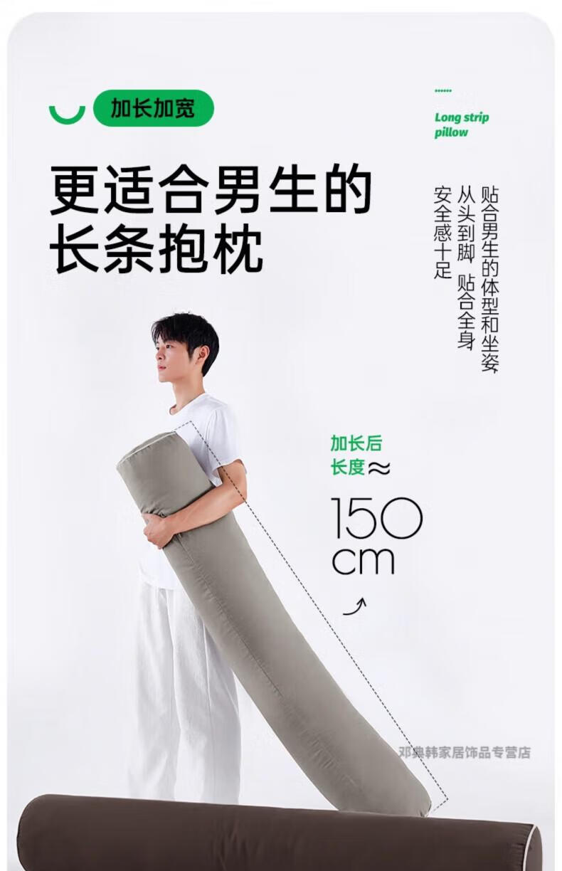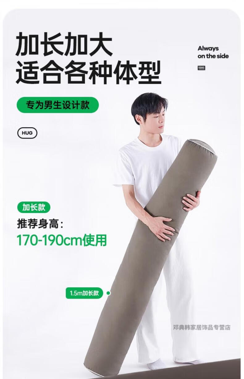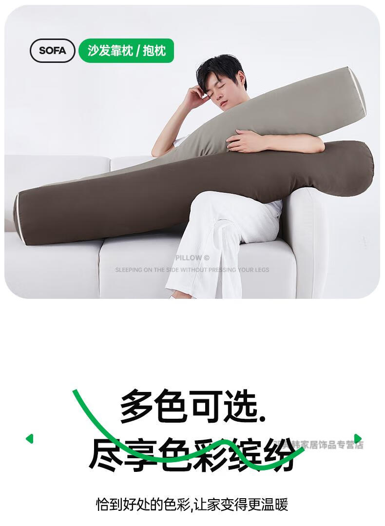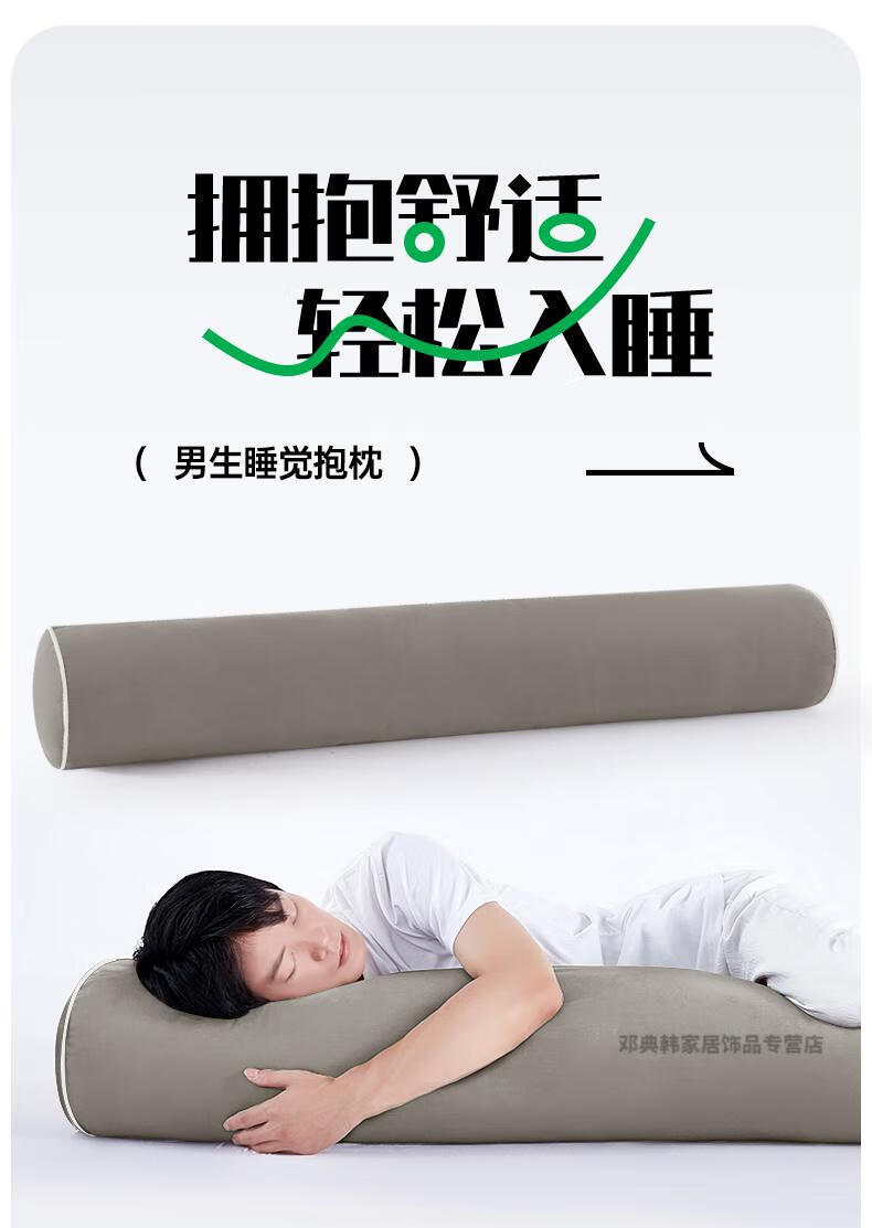 DEATKN德国高端长条抱枕夹腿睡觉男生床上侧睡专用成人睡眠男士抱枕圆柱 【升级内衬】【四季款·助眠舒睡枕】可拆洗【卡其】 18cm*120cm 含枕芯 长1.2米直径:身高145-