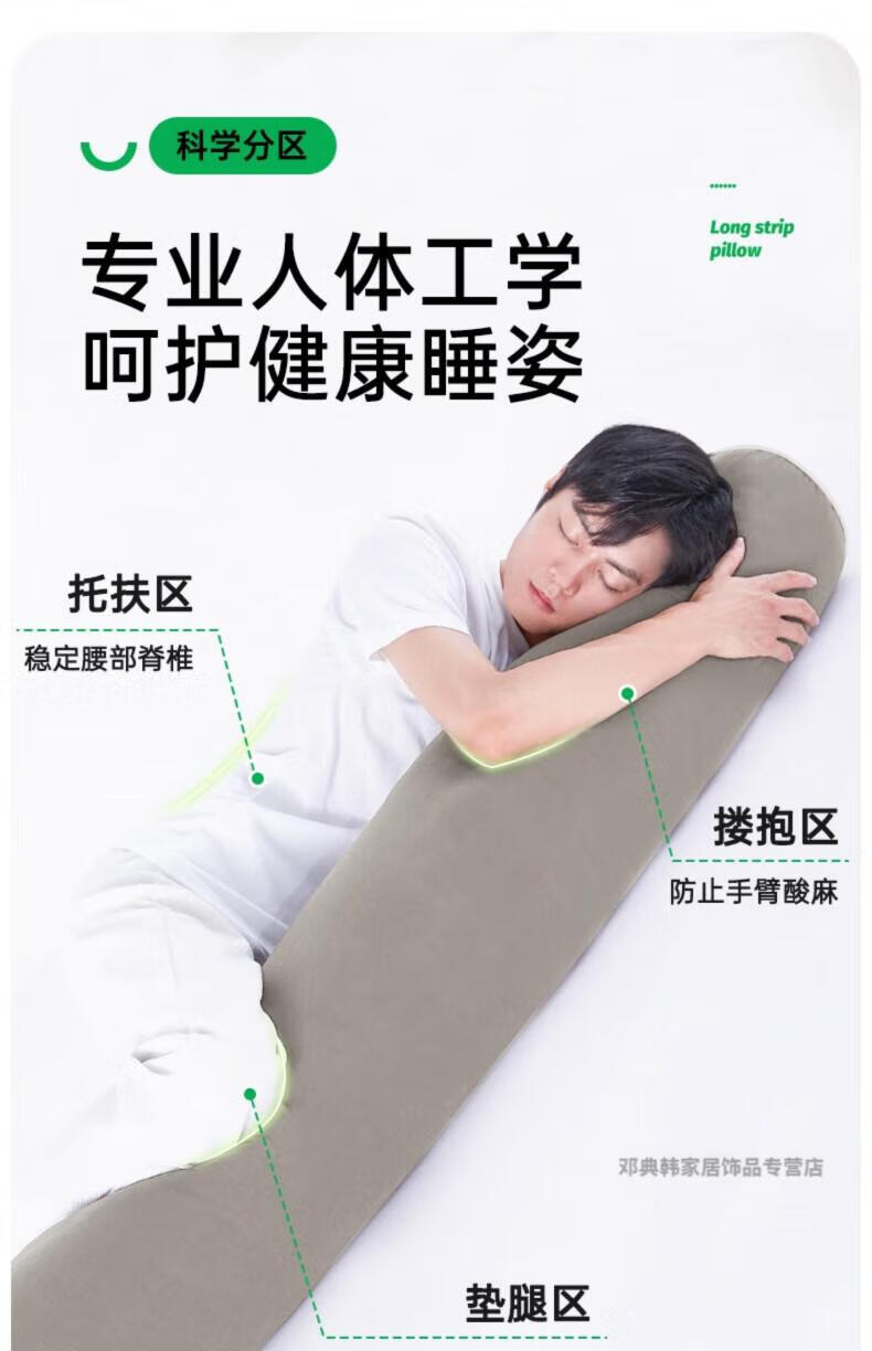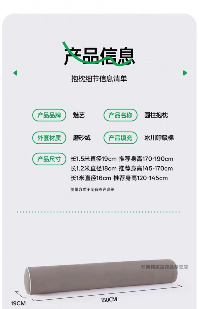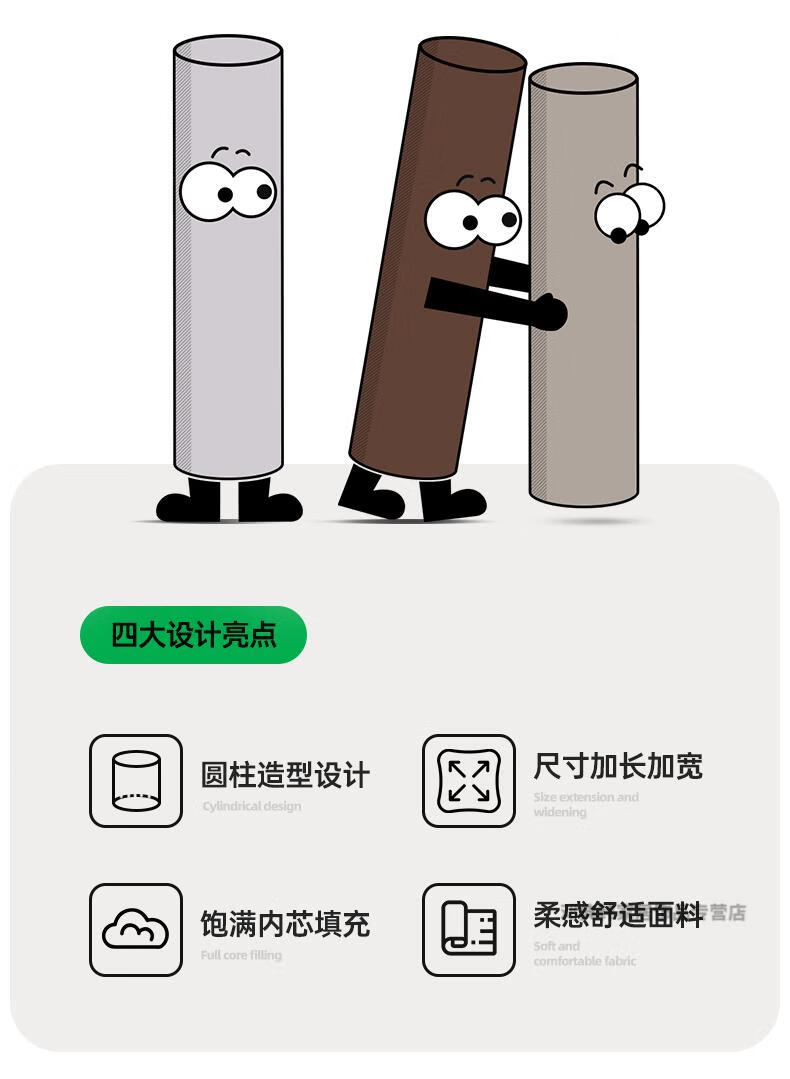DEATKN德国高端长条抱枕夹腿睡觉男生床上侧睡专用成人睡眠男士抱枕圆柱 【升级内衬】【四季款·助眠舒睡枕】可拆洗【卡其】 18cm*120cm 含枕芯 长1.2米直径:身高145-