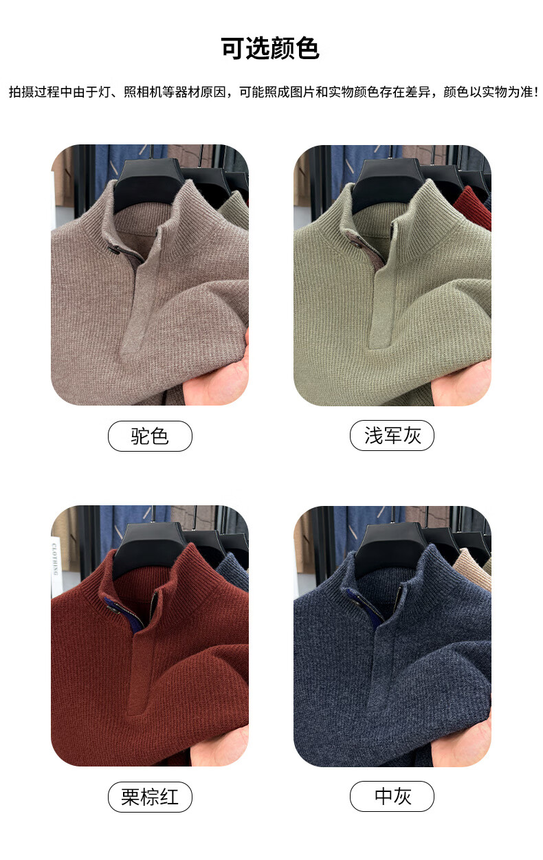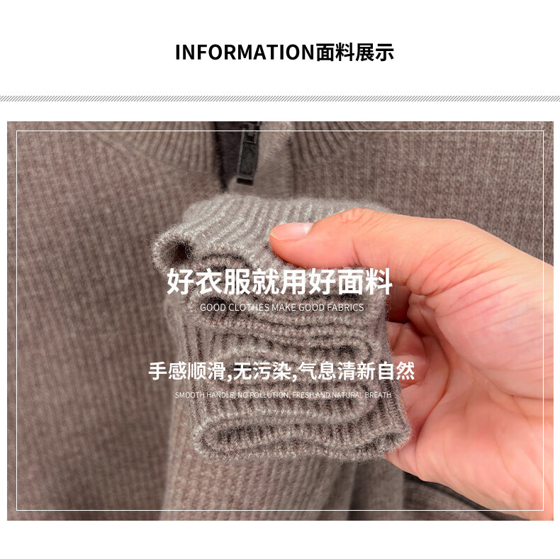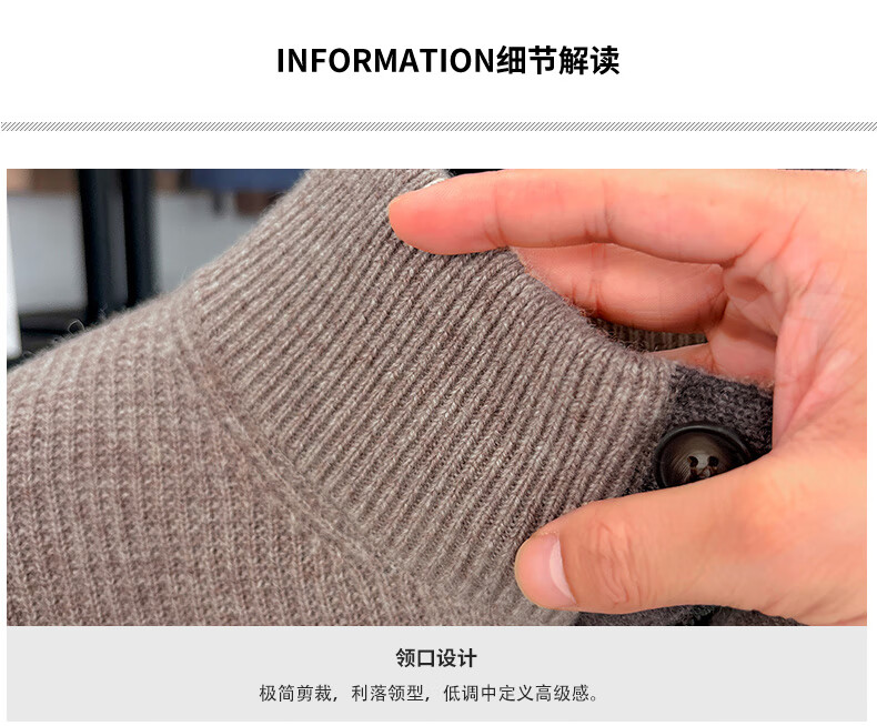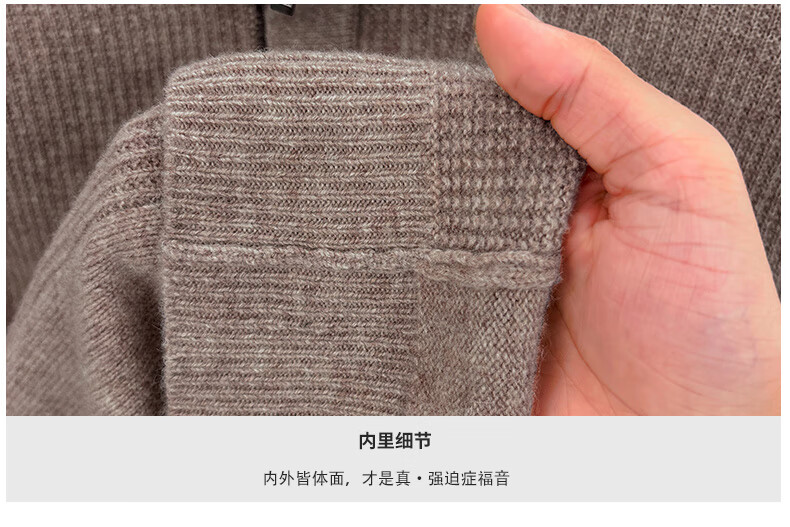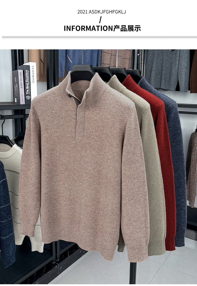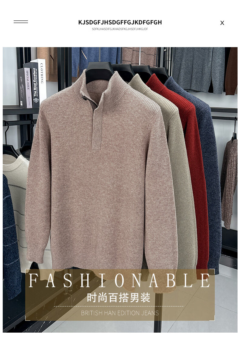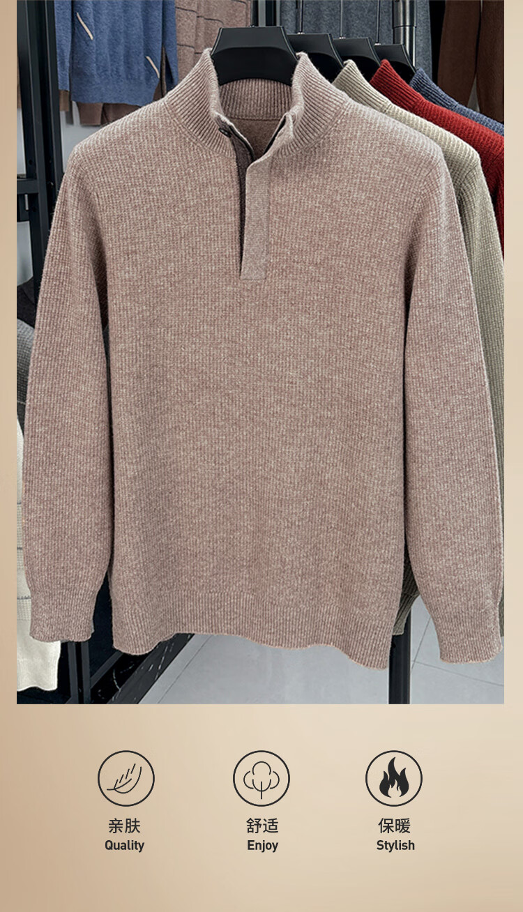 JOW【重磅加厚】100%纯羊毛衫男士高领暗门襟休闲针织衫2025新款毛衣