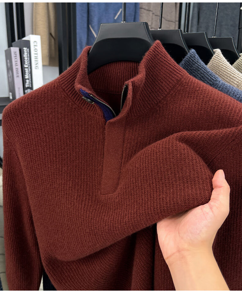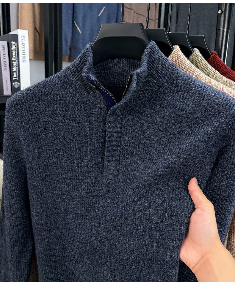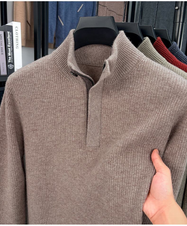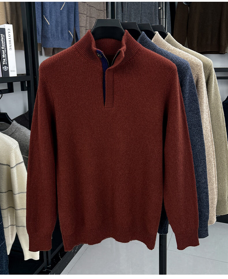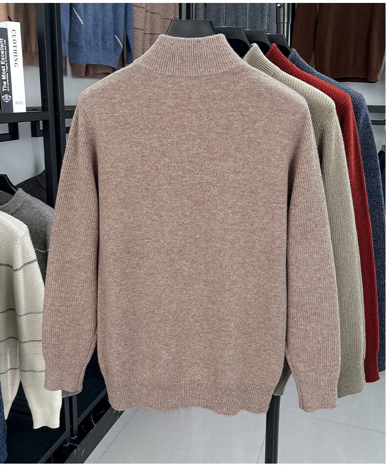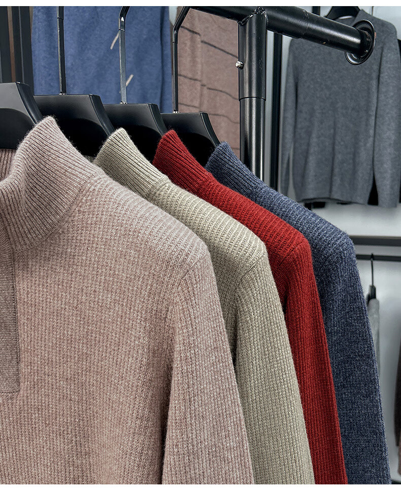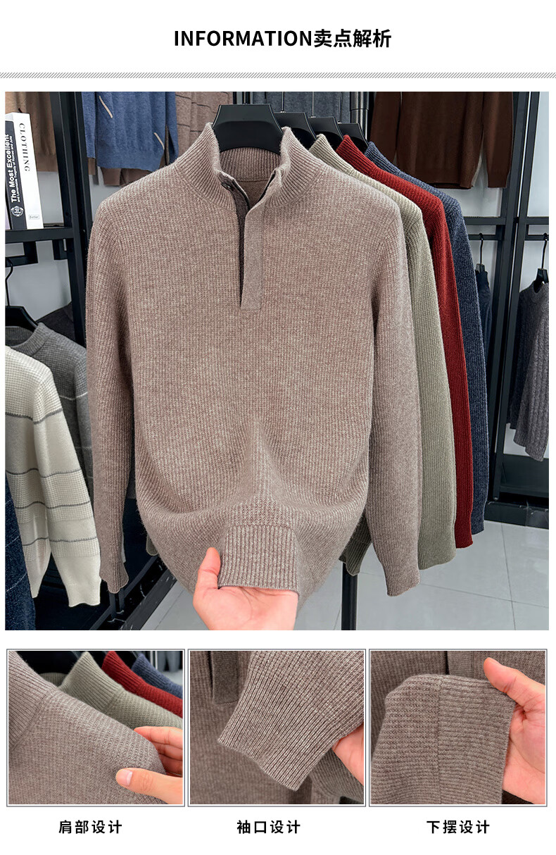 JOW【重磅加厚】100%纯羊毛衫男士高领暗门襟休闲针织衫2025新款毛衣