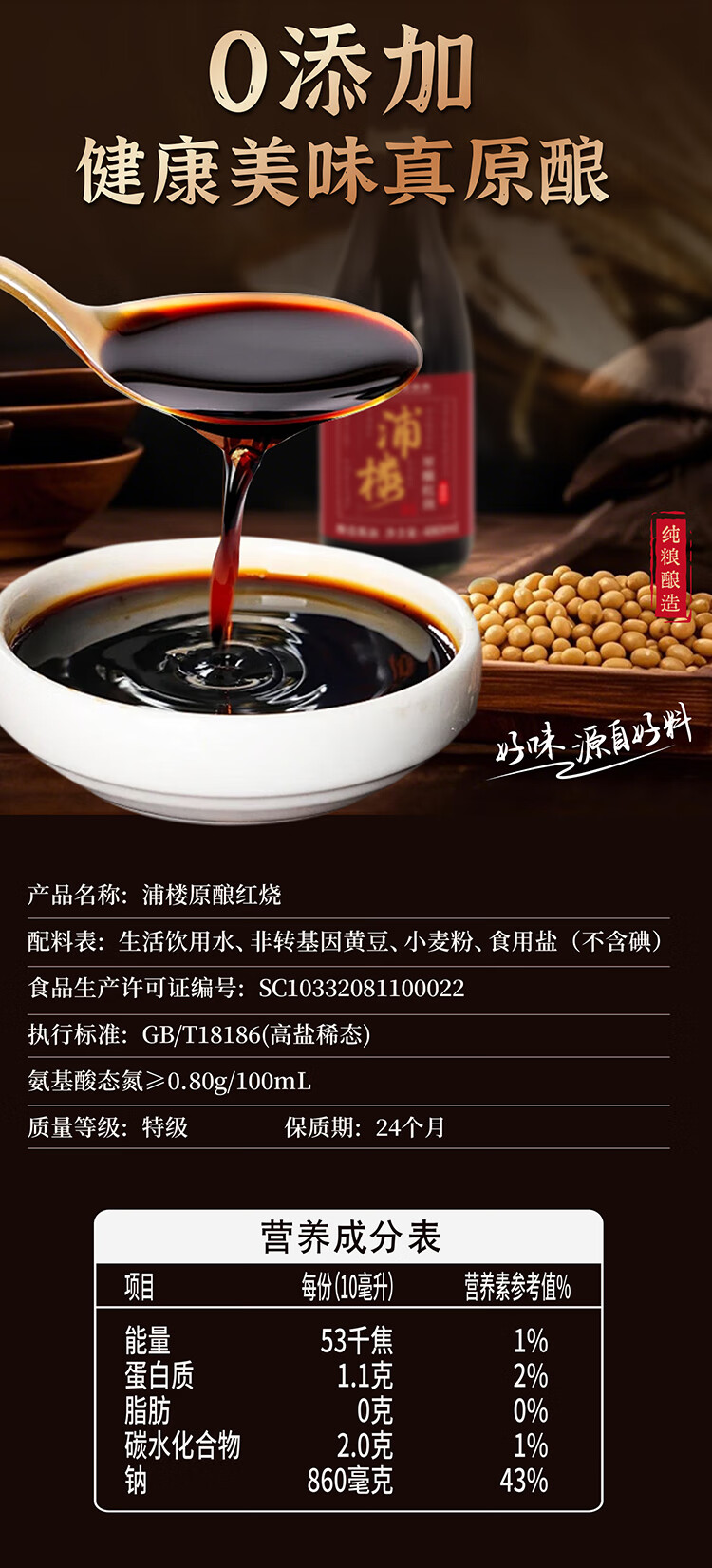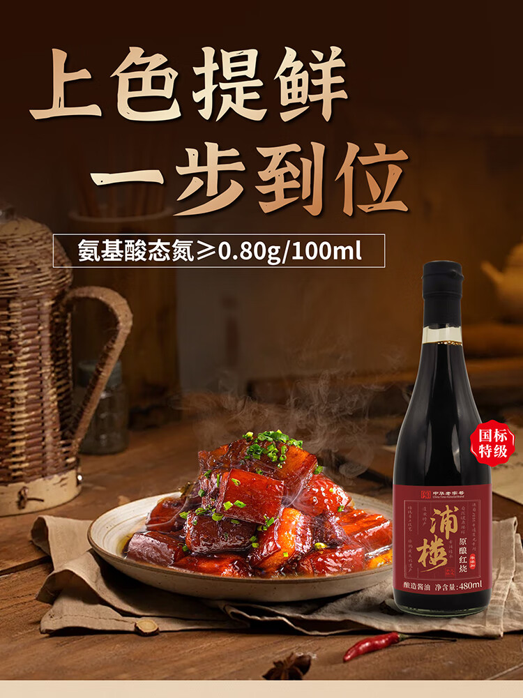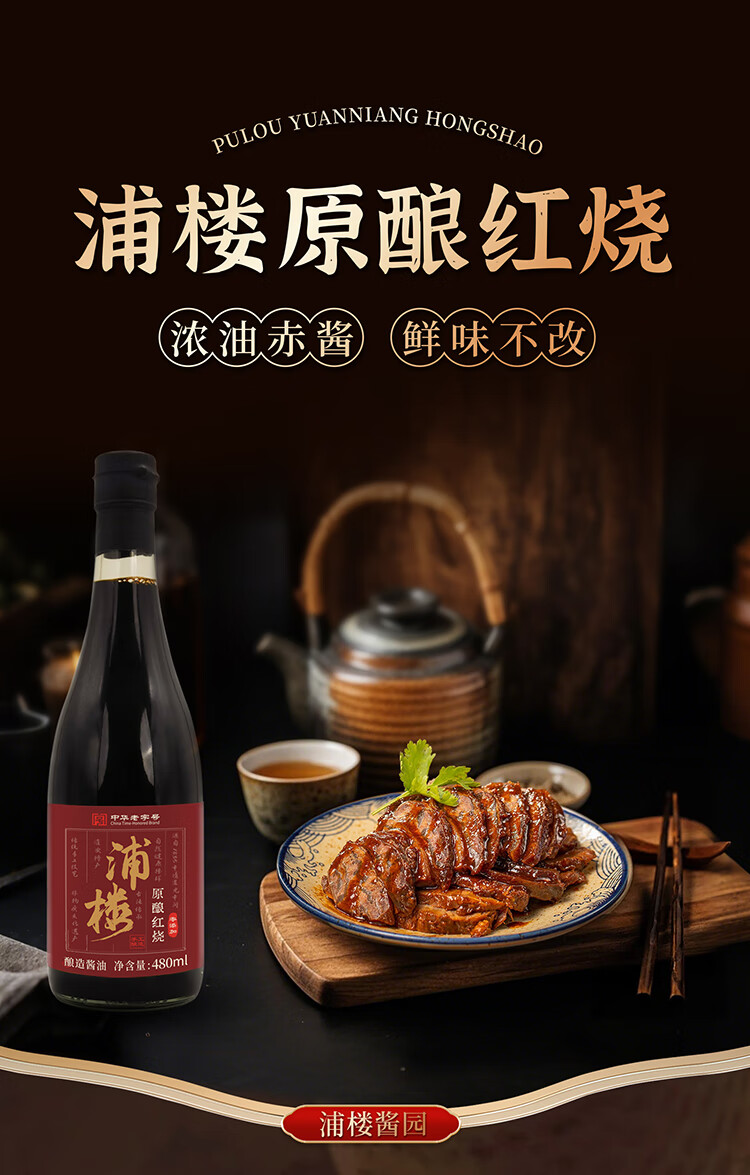 浦楼古法老酱油0添加红烧手工传统酿造头道特级黄豆家用炖煮无碘老抽