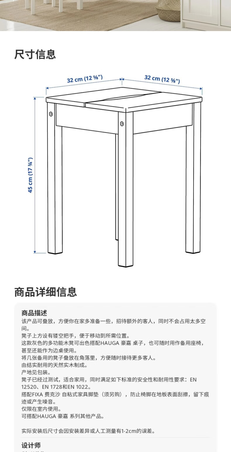 宜家(IKEA)HAUGA豪嘉凳小方凳家用板凳客厅餐边凳梳妆凳四方凳 凳白色
