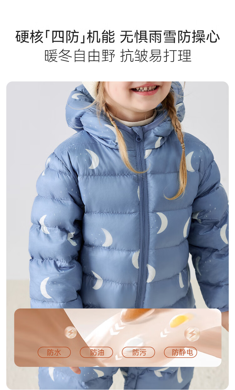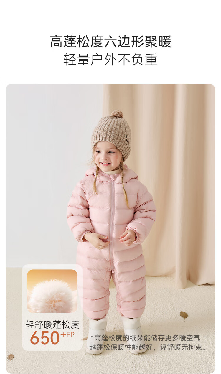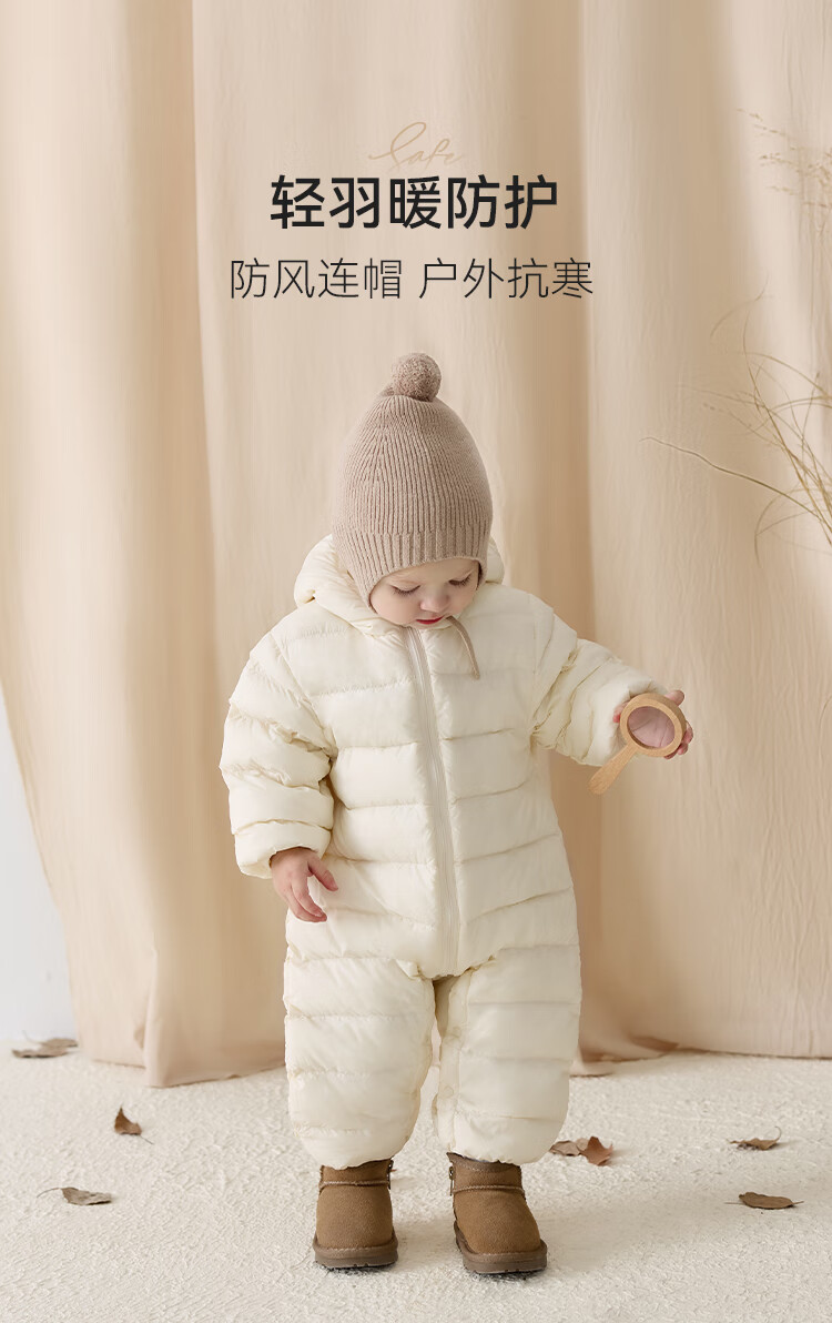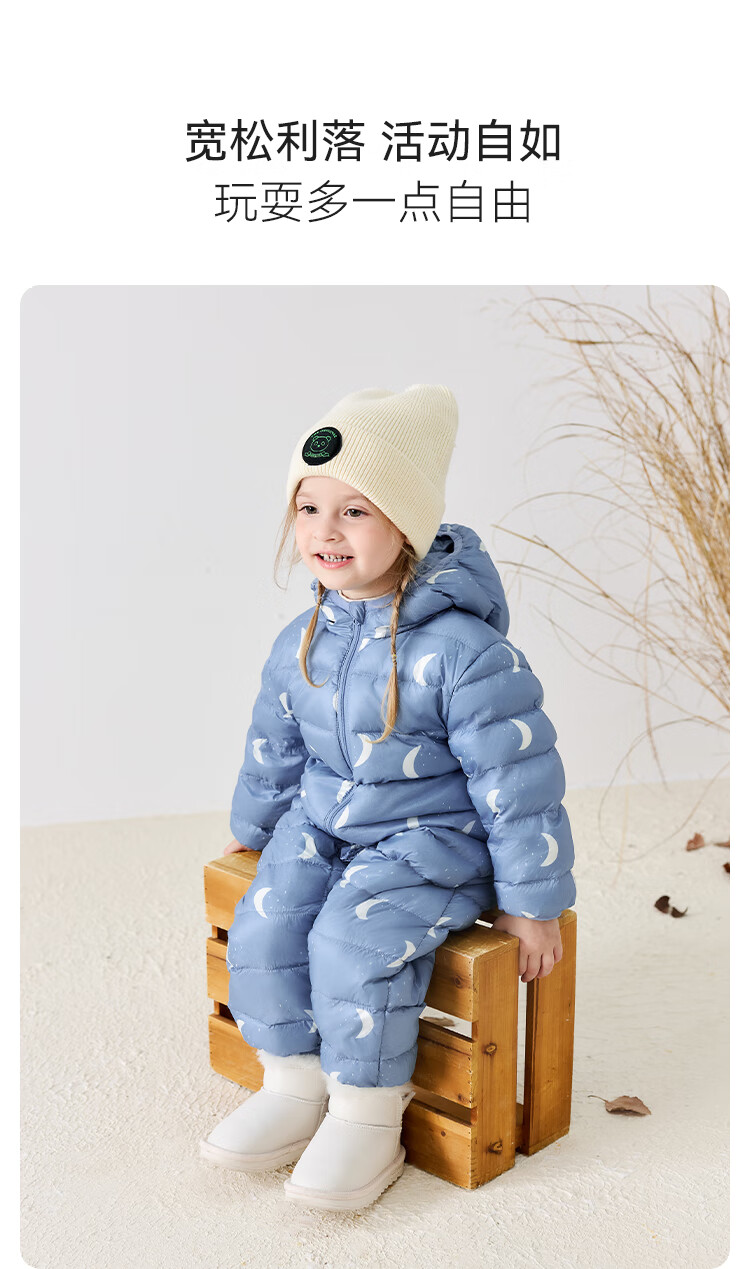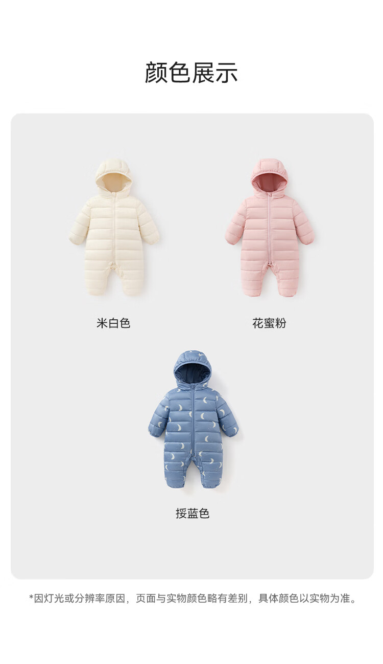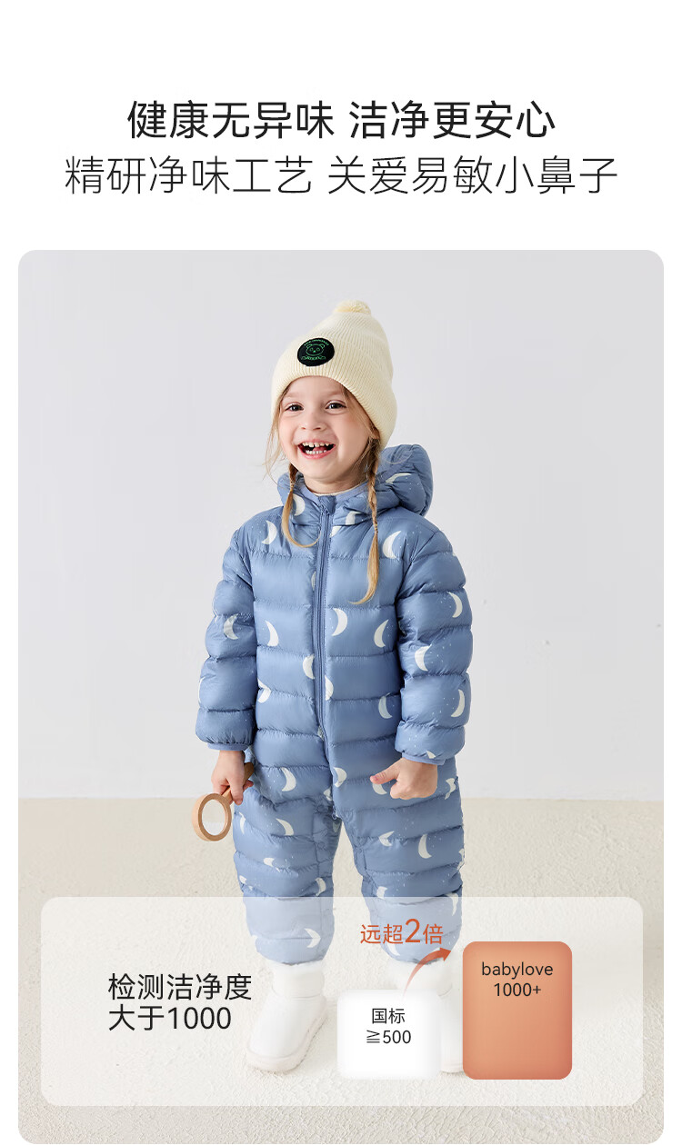 babylove【清仓】婴幼儿连体衣轻薄新生儿羽绒服冬季三防宝宝哈衣连帽爬服 挼蓝色 80cm