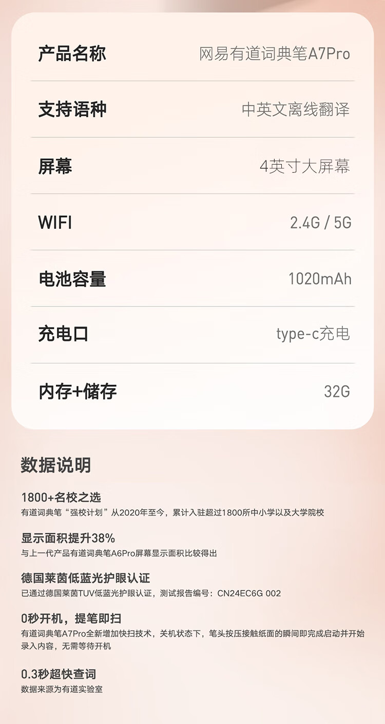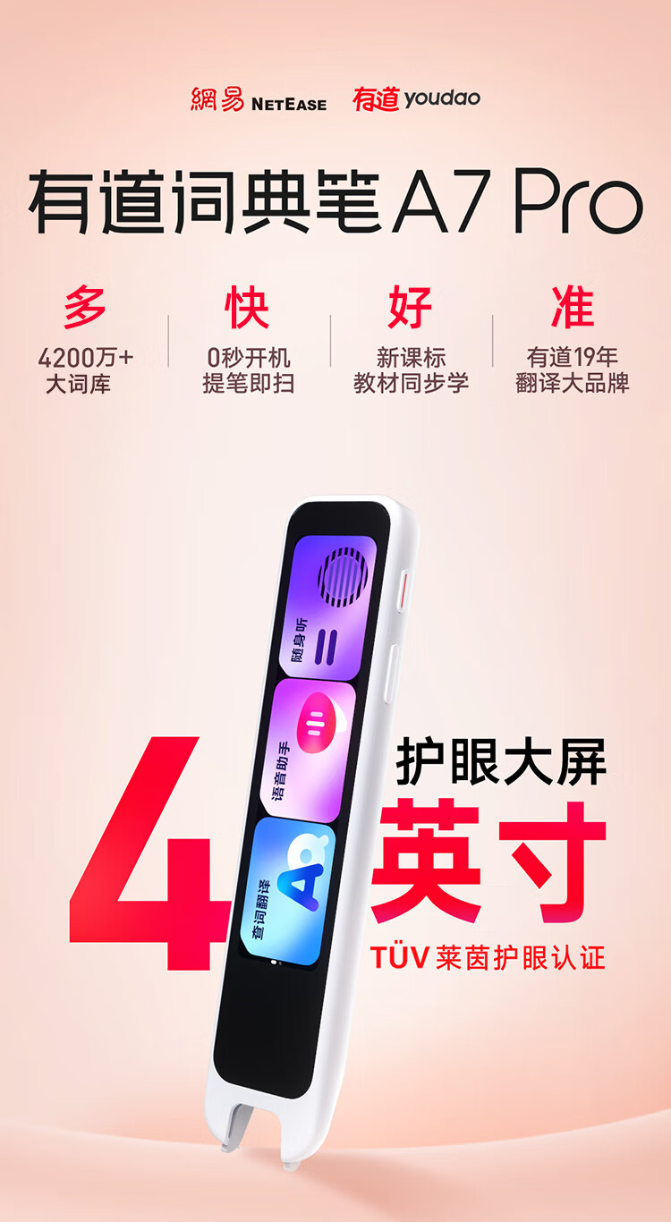 有道词典笔A7Pro 【15天试用】英语点读笔A7翻译笔电子英汉辞典小学到高中生扫描单词学习笔 【高配】A7PRO 32GB 4英寸大屏