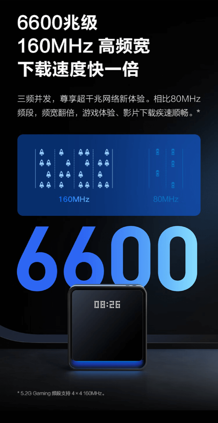 京东云无线宝AX6600雅典娜256G 家用路由器 WIFI6 高通5核 1G内存 LED点阵屏 三频Mesh