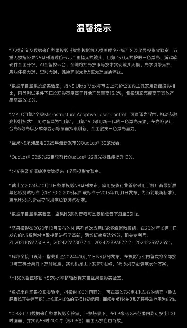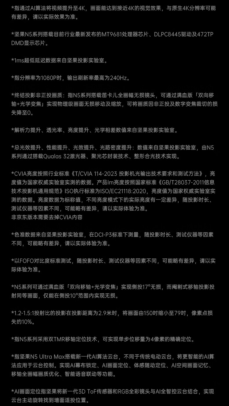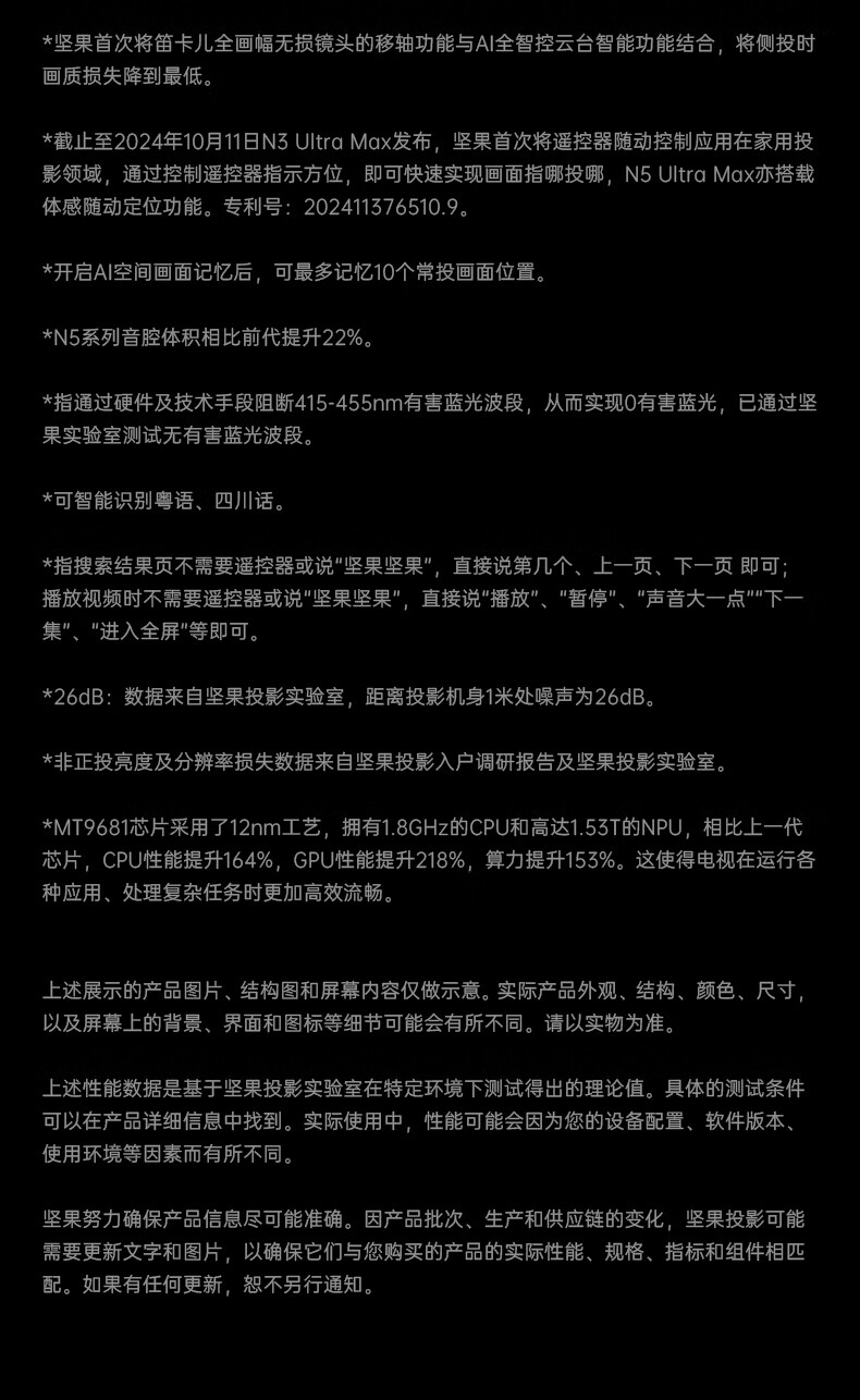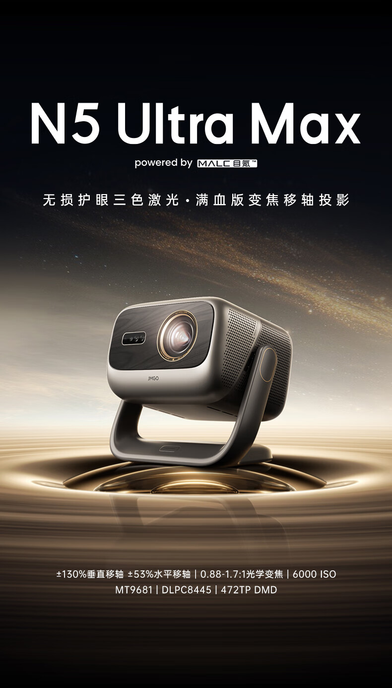 坚果投影(JMGO)N5 Ultra Max 4K超高清三色激光云台投影仪 变焦自动移轴家用智能高清家庭影院投影机