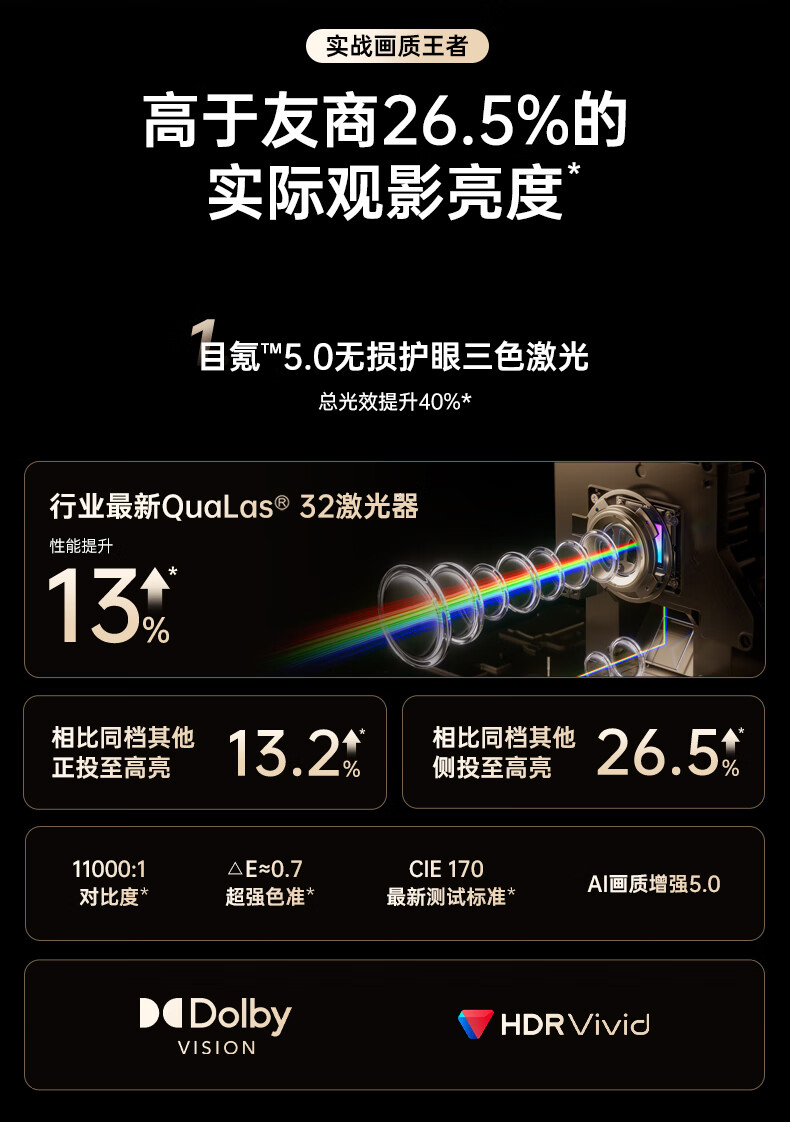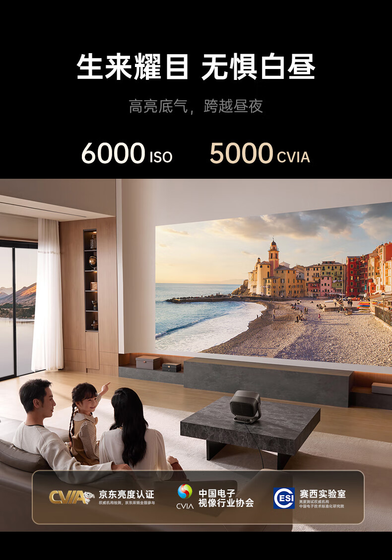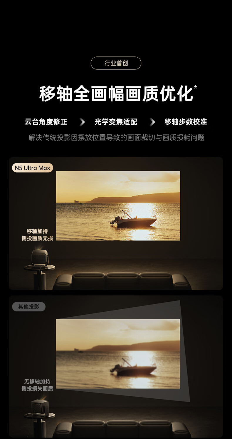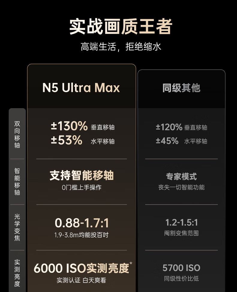坚果投影(JMGO)N5 Ultra Max 4K超高清三色激光云台投影仪 变焦自动移轴家用智能高清家庭影院投影机
