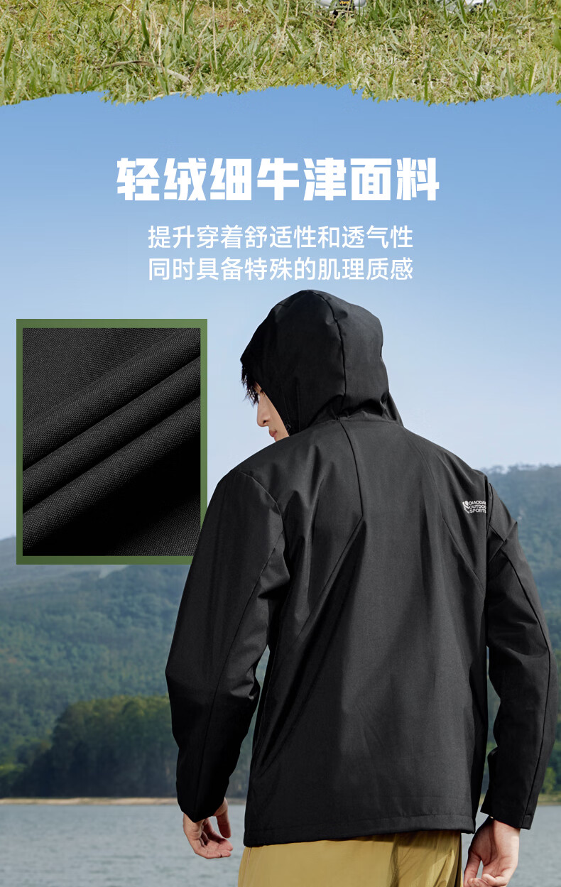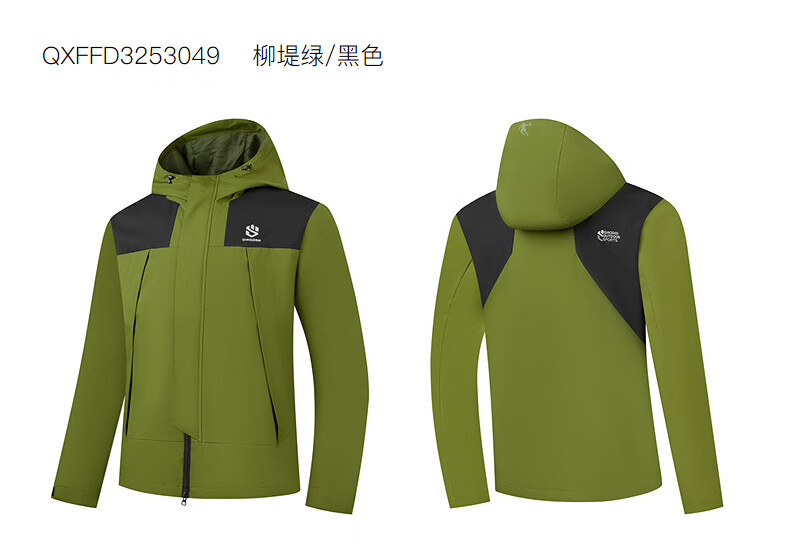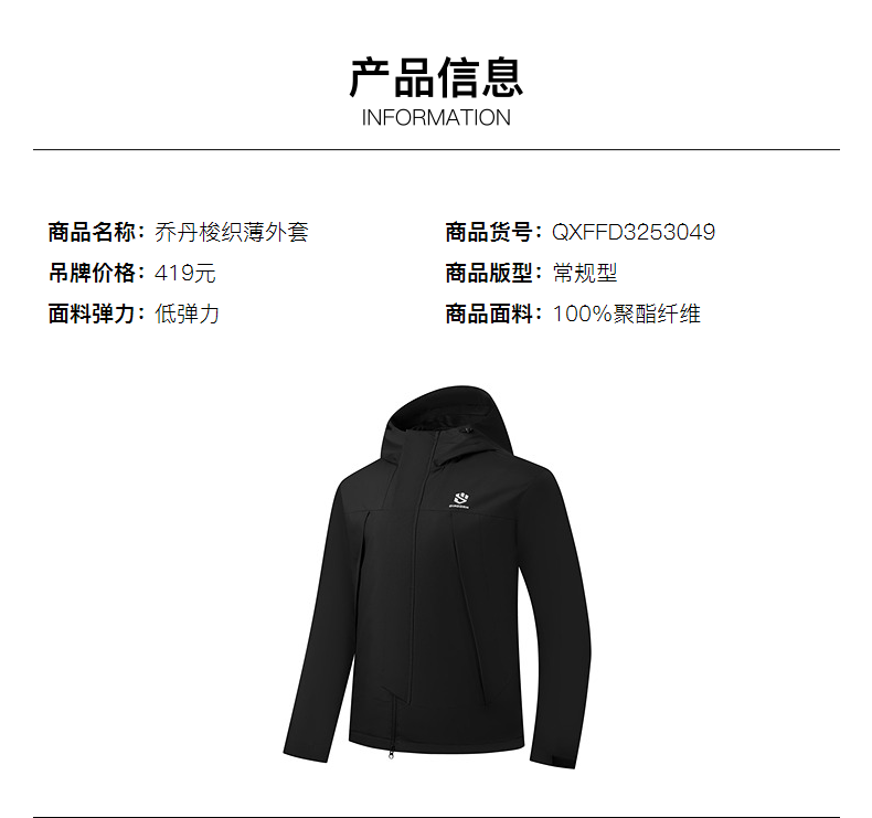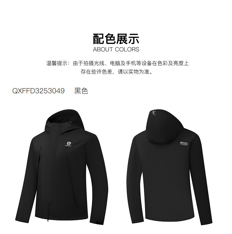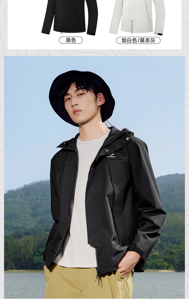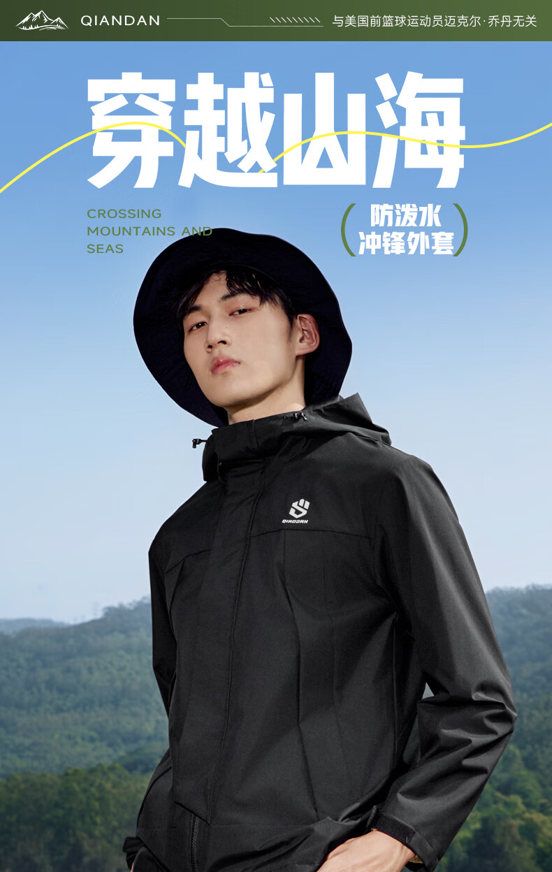 乔丹山神外套男风衣秋冬季防风防泼水户外运动连帽长袖上衣夹克 黑色 5XL
