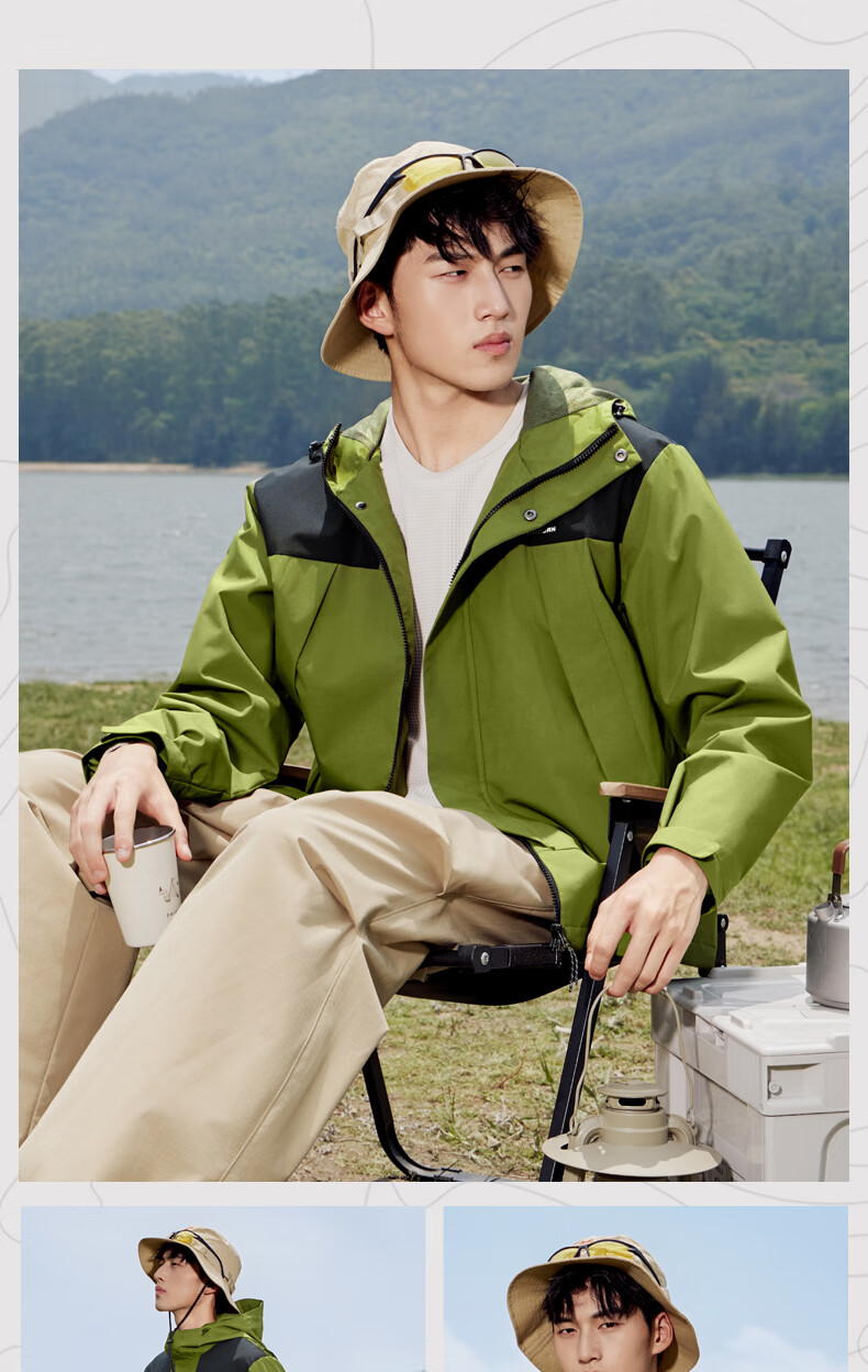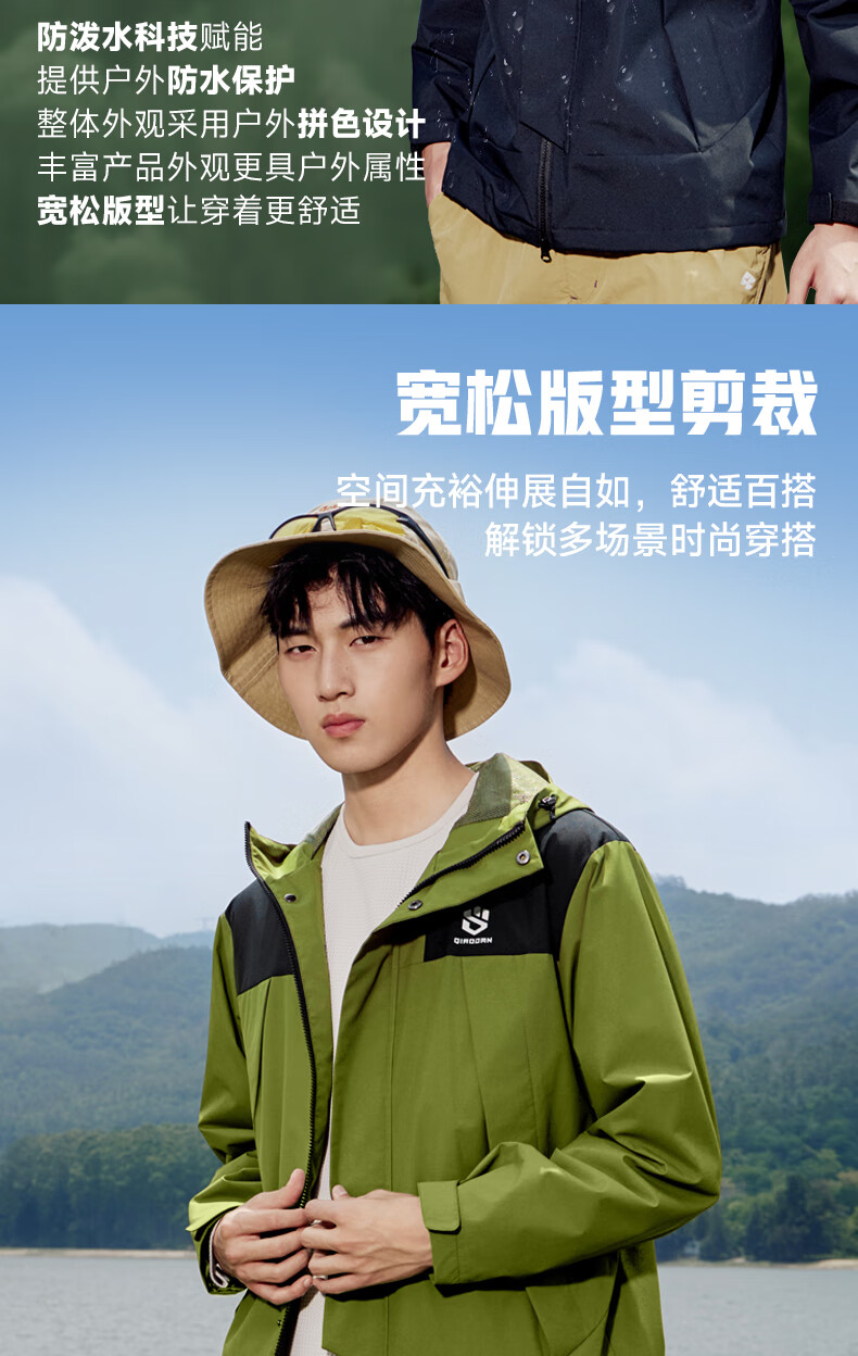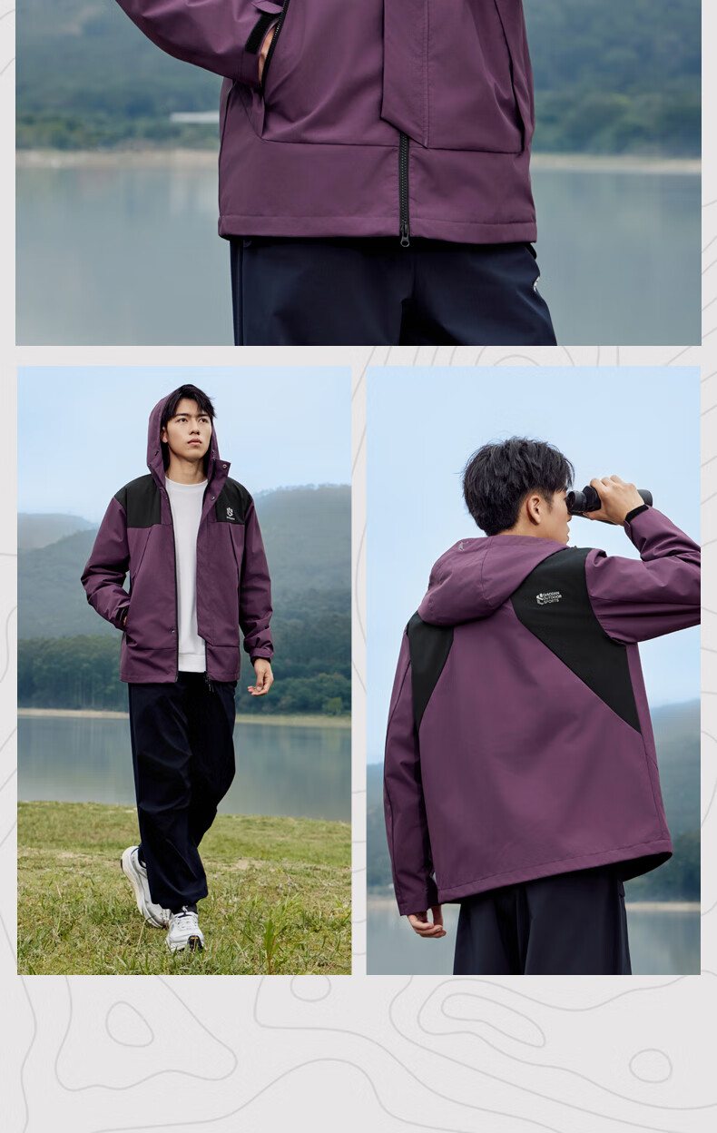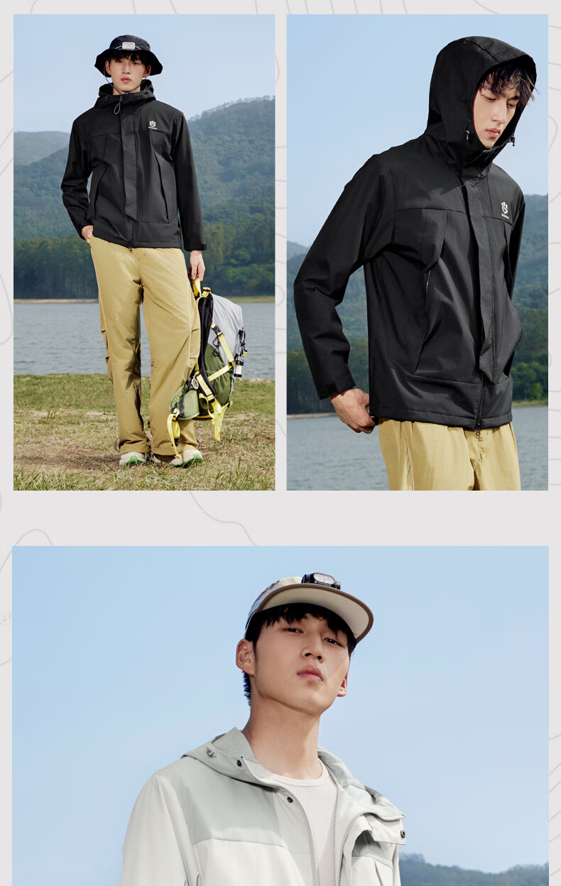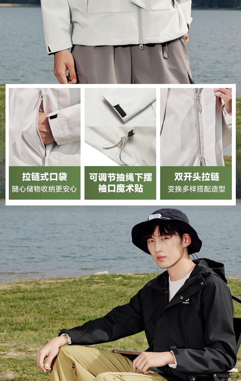 乔丹山神外套男风衣秋冬季防风防泼水户外运动连帽长袖上衣夹克 黑色 5XL
