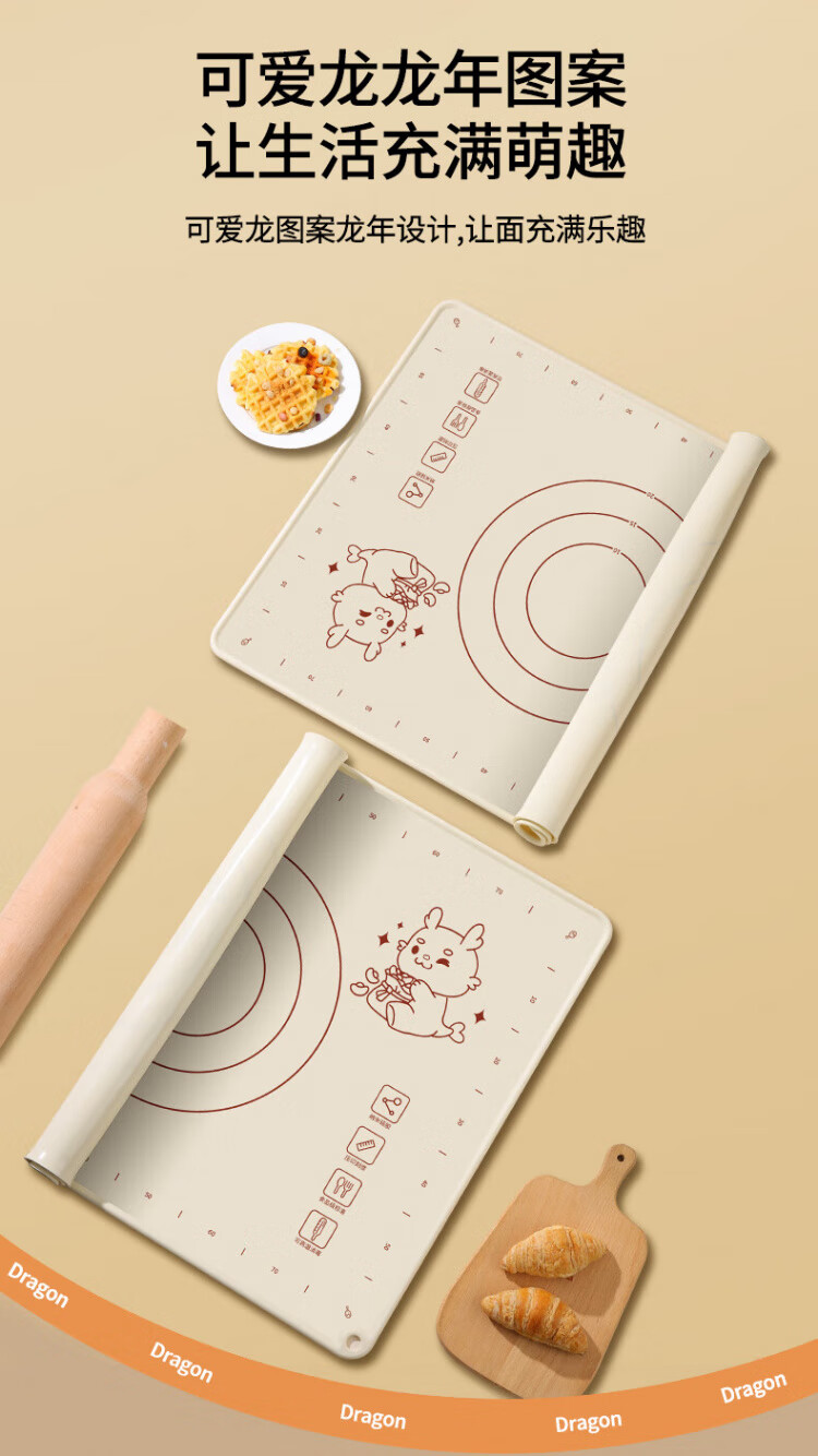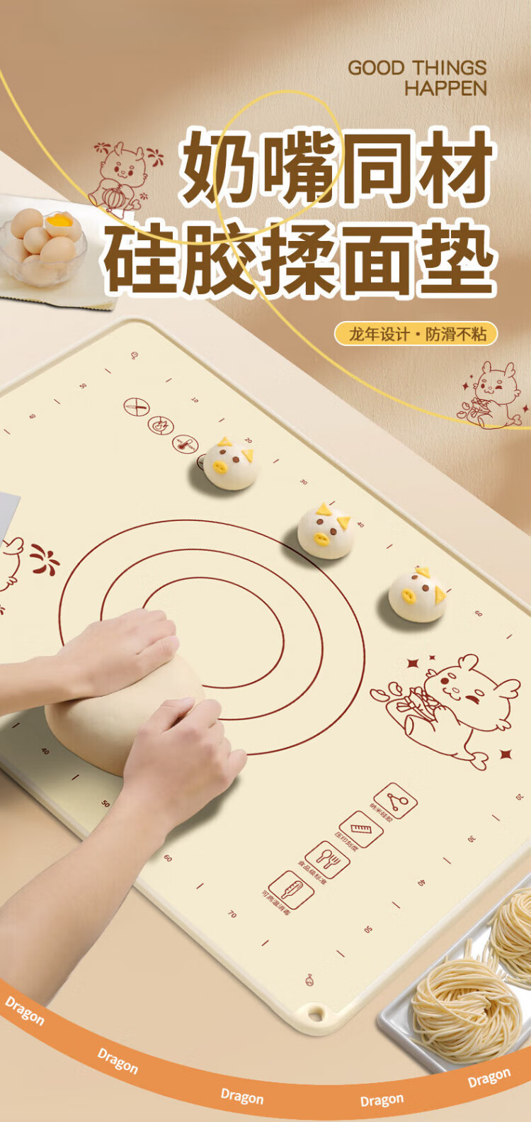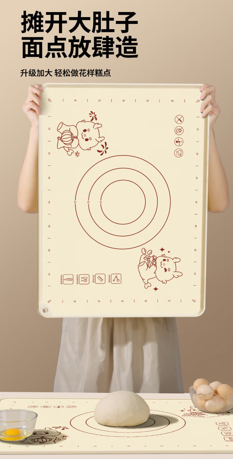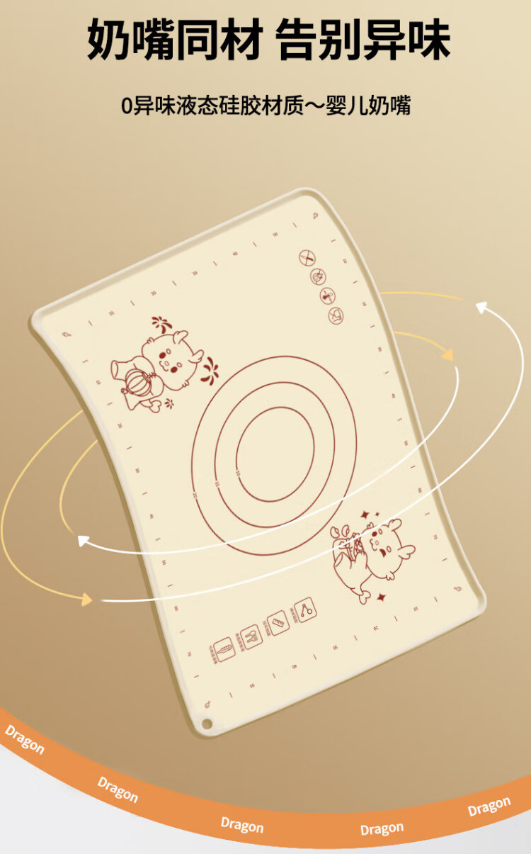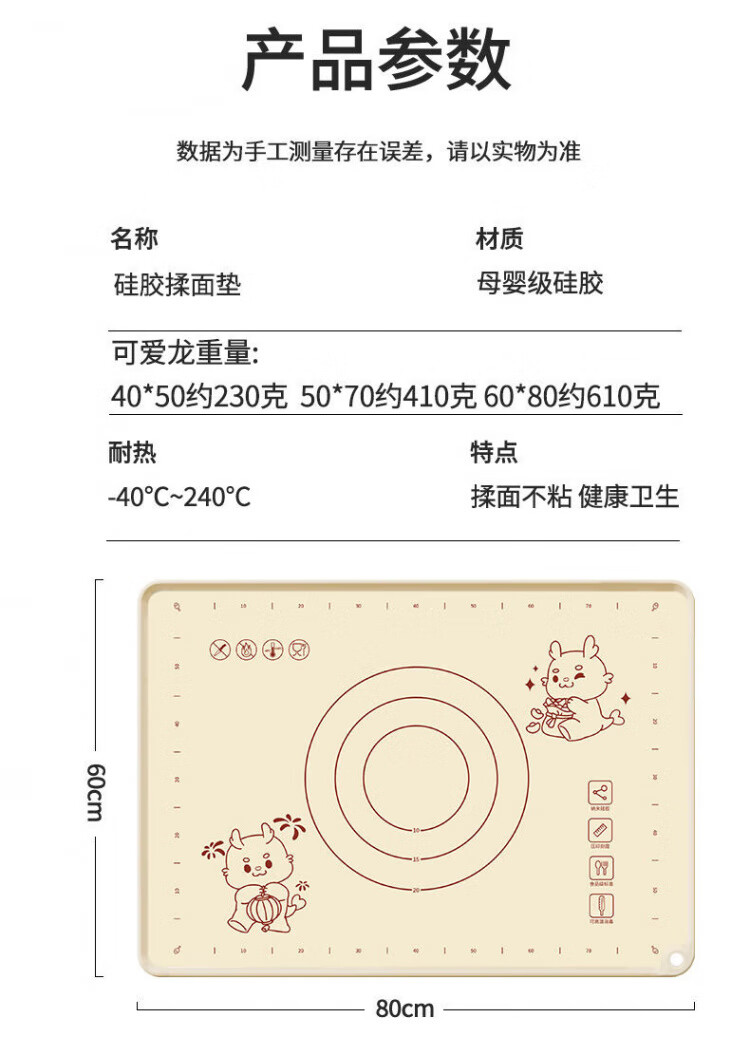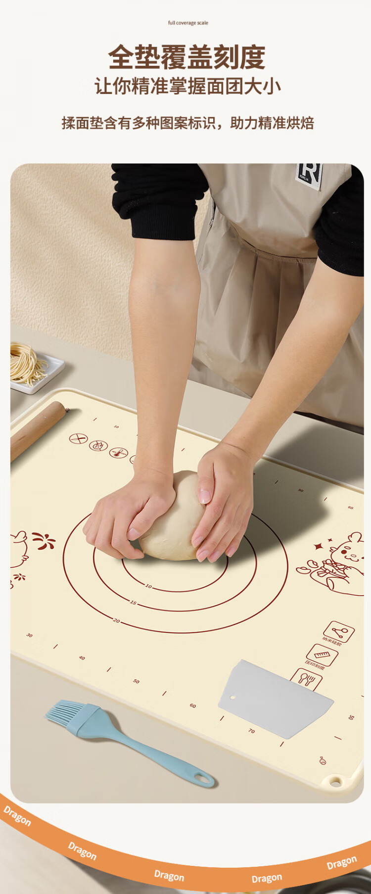 WCZ德国硅胶垫揉面垫食品母婴级面板硅胶加厚面垫案板垫烘焙防滑家用 80*60【萌龙款】加大加厚+工具三件套