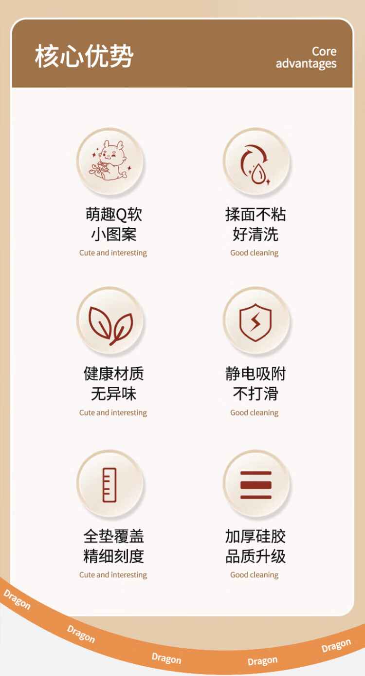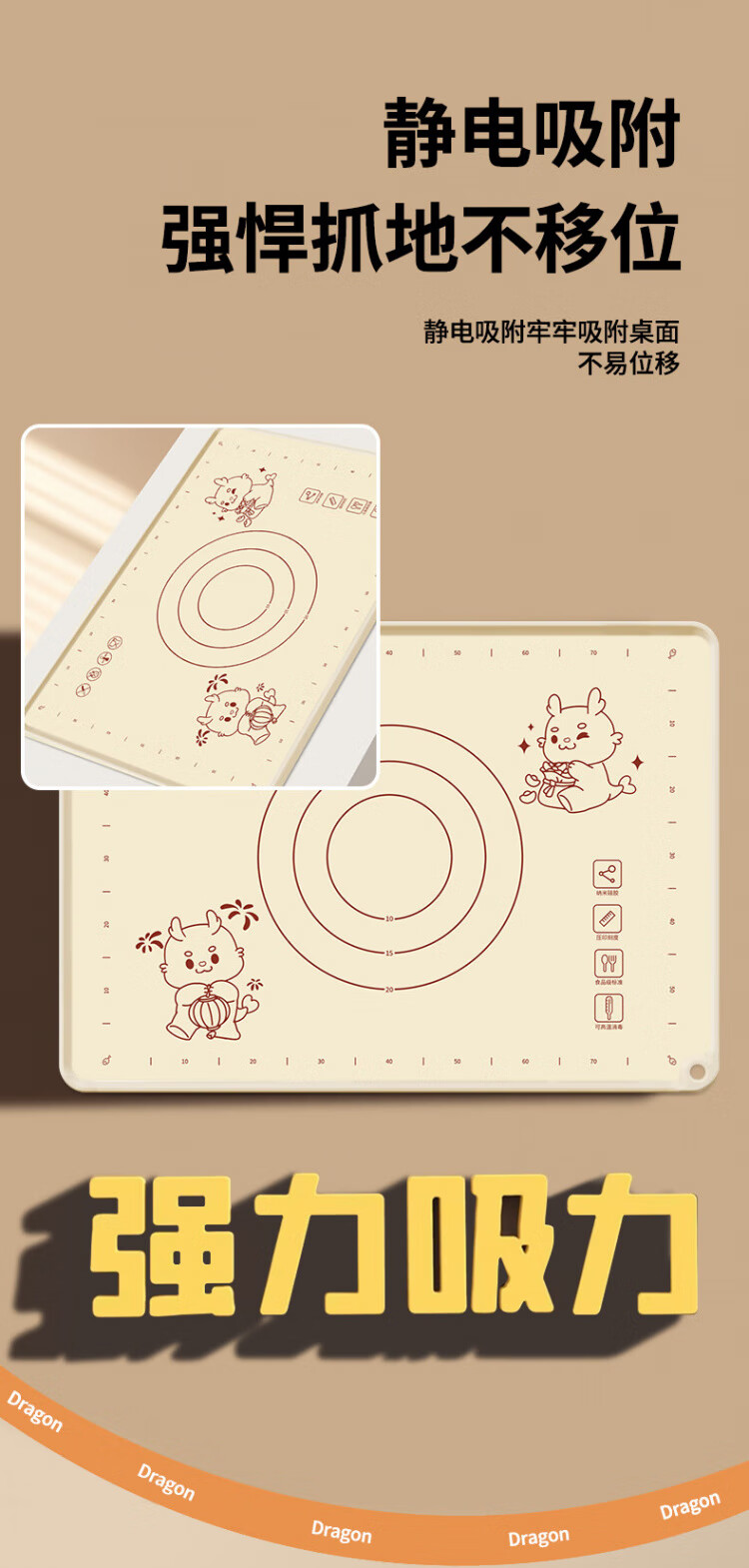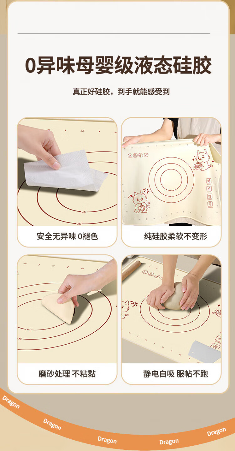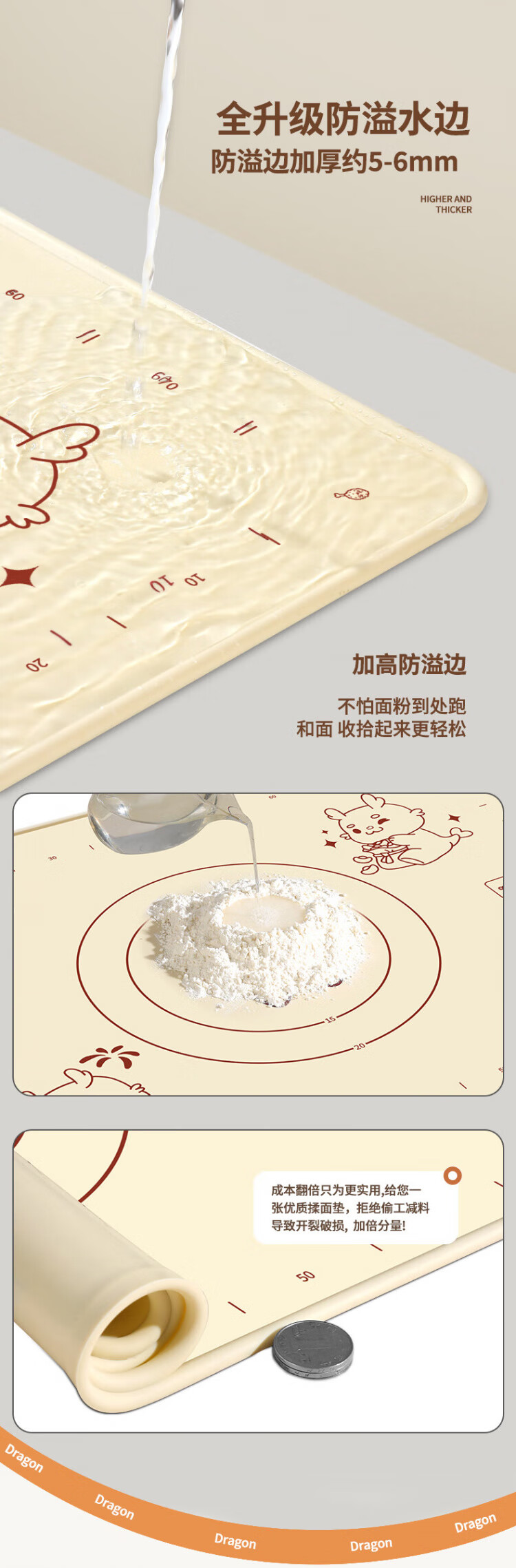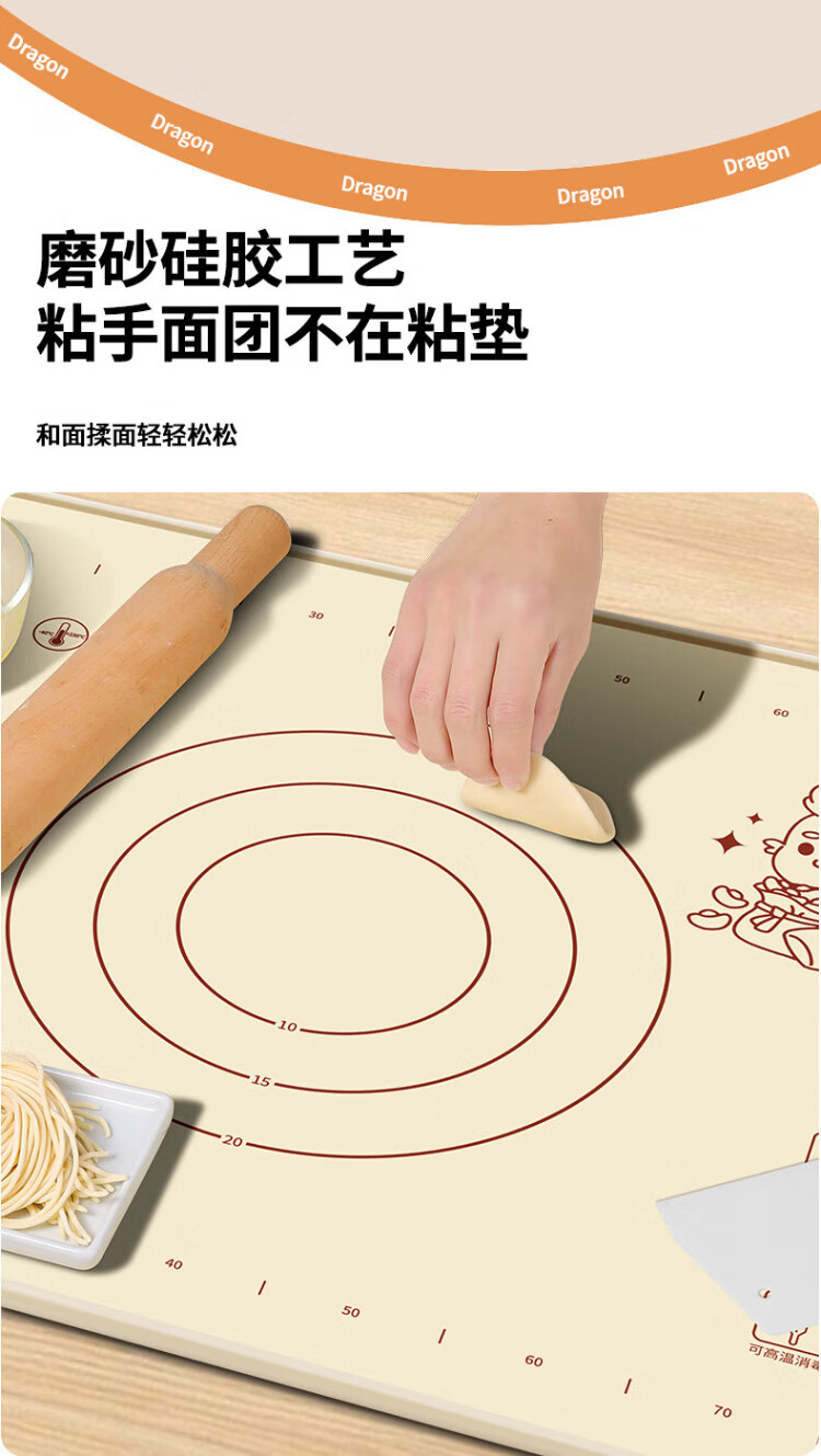 WCZ德国硅胶垫揉面垫食品母婴级面板硅胶加厚面垫案板垫烘焙防滑家用 80*60【萌龙款】加大加厚+工具三件套