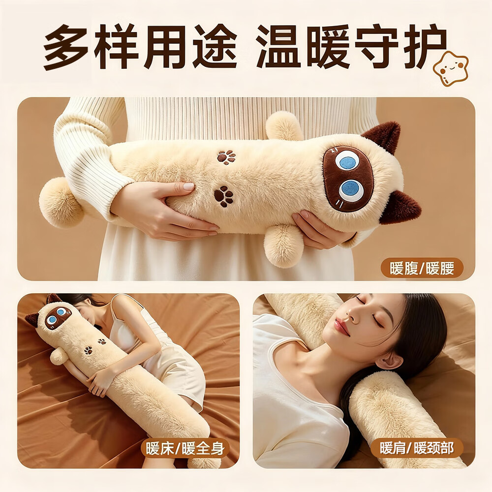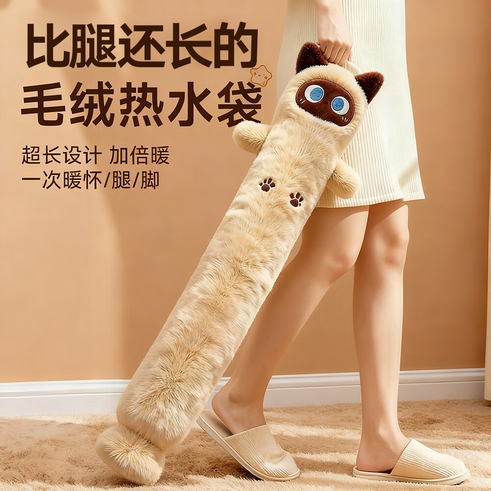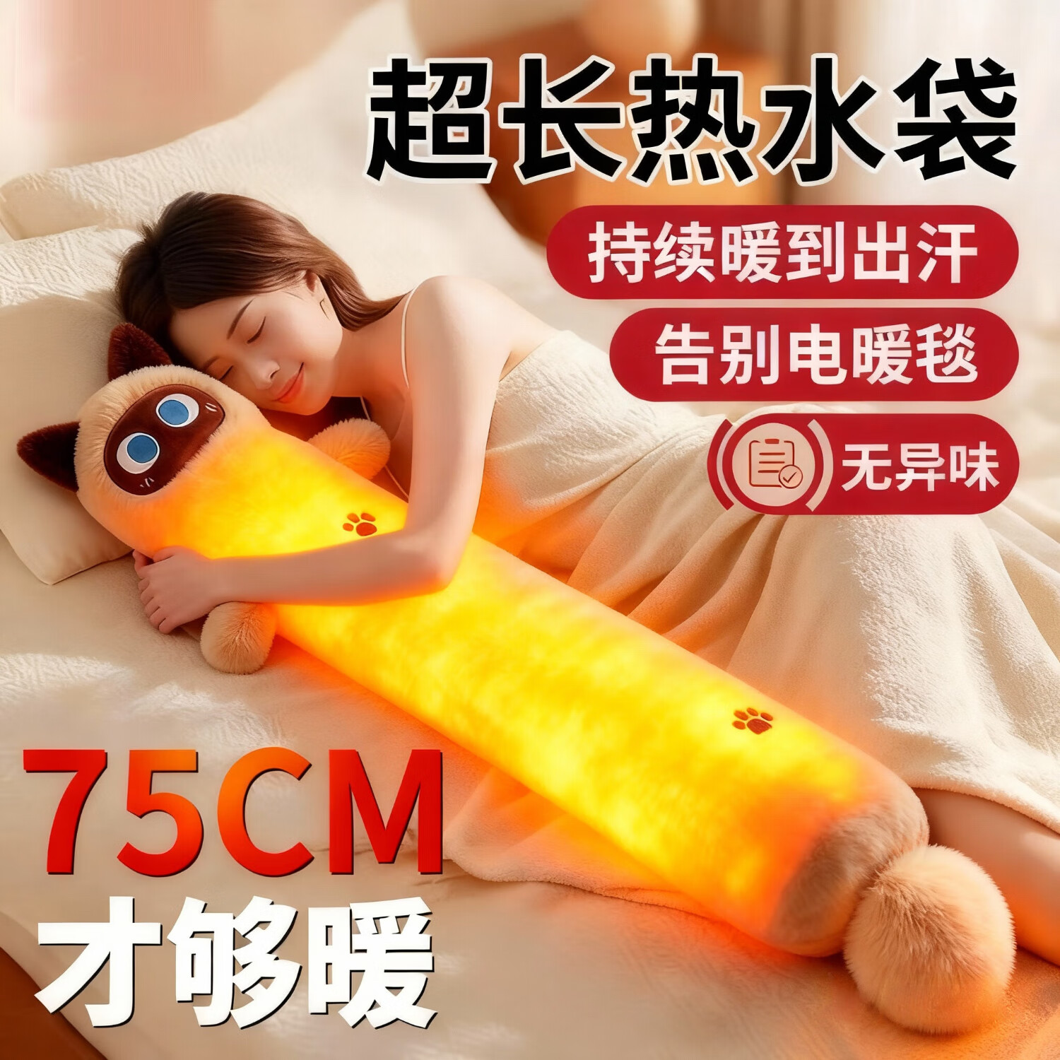 箱居长条热水袋被窝专用加长注水暖水袋冬季暖宝宝学生宿舍暖床神器 橘猫
