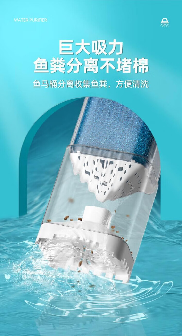 DEATKN德国鱼缸过滤制氧一体机超静音客厅循环水泵净水器三合一鱼马桶 冲量拍十送十【发20条】超值超划算