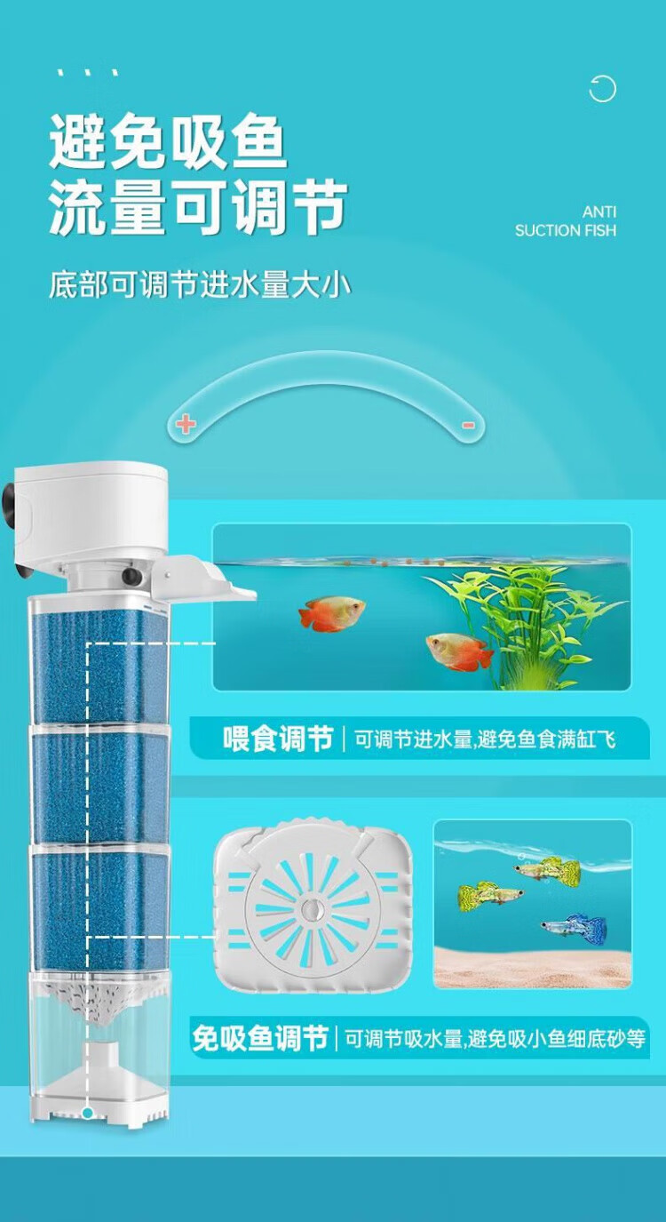 DEATKN德国高端鱼缸过滤制氧一体机小型免换水净水循环水泵三合一超静音 蓝色子母套装【可伸缩】+毛巾