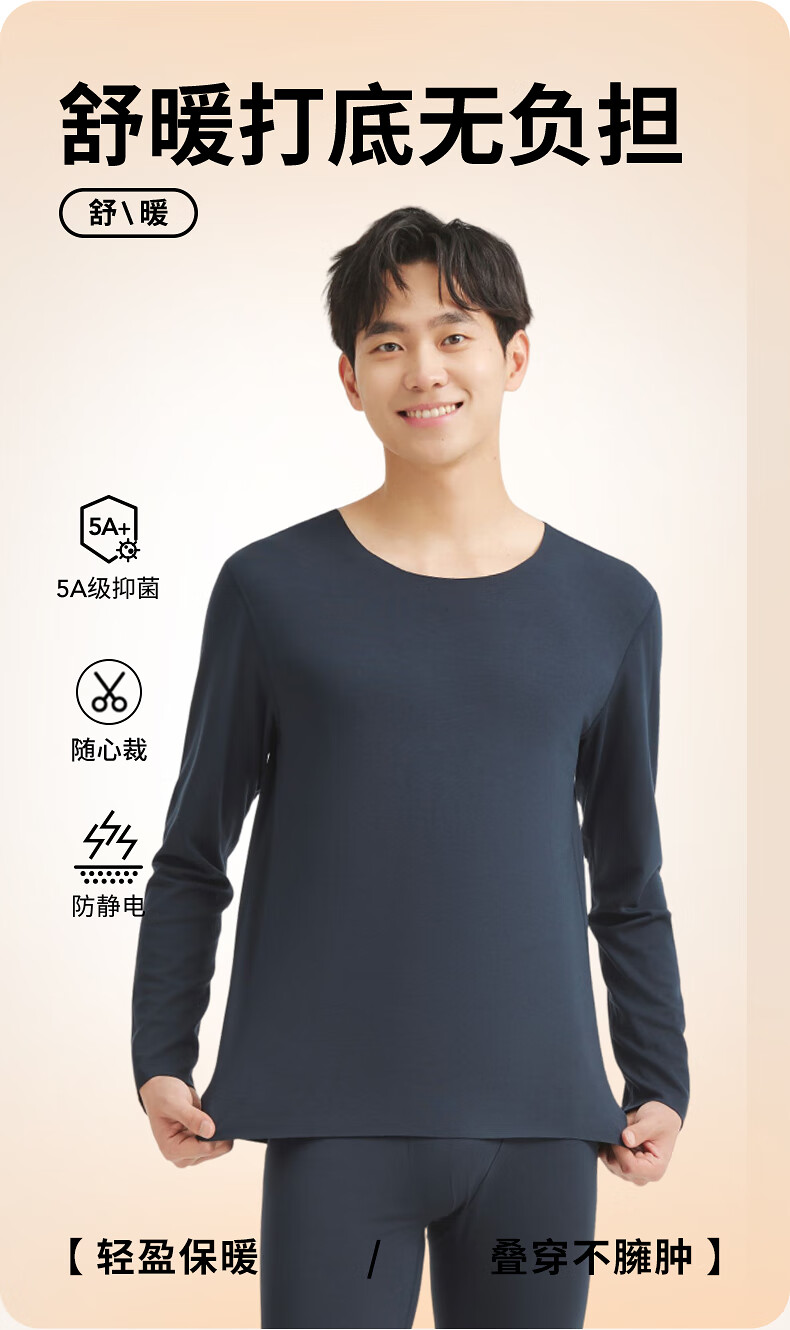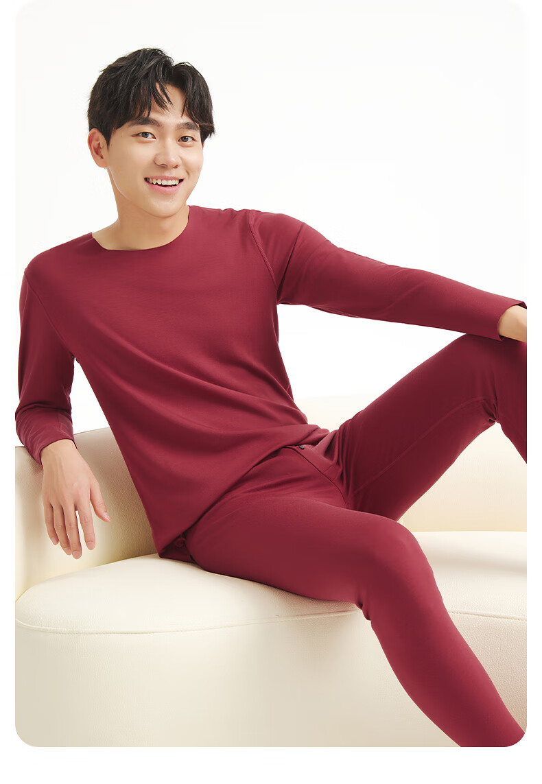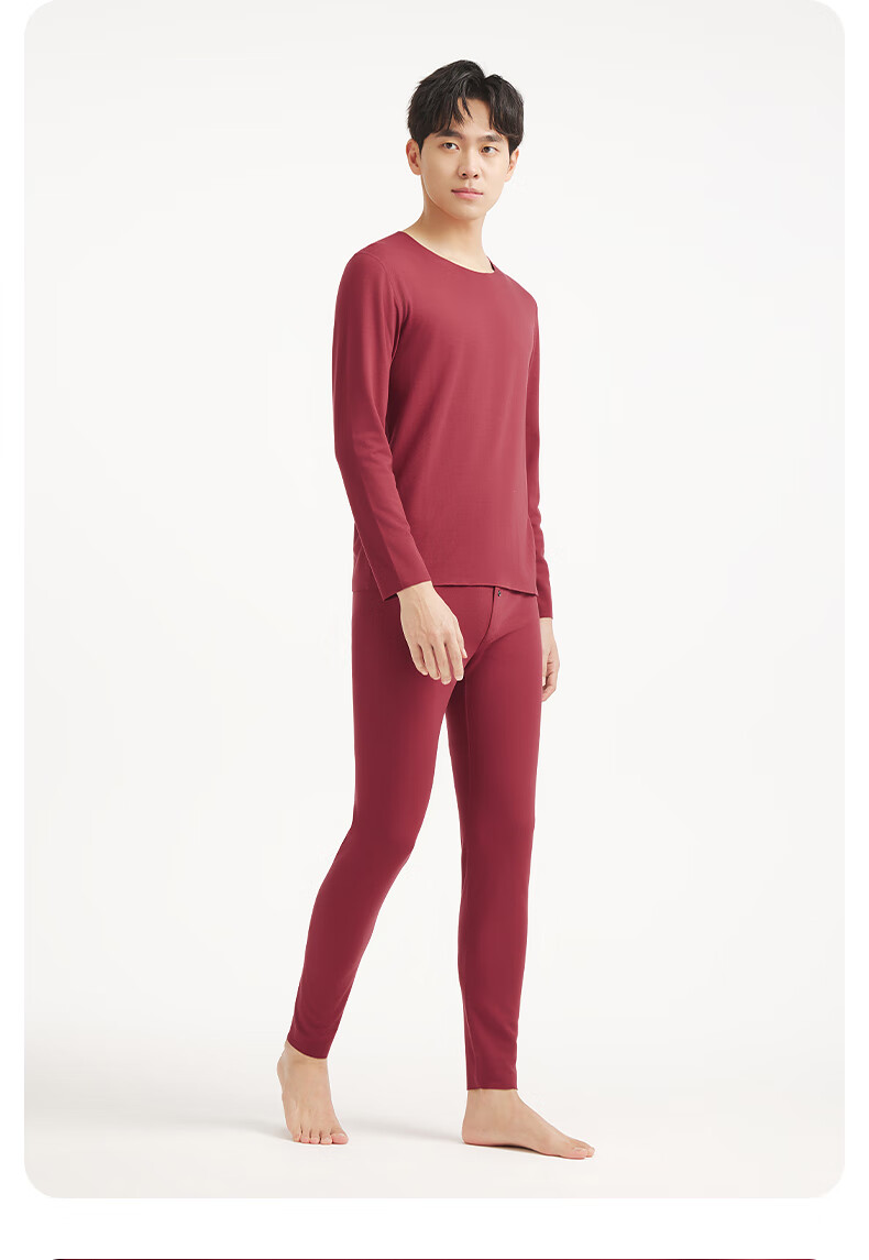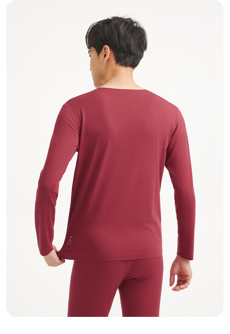 热风(Hotwind)【商场同款】男士秋衣2025年冬季新款舒暖薄绒圆领长t保暖打底衫 18酒红 L