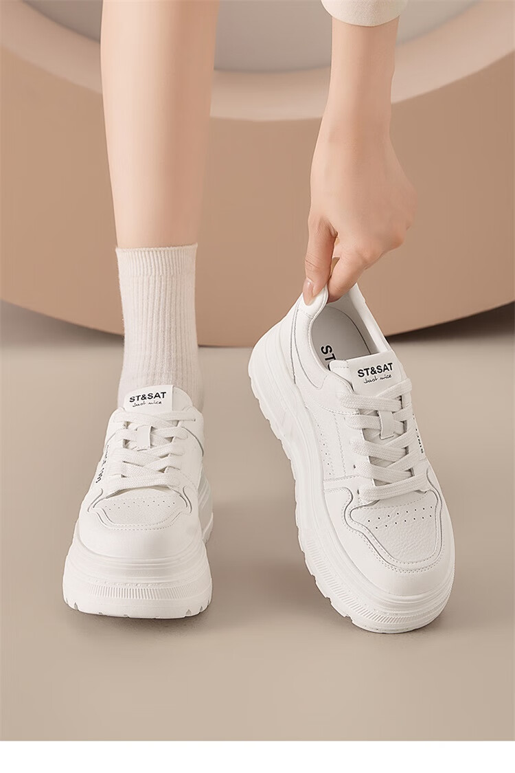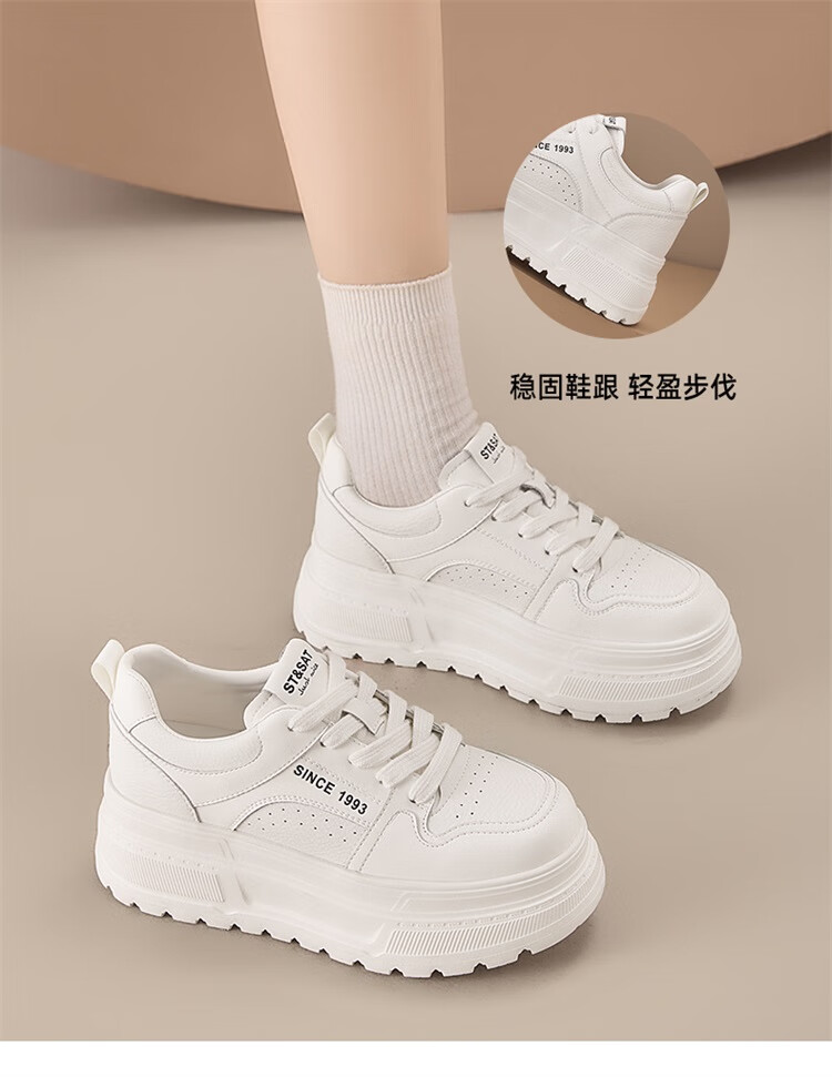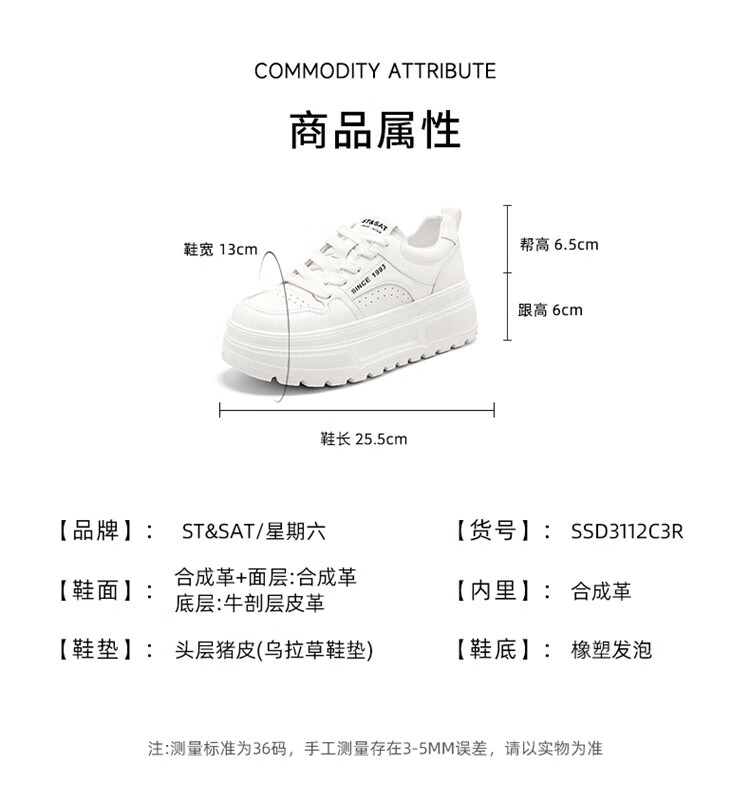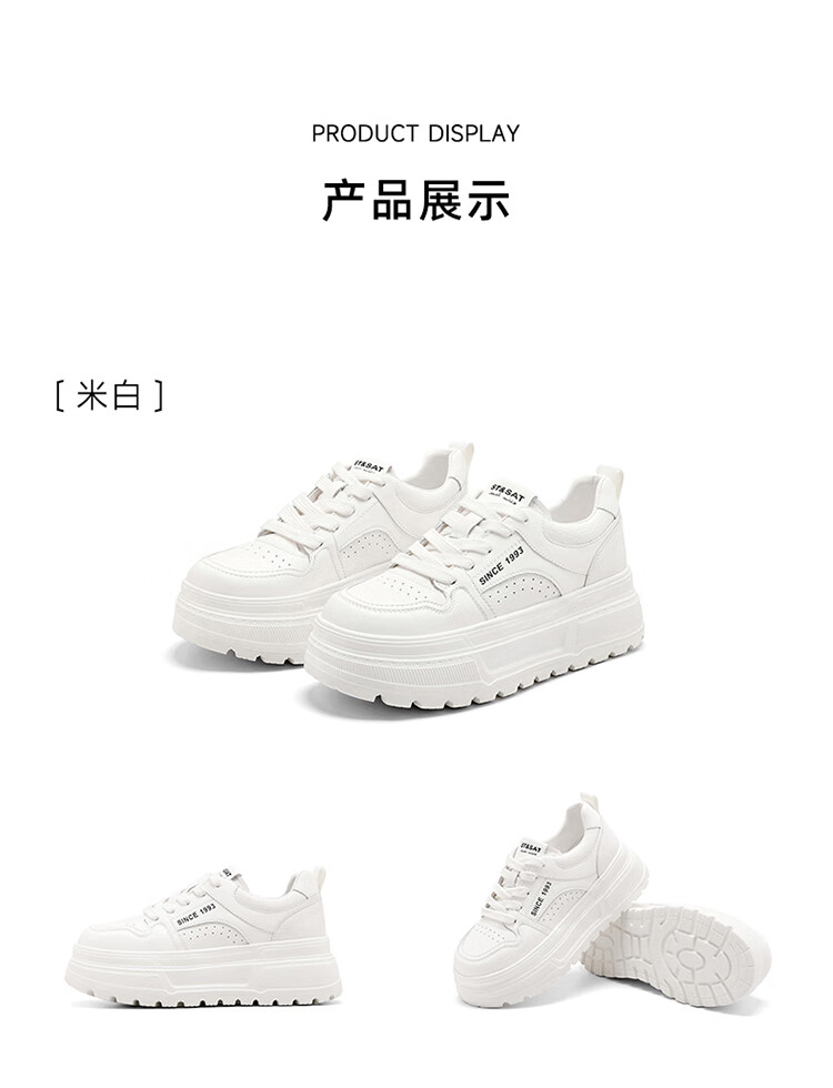 星期六时尚圆头百搭板鞋2025秋季新款学院风小白鞋MTSSD3112C3R 米白 35