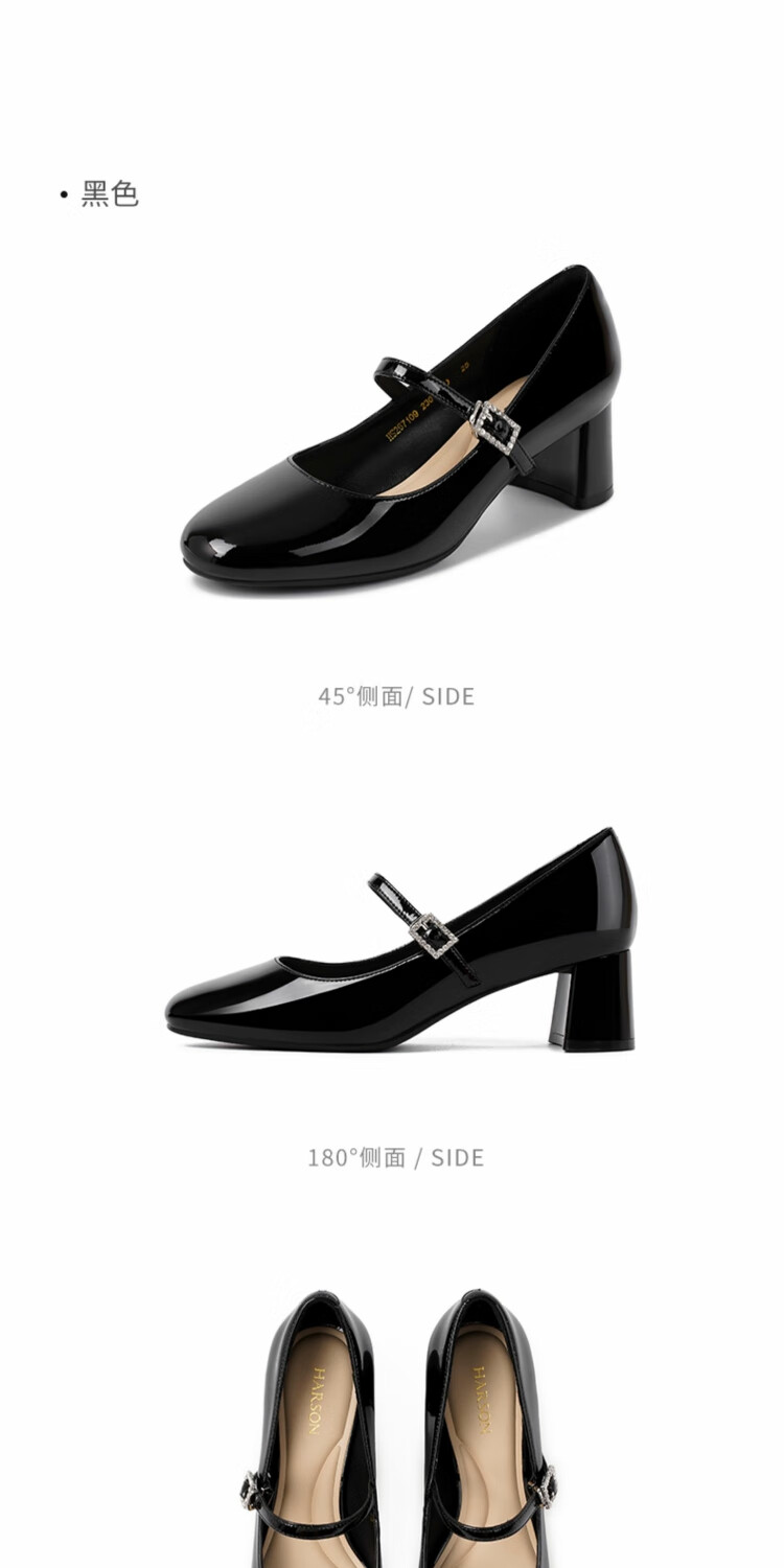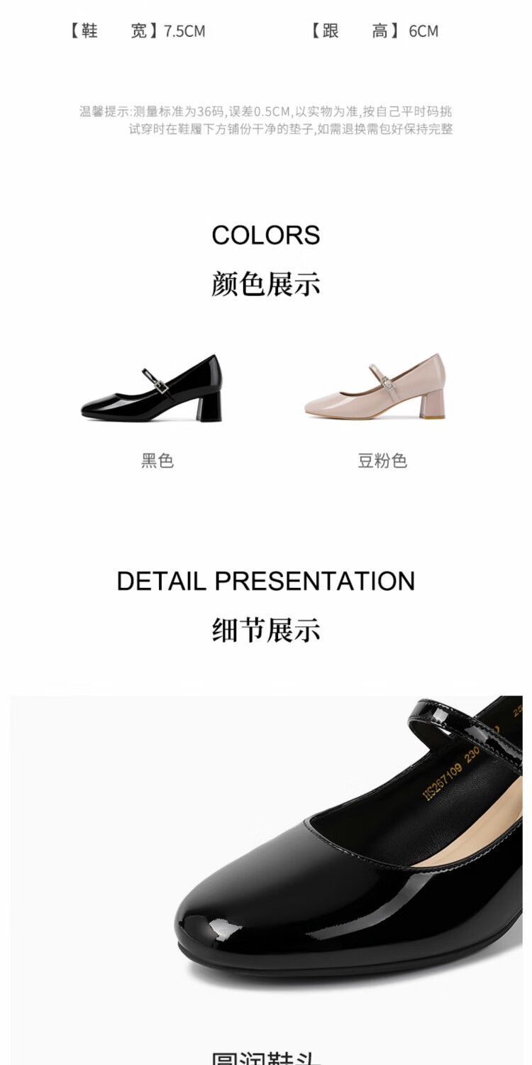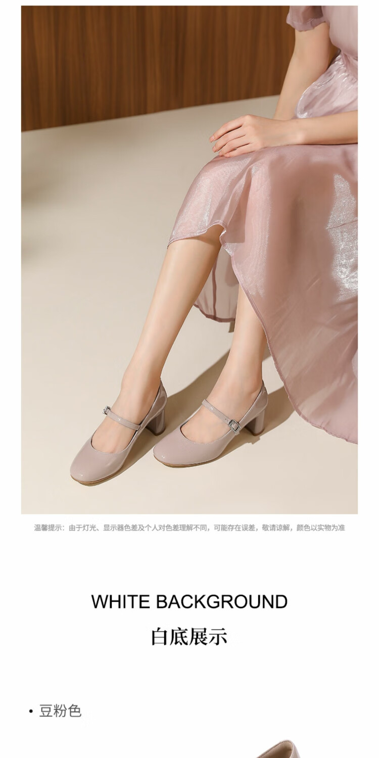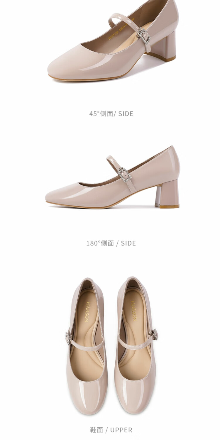 哈森甜美百搭玛丽珍女2025新款粗跟气质通勤浅口单鞋HS267109 豆粉色 牛皮革(涂覆层除外) 34