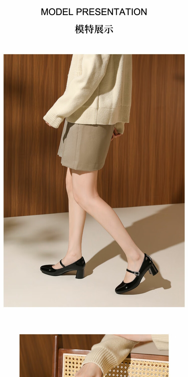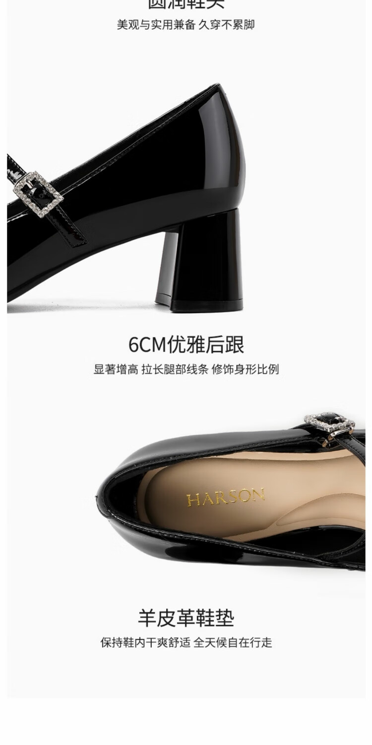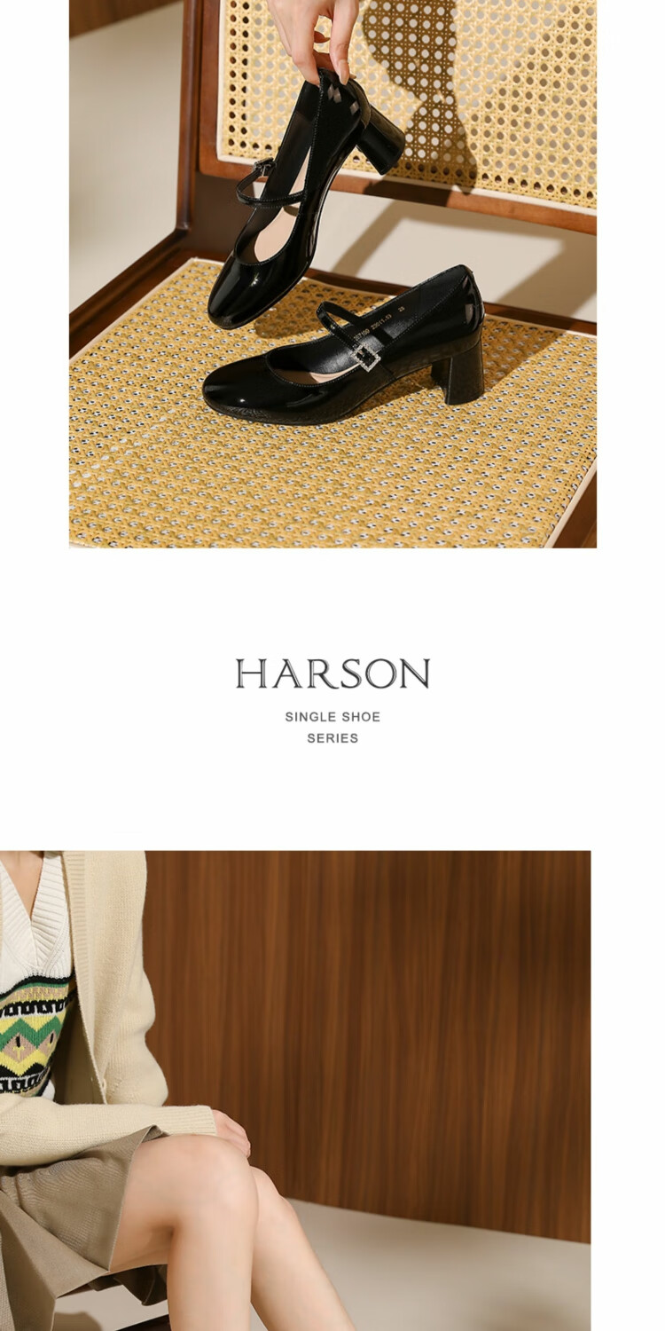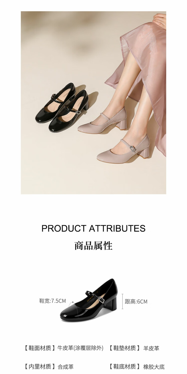 哈森甜美百搭玛丽珍女2025新款粗跟气质通勤浅口单鞋HS267109 豆粉色 牛皮革(涂覆层除外) 34