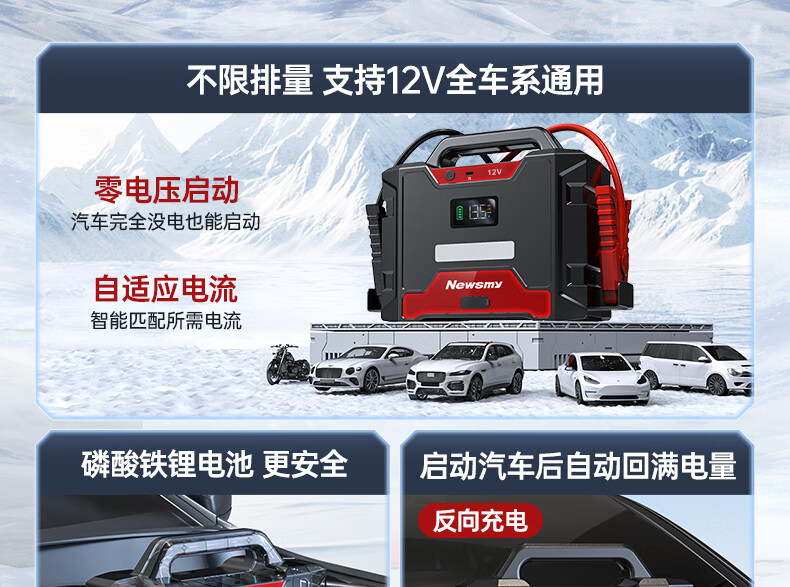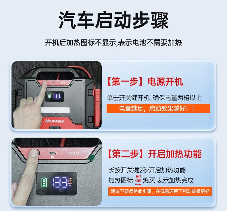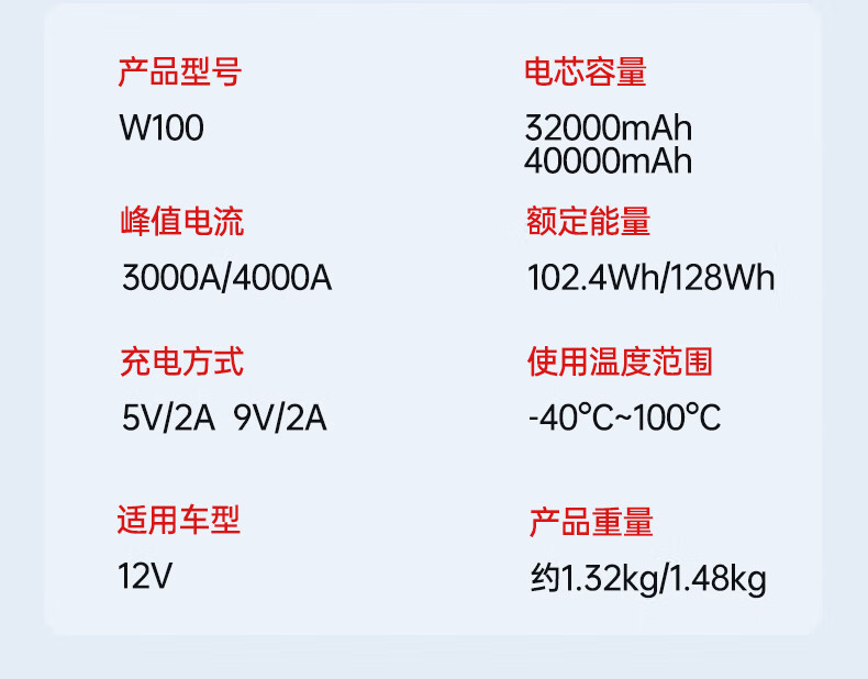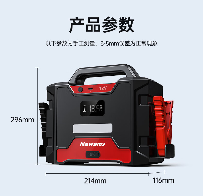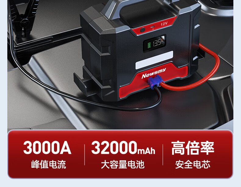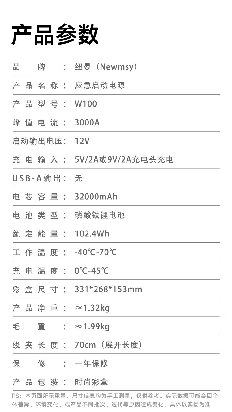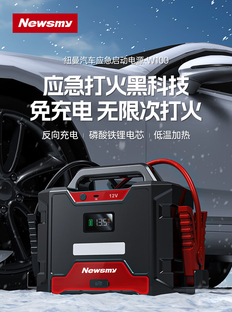 纽曼(Newsmy)【3C认证】W100汽车应急启动电源搭电宝车载电瓶强启柴油货车打火专业汽修厂救援12v强起32000毫安