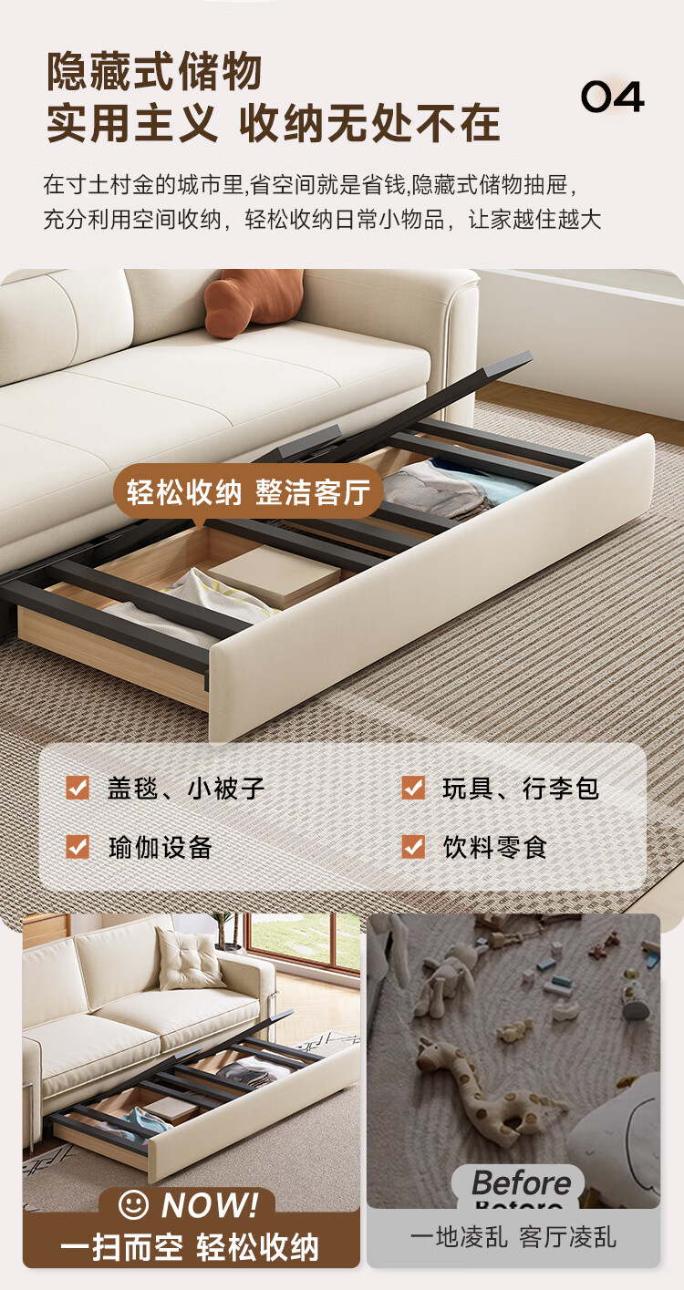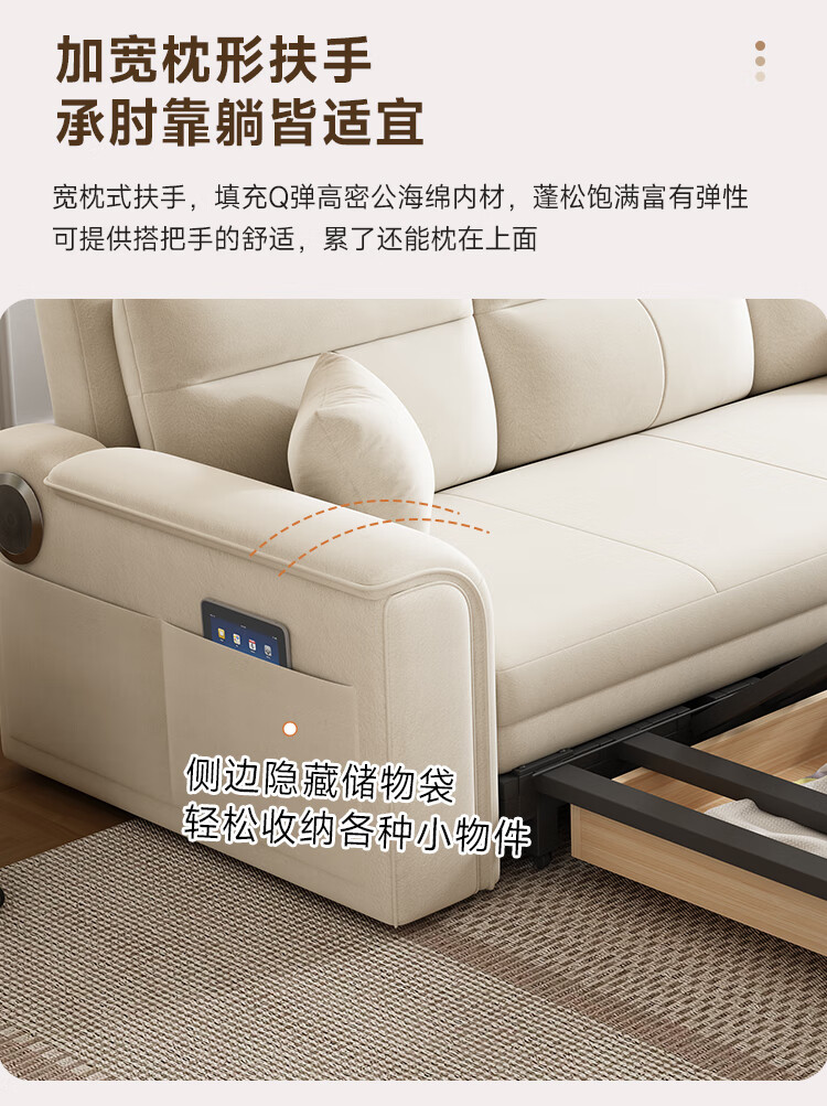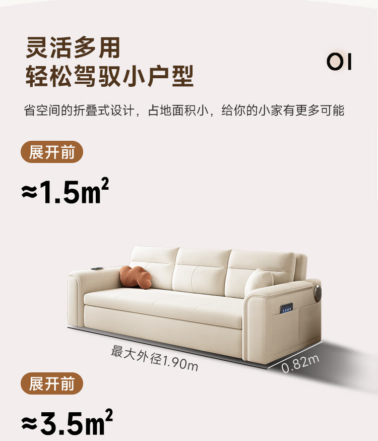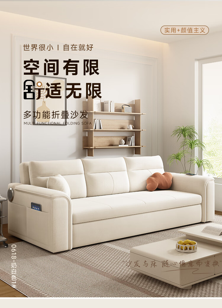 哈森诗丹多功能可折叠沙发床两用一体现代简约小户型客厅广东佛山布艺沙发 外径:1.44m(无储物)加厚灯芯绒 高弹海绵款(软硬适中)