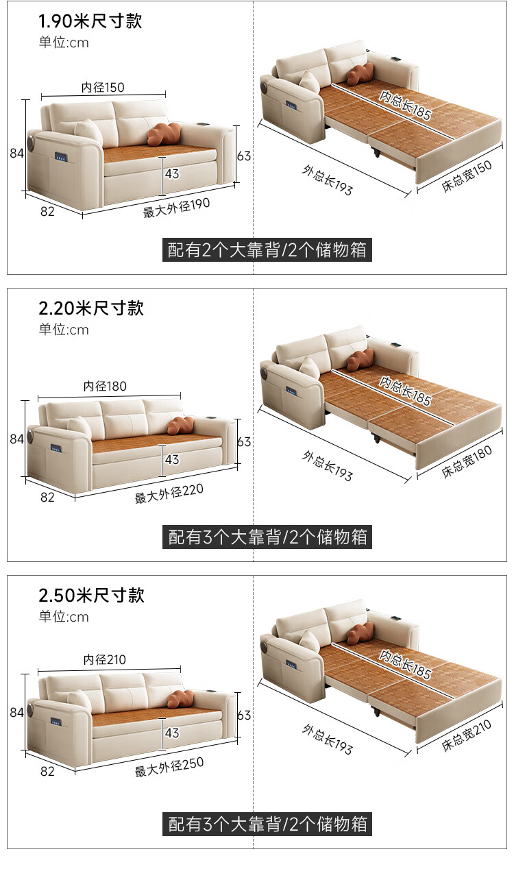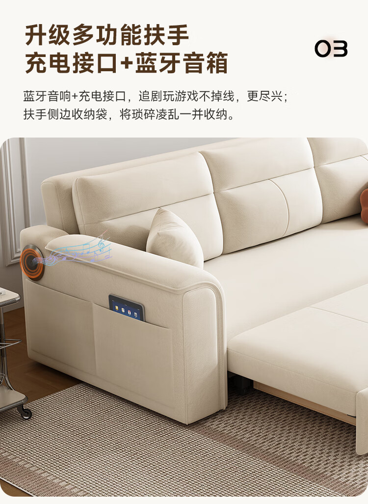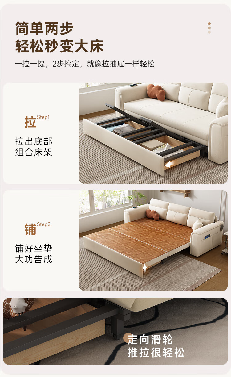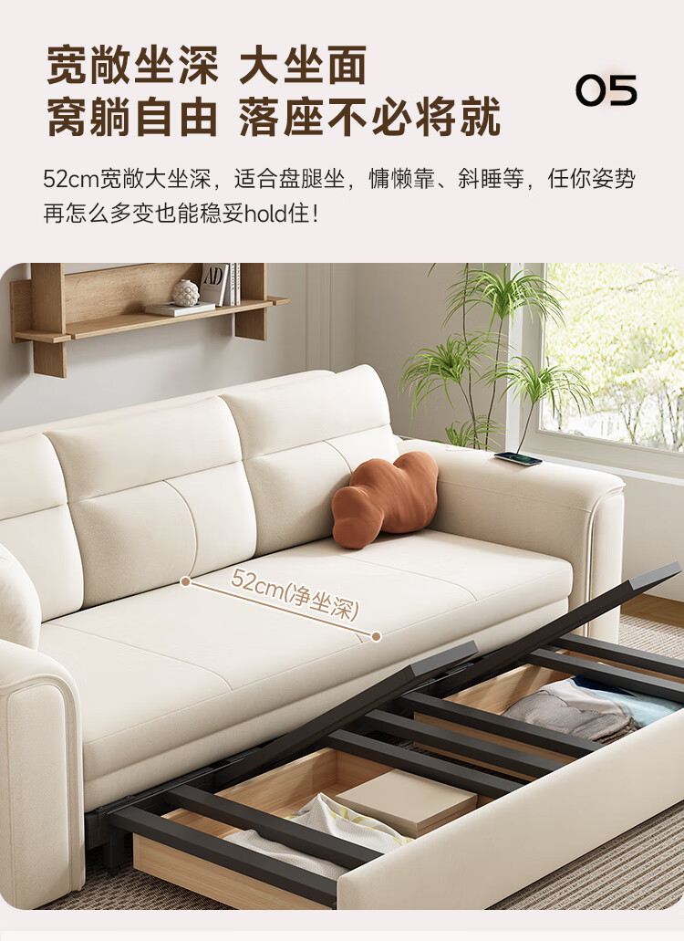 哈森诗丹多功能可折叠沙发床两用一体现代简约小户型客厅广东佛山布艺沙发 外径:1.44m(无储物)加厚灯芯绒 高弹海绵款(软硬适中)