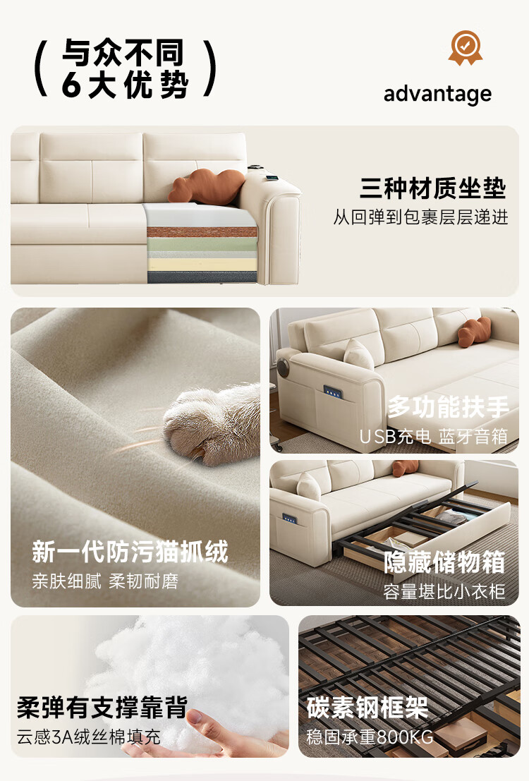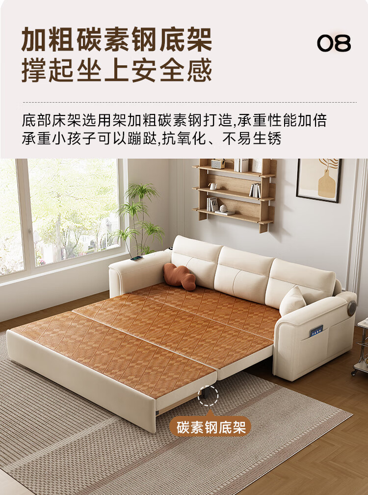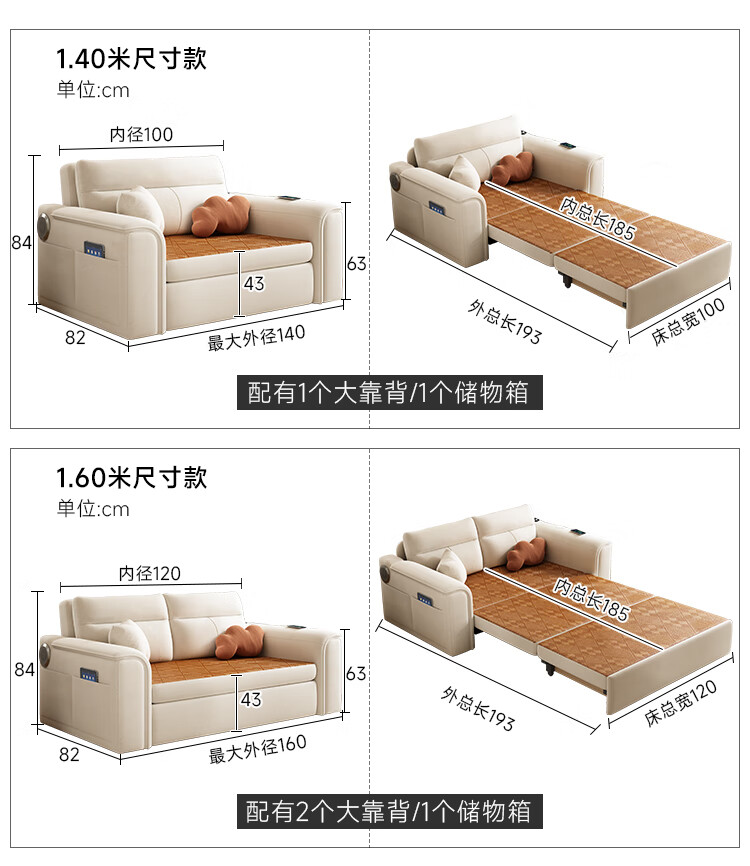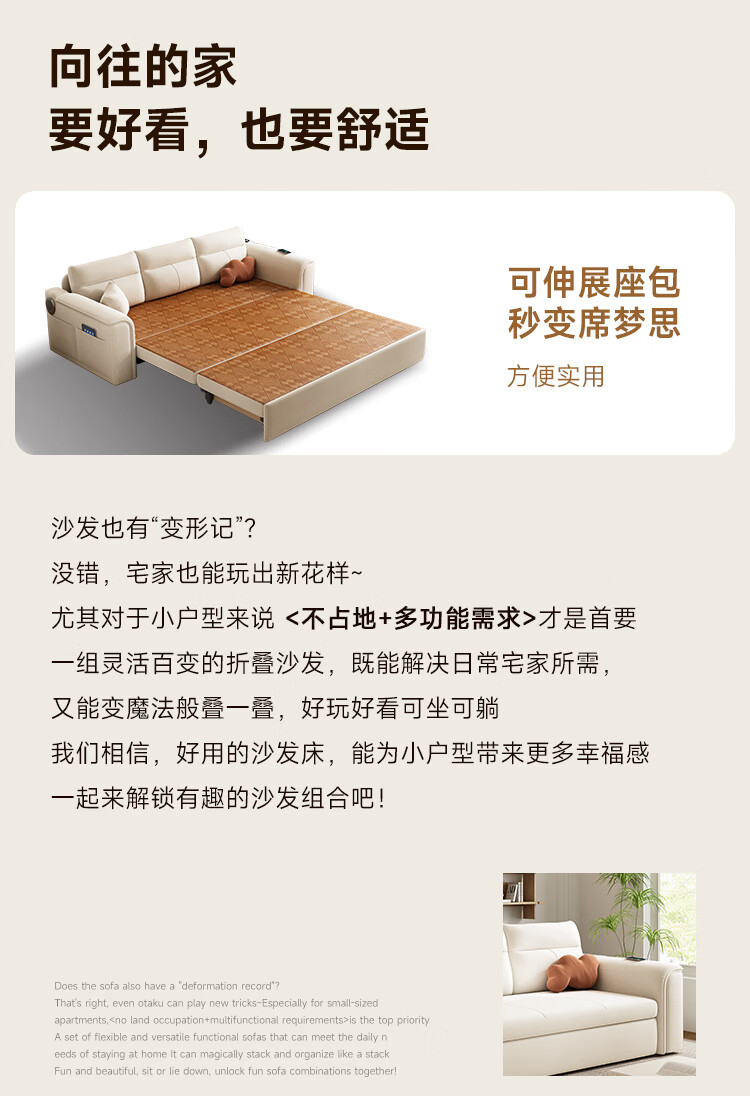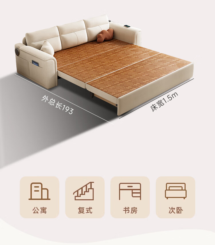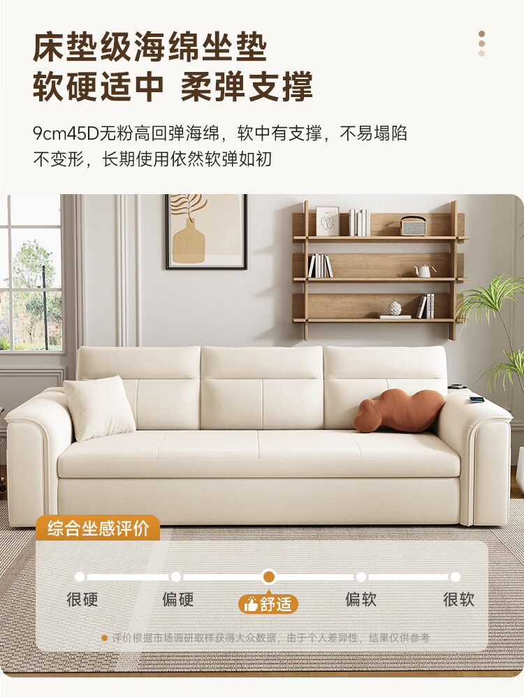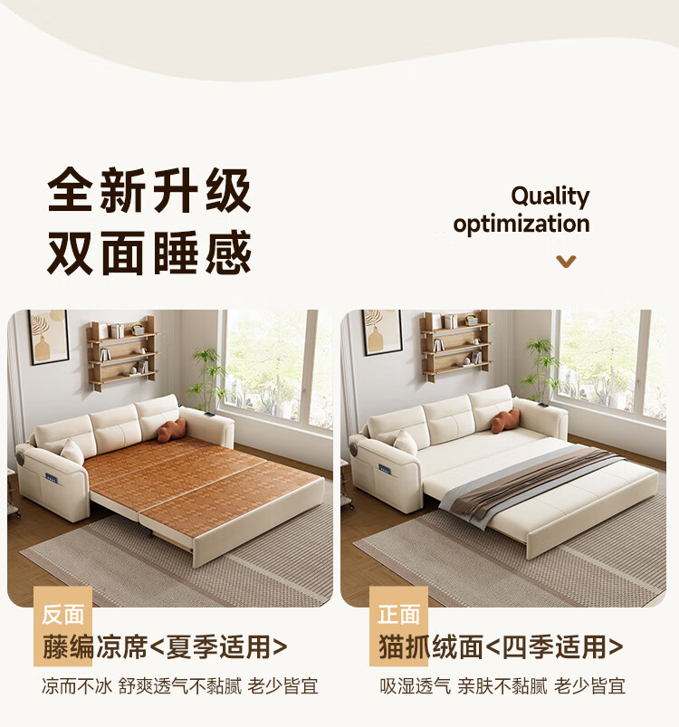 哈森诗丹可折叠带凉席两面用沙发床坐卧一体小户型客厅高端多功能布艺沙发 外径:1.4m(无储物)S+级猫抓绒 高弹海绵款(软硬适中)