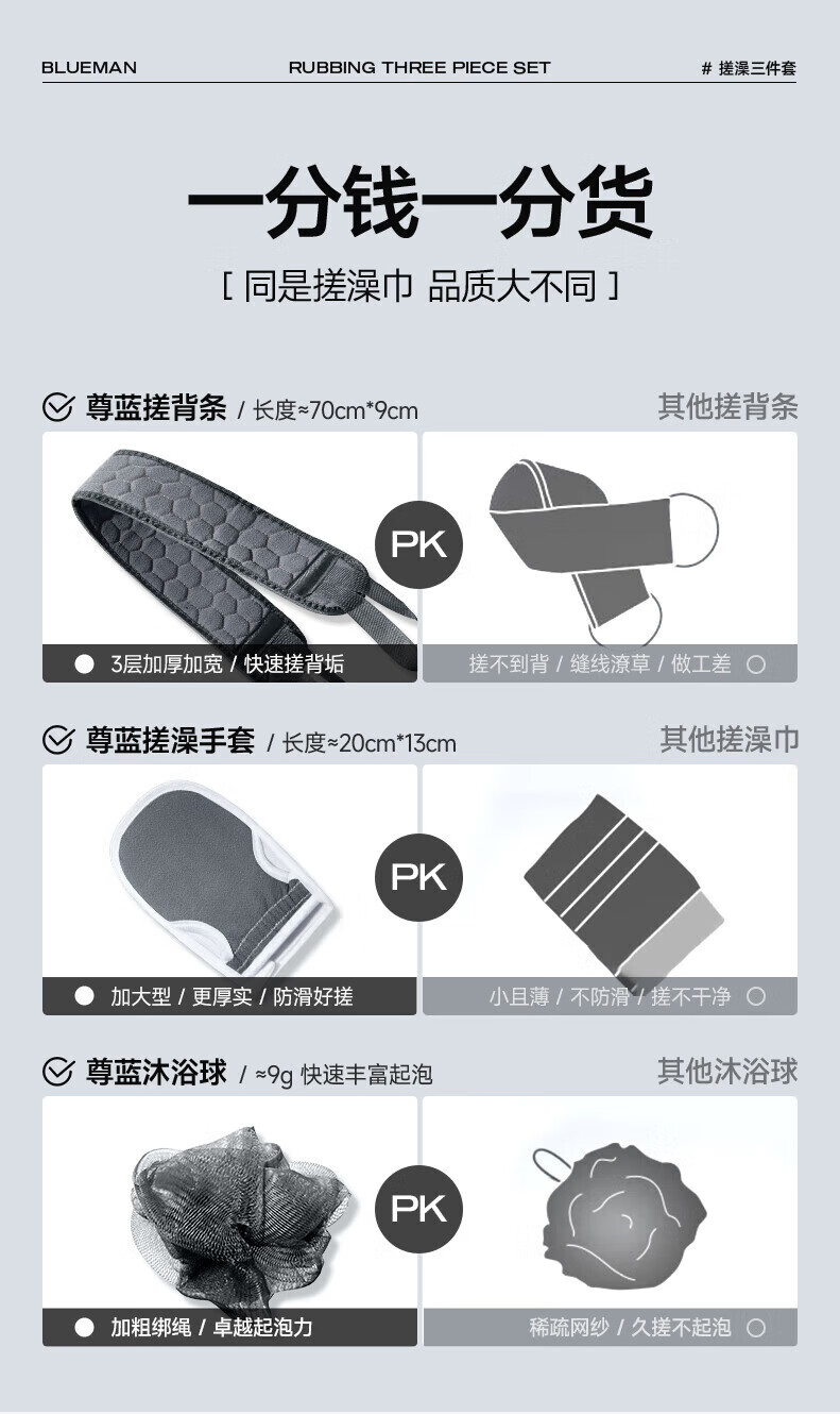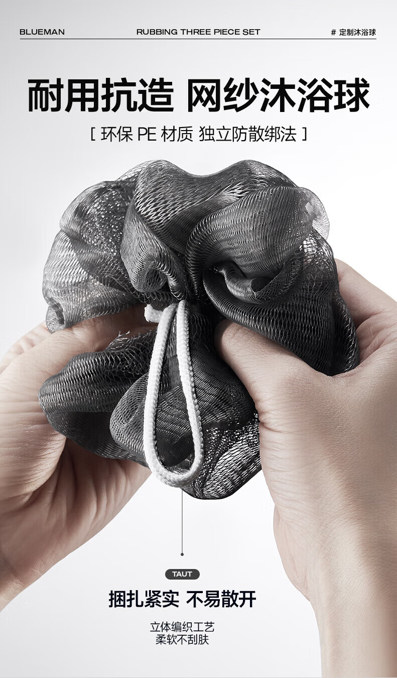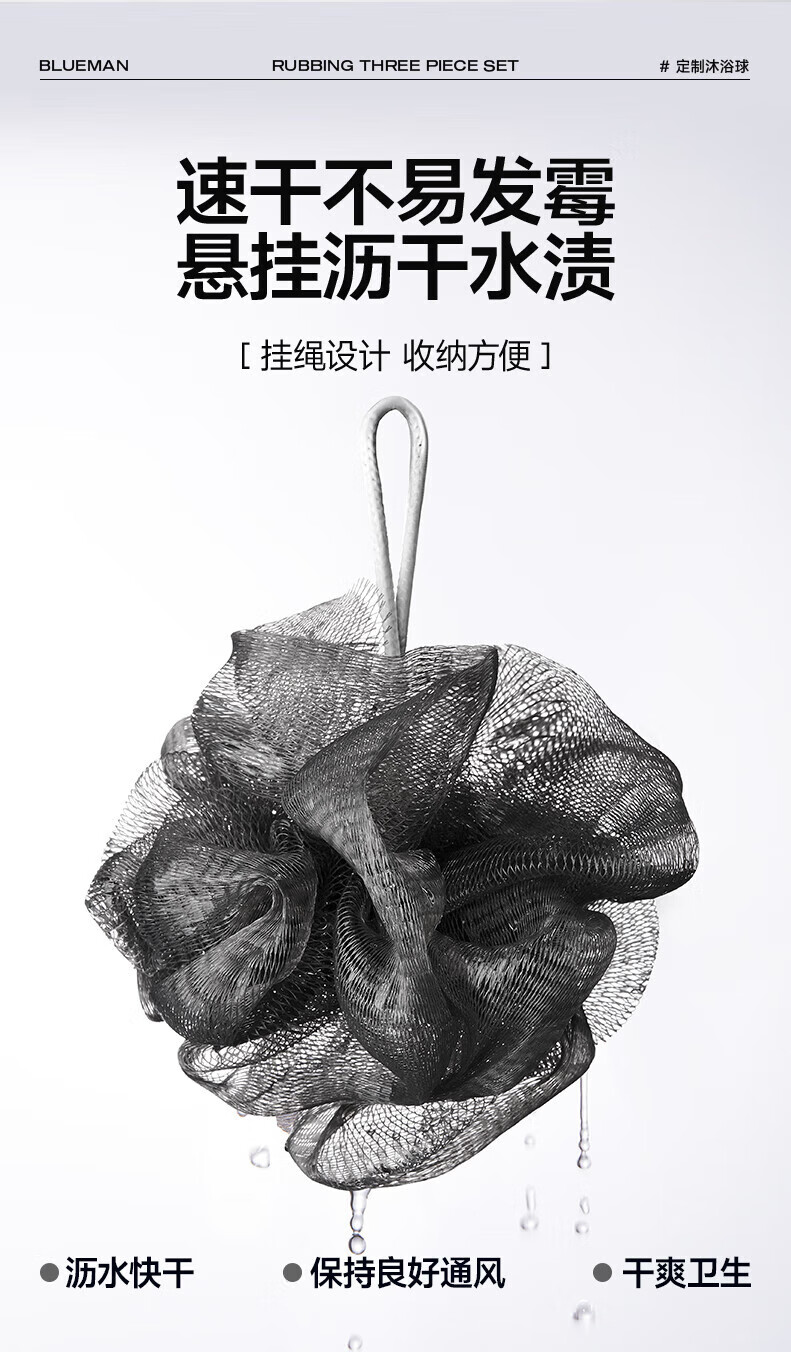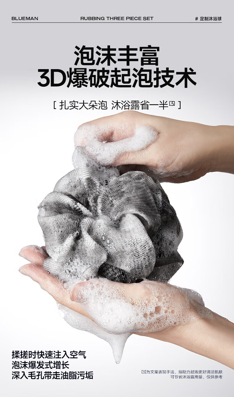 尊蓝沐浴球浴花搓澡男女洗澡起泡网洗浴球澡花 洗浴搓澡三件套