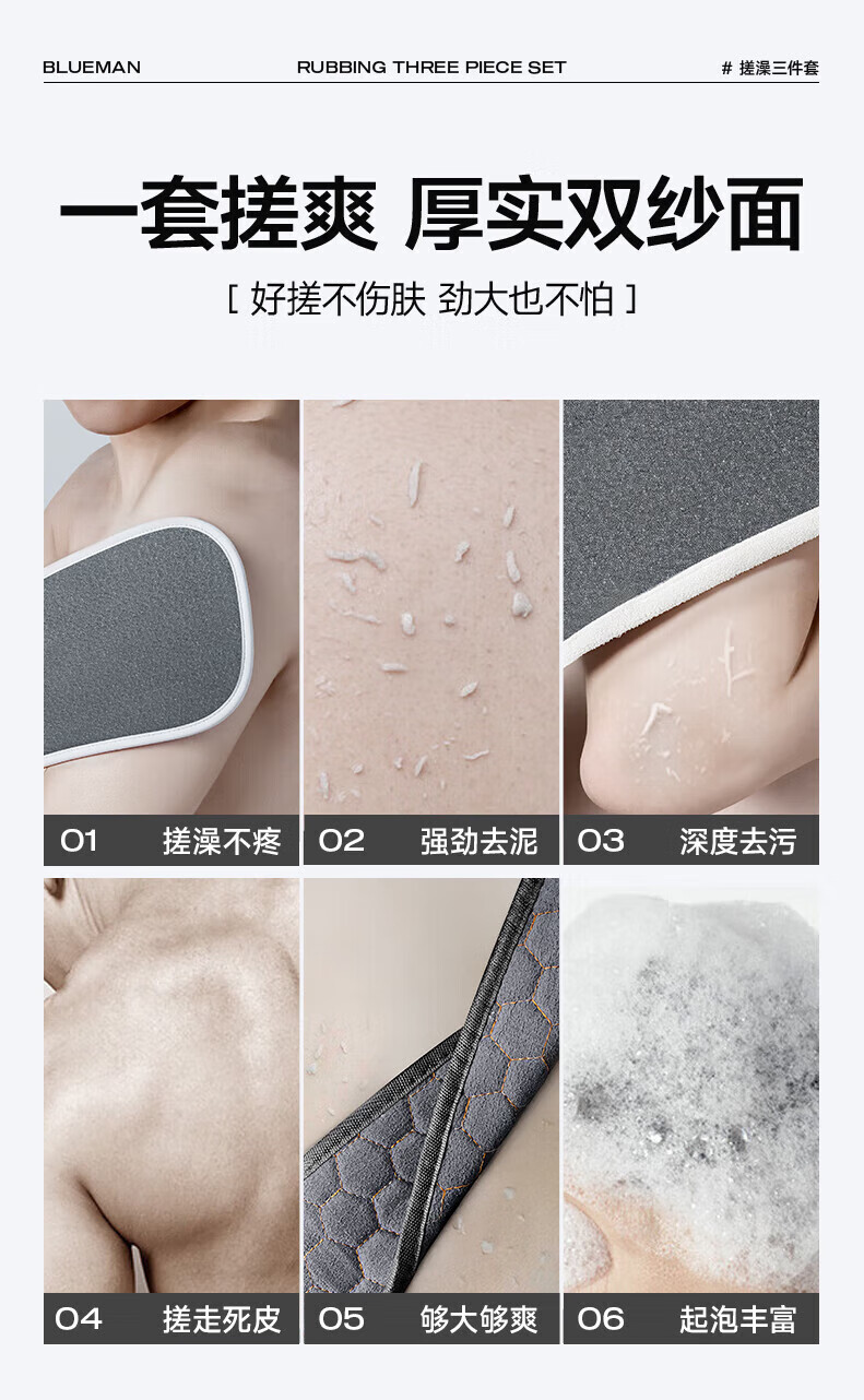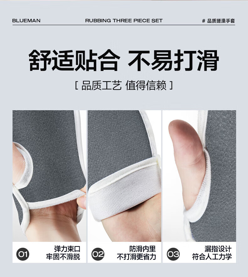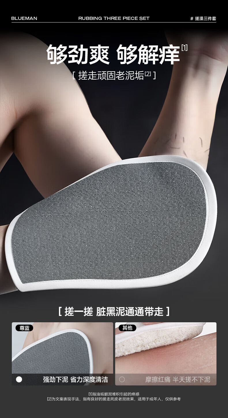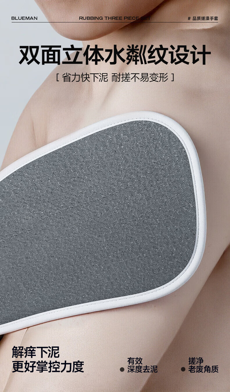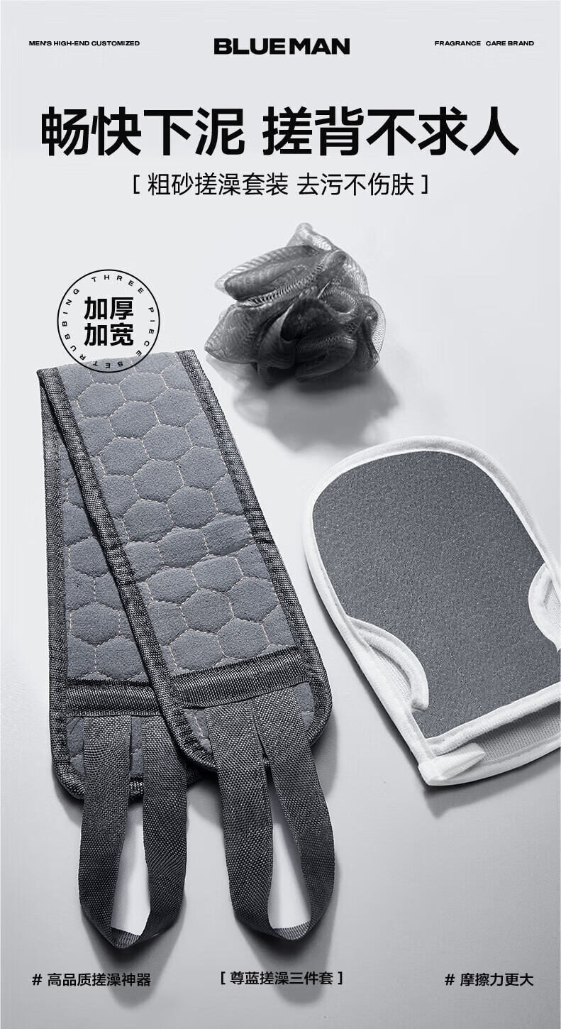 尊蓝沐浴球浴花搓澡男女洗澡起泡网洗浴球澡花 洗浴搓澡三件套