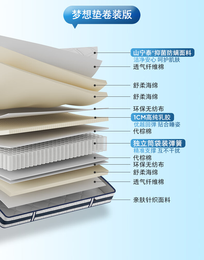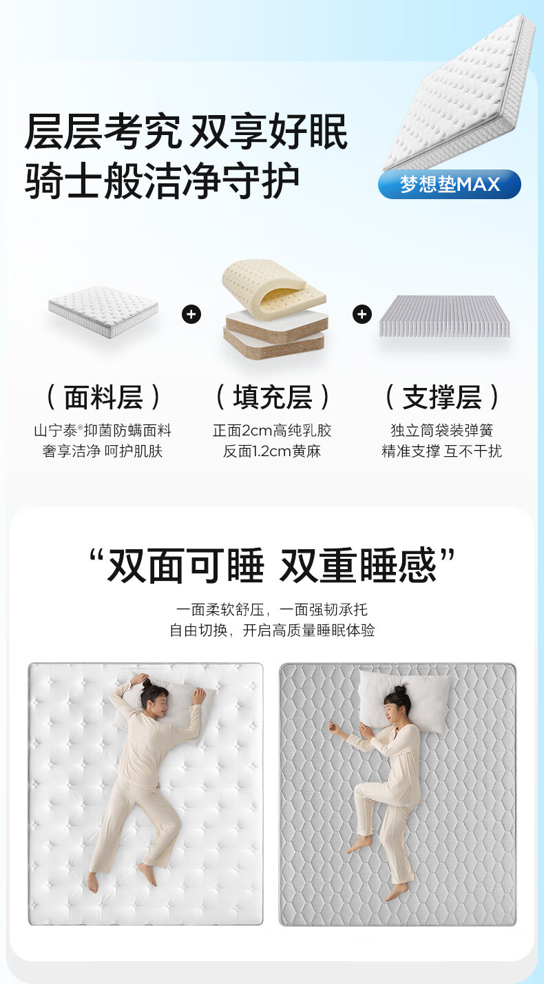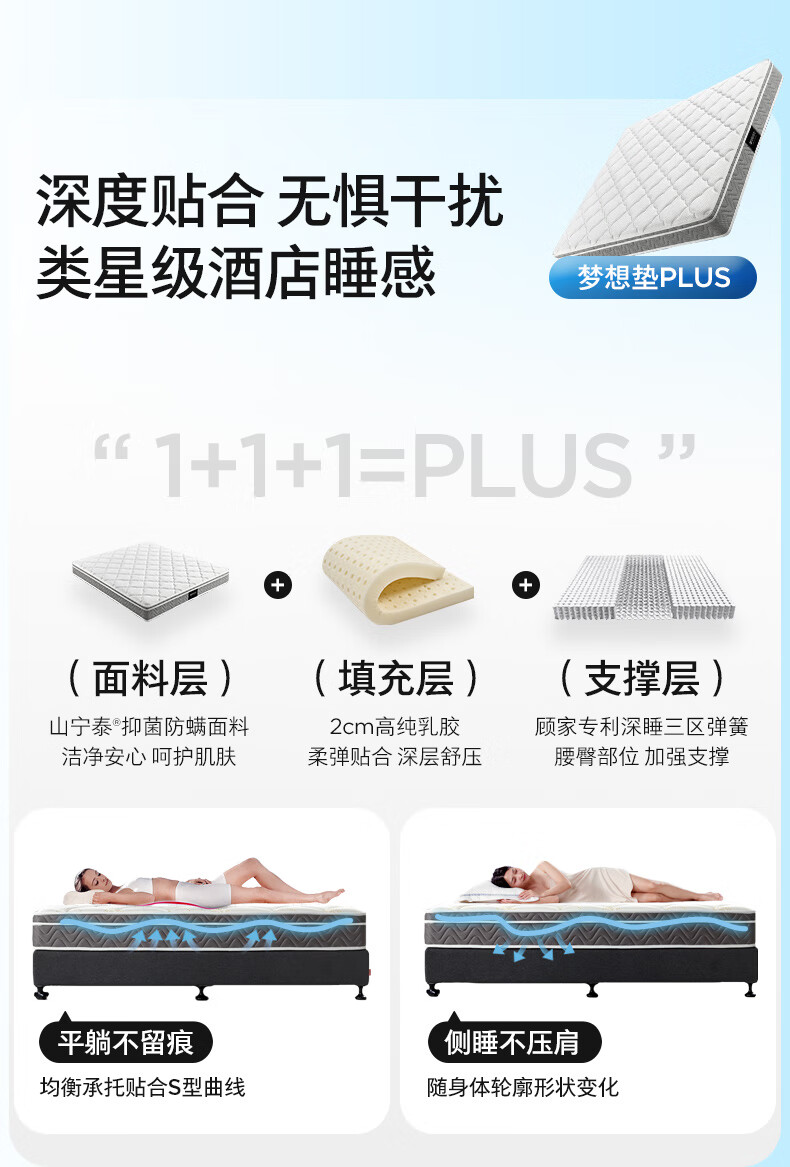 顾家家居京东家具天然乳胶床垫独袋弹簧席梦思梦想垫旗舰1.5x2米京仓闪发
